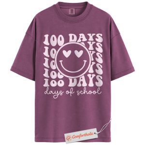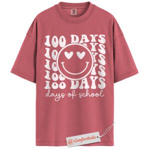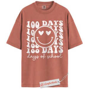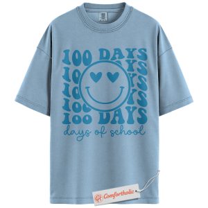 100 Days of School Shirt, Happy Smiley Face Teacher Shirt, 100th Day Celebration Shirt, Cute Classroom Comfort Colors Shirt