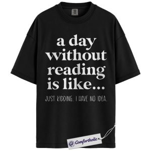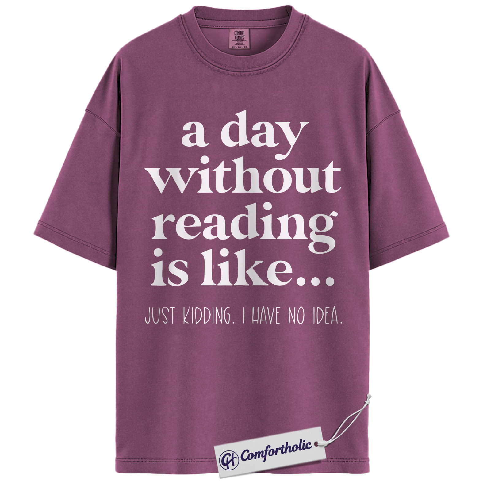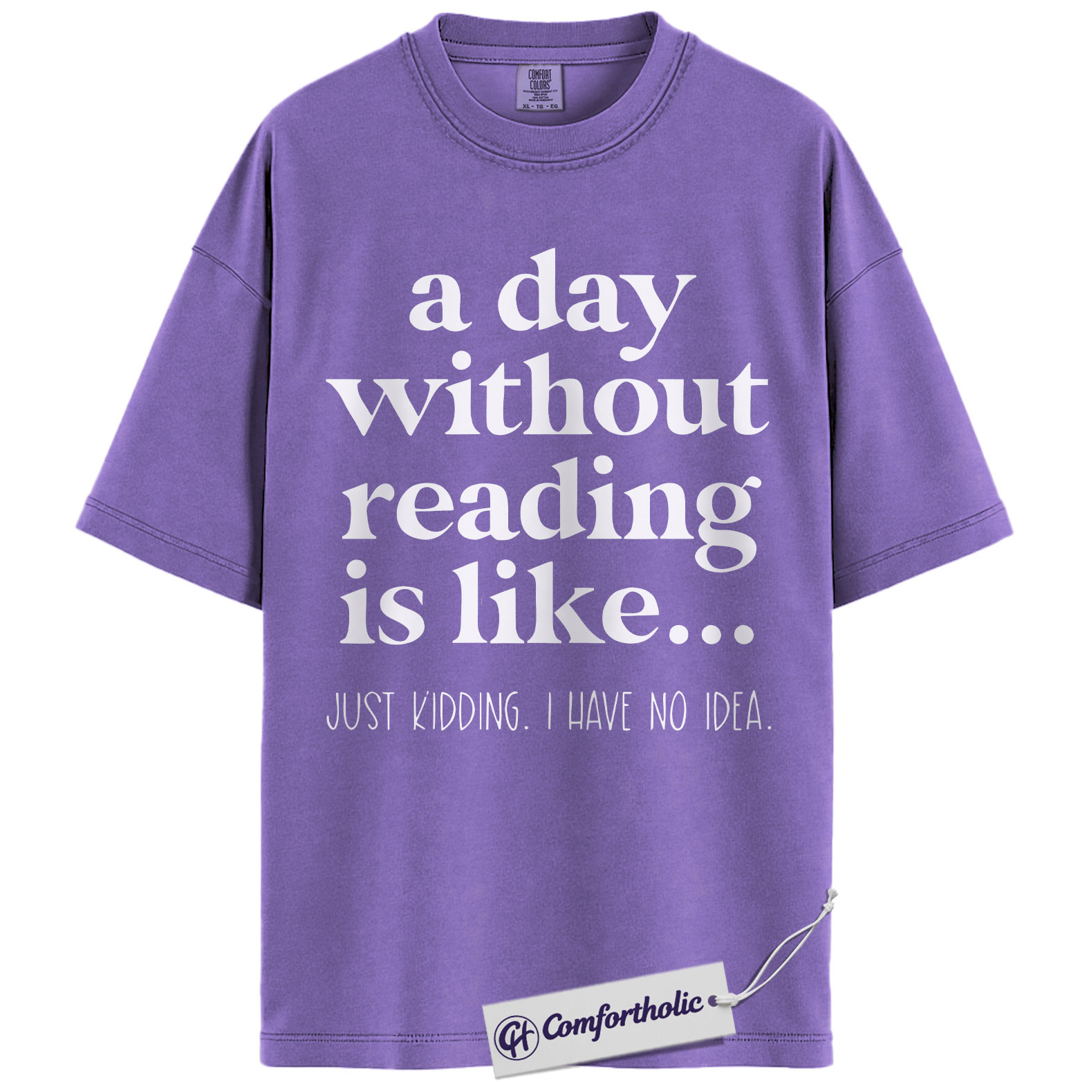 A Day Without Reading Shirt, Funny Bookish Quote T-Shirt, Reader Humor Tee, Gift for Book Lovers, Comfort Colors Shirt