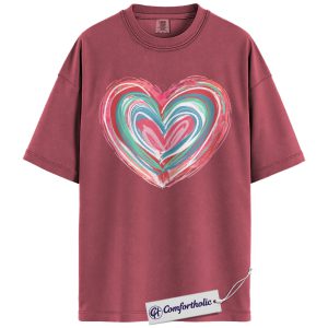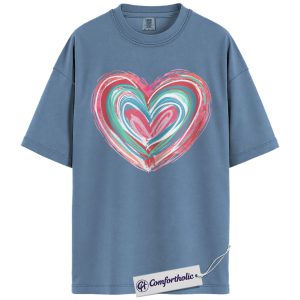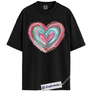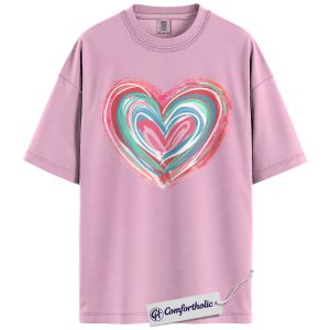 Abstract Heart Shirt, Painted Brush Stroke Graphic Tee, Cute Pastel Valentine’s Day T-Shirt for Women, Artistic Romantic Gift, Comfort Colors Shirt