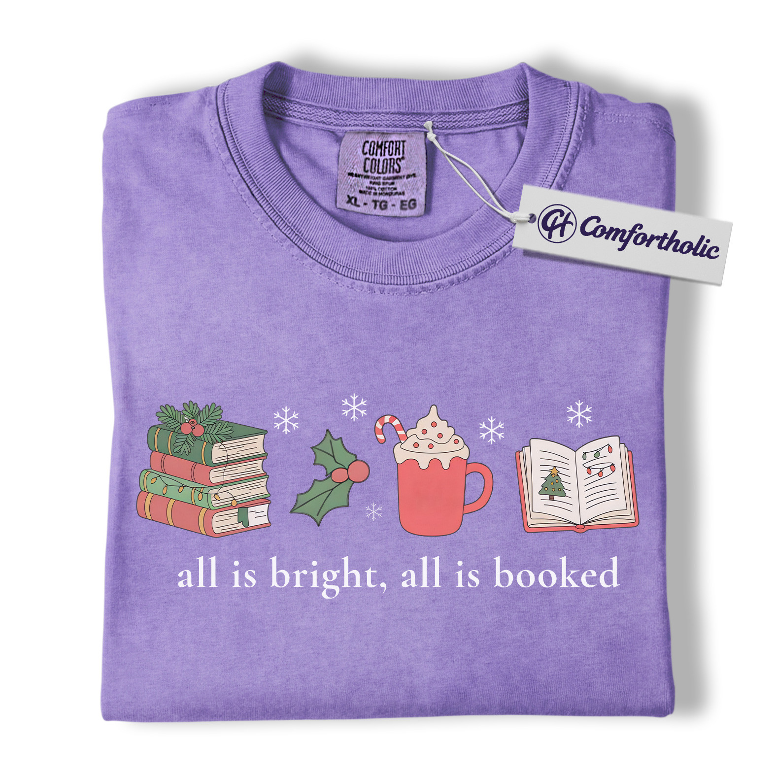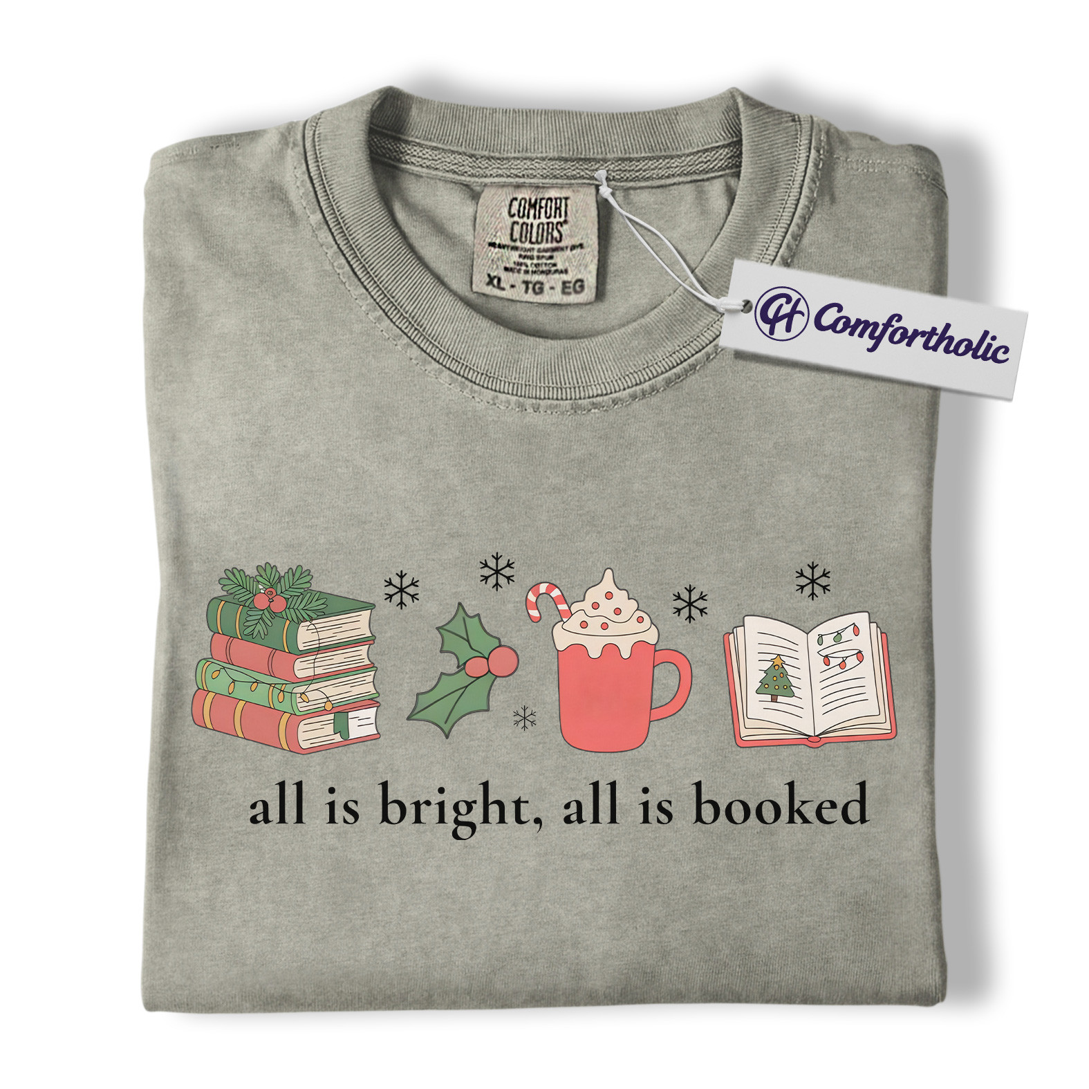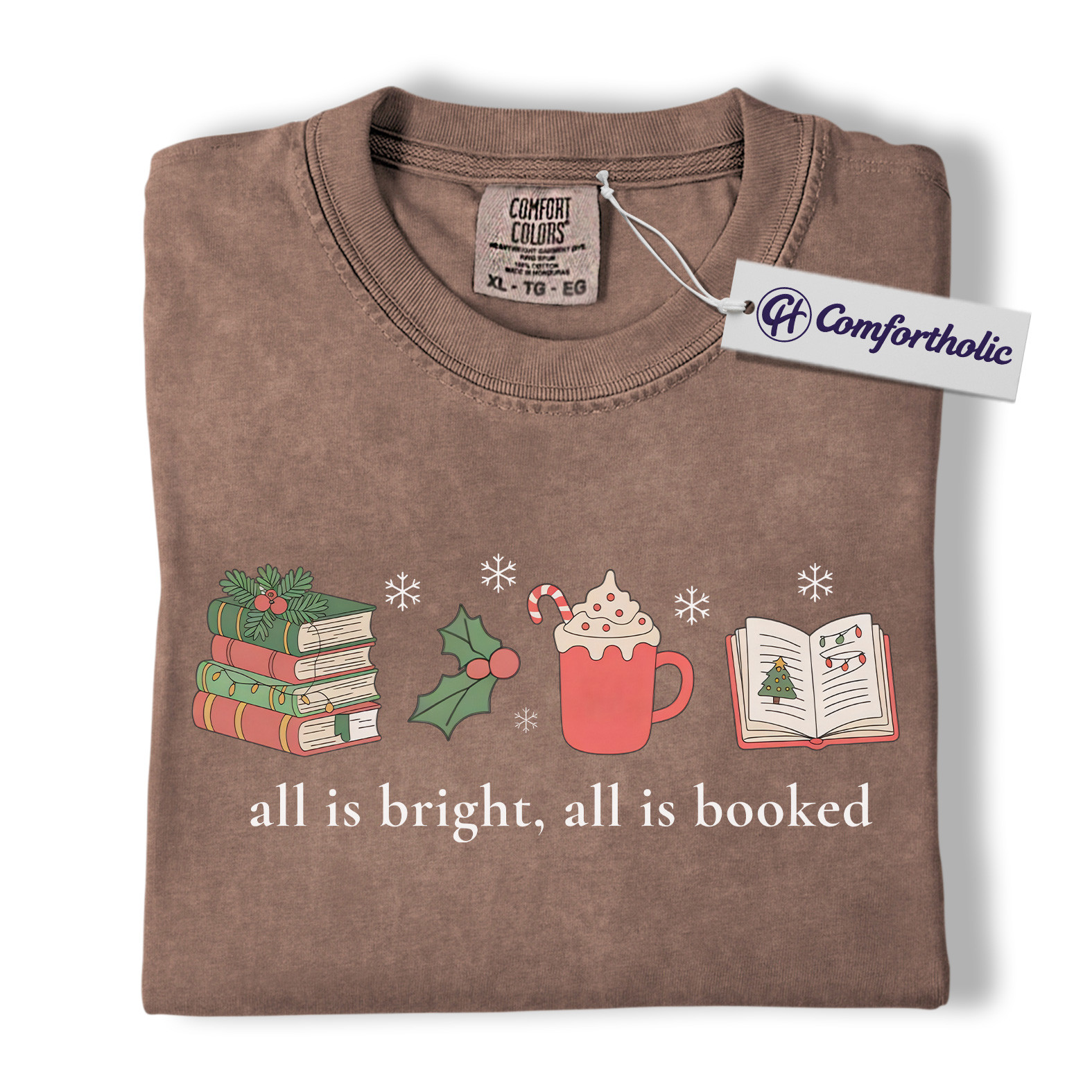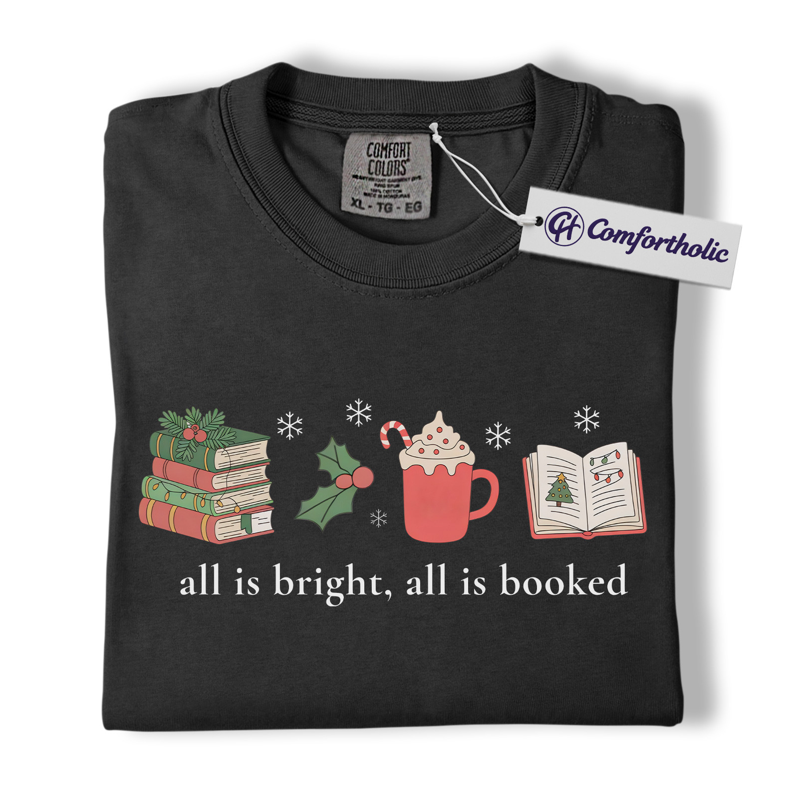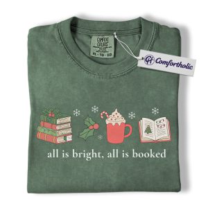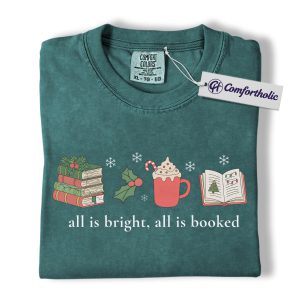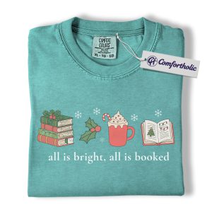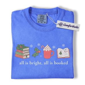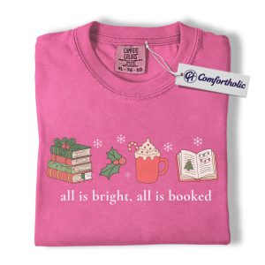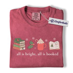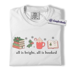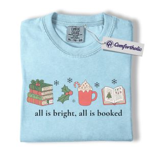 All Is Bright All Is Booked Shirt, Book Lover Christmas T-Shirt, Funny Reading Holiday Graphic Tee, Gift for Readers and Librarians, Christmas Comfort Colors Shirt