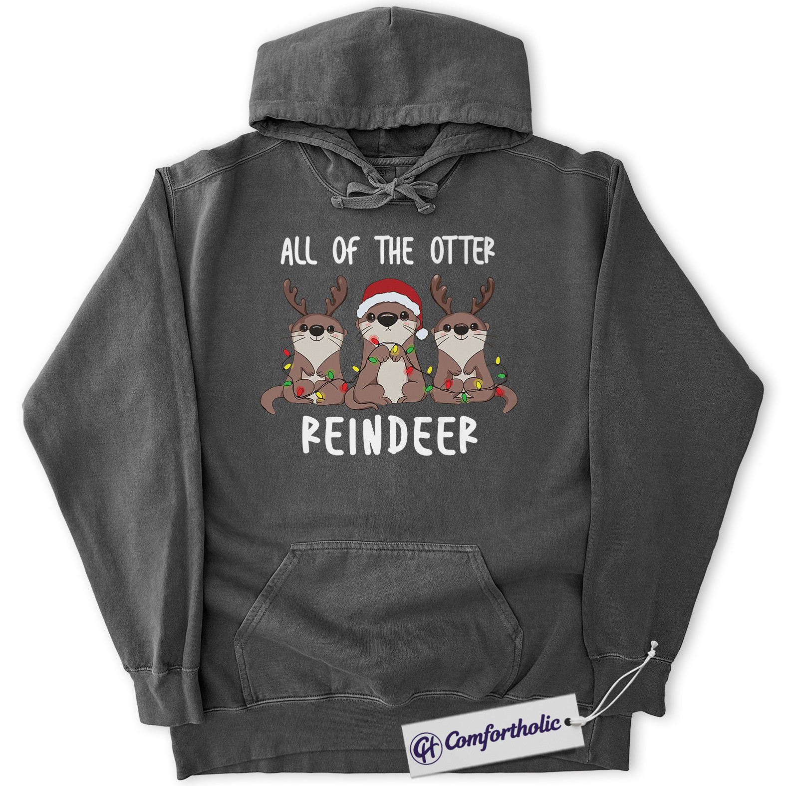 All of the Otter Reindeer Hoodie, Cute Christmas Animal Hoodie, Funny Holiday Otter Graphic Pullover, Winter Reindeer Lover Gift, Christmas Comfort Colors Hoodie