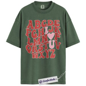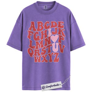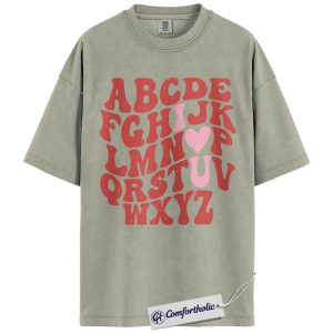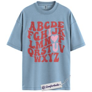 Alphabet Teacher Shirt, ABC Letter Graphic Tee, Cute Kindergarten Teacher T-Shirt, Back to School Gift for Teachers, Comfort Colors Shirt