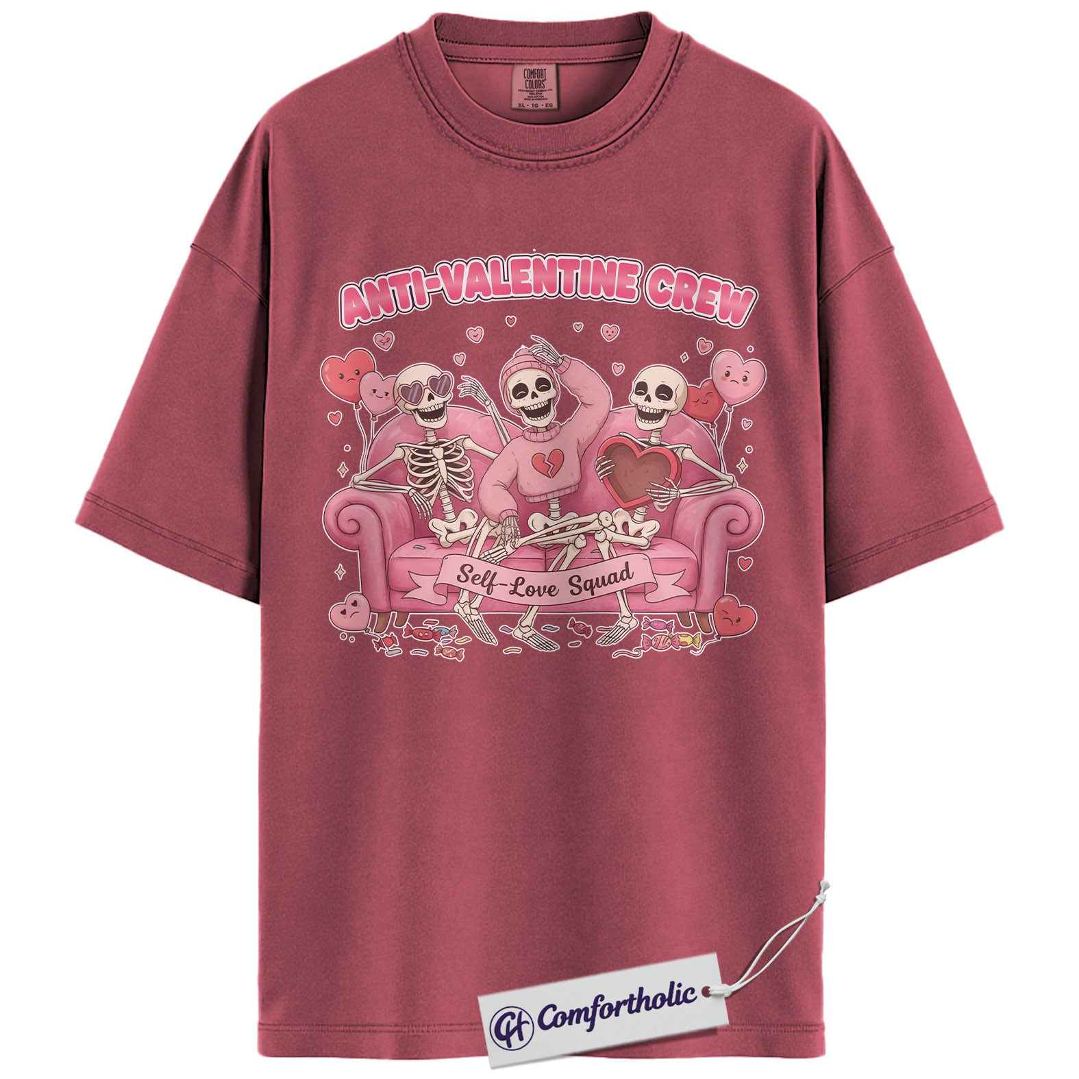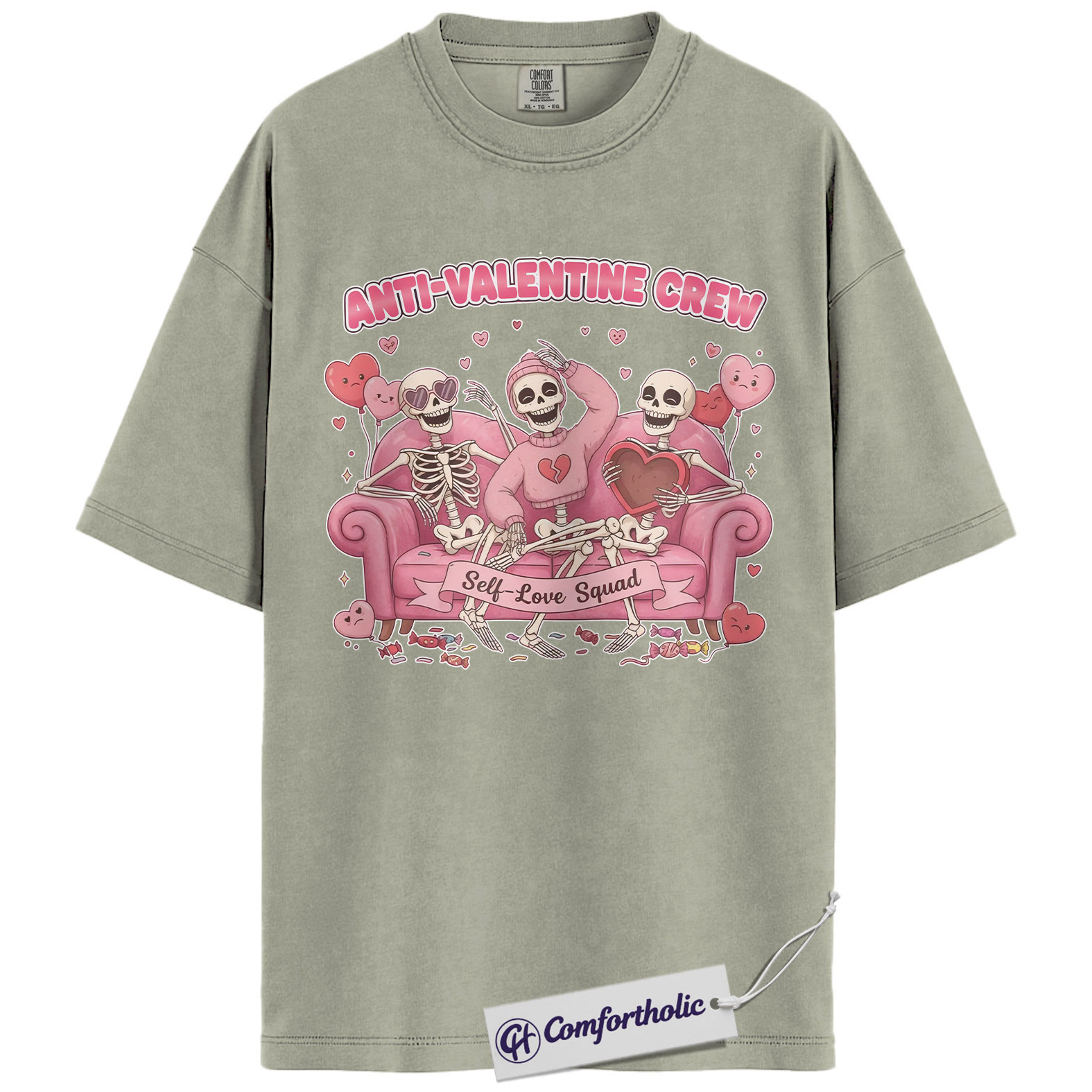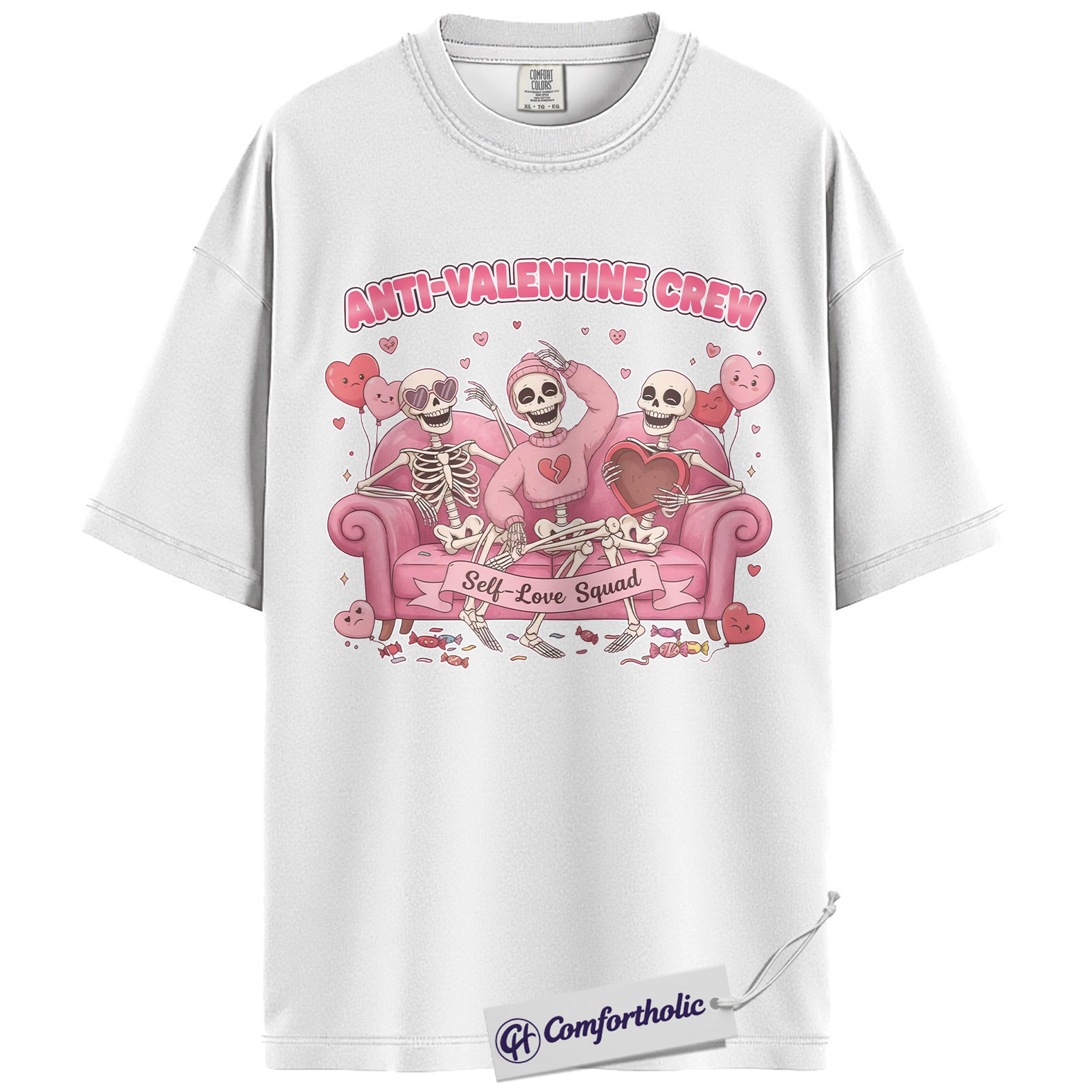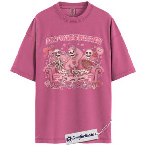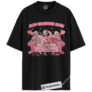Anti Valentine Crew Shirt, Funny Skeleton Self Love Graphic Tee, Sarcastic Anti Valentine T-Shirt, Valentine’s Day Gift for Single Women & Besties, Comfort Colors Shirt