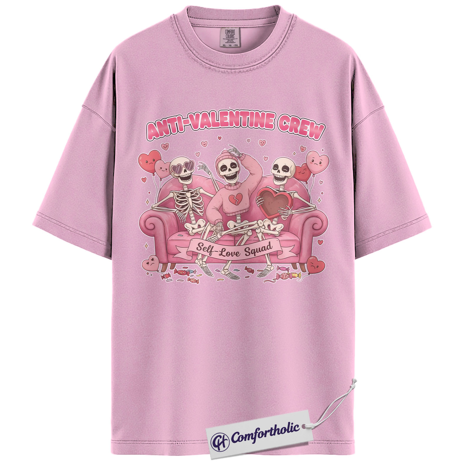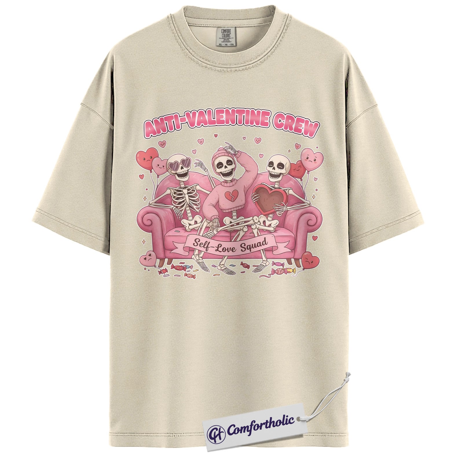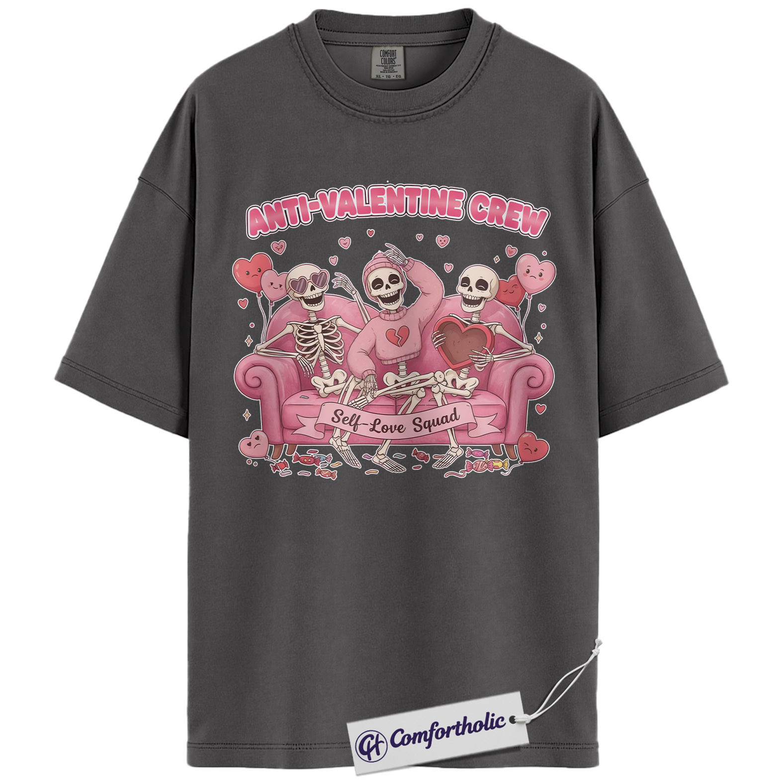 Anti Valentine Crew Shirt, Funny Skeleton Self Love Graphic Tee, Sarcastic Anti Valentine T-Shirt, Valentine’s Day Gift for Single Women & Besties, Comfort Colors Shirt