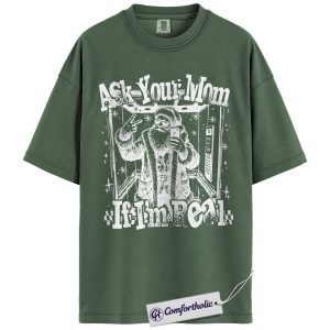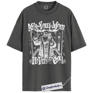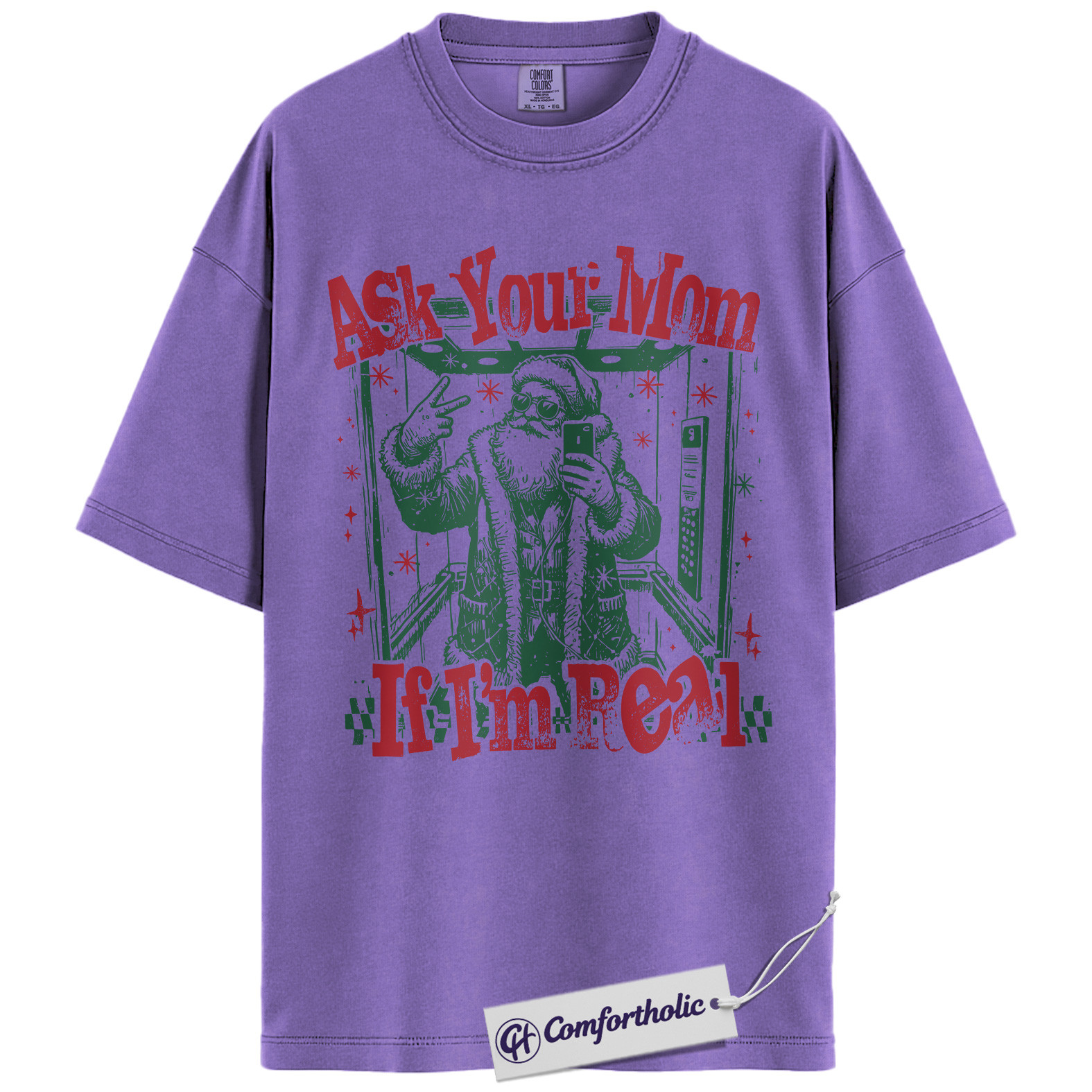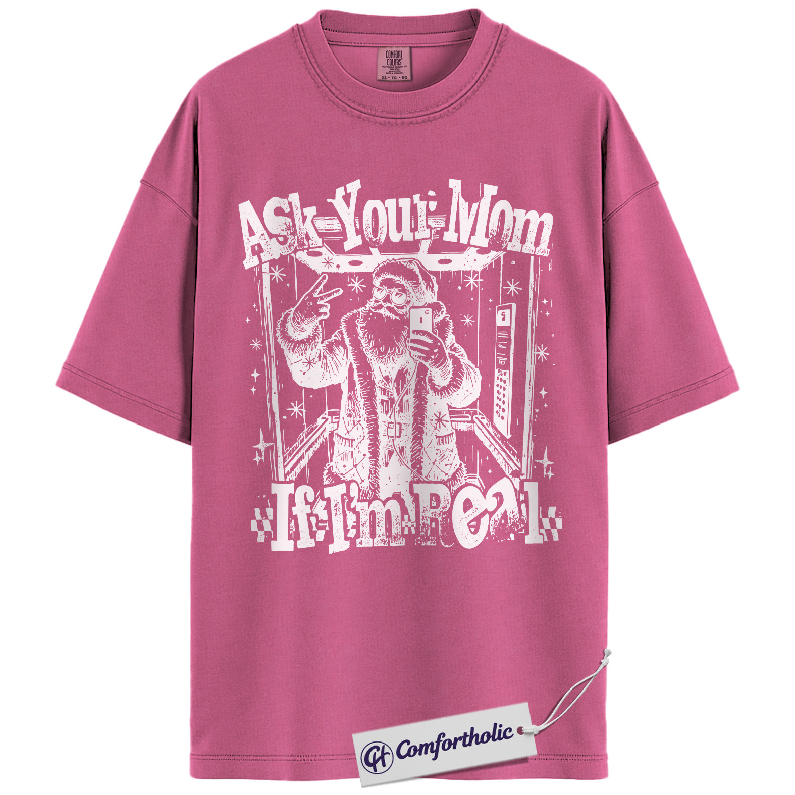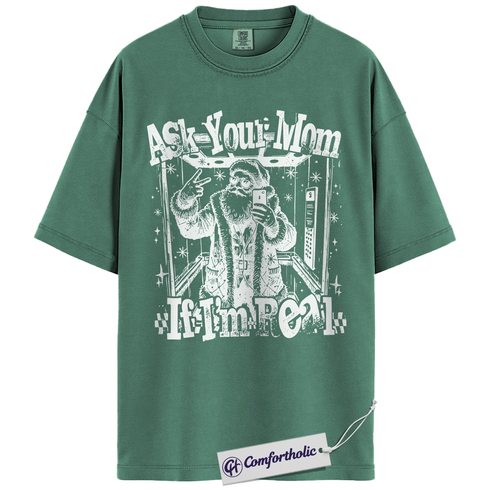 Ask Your Mom If I’m Real Shirt, Funny Santa Christmas T-Shirt, Retro Holiday Humor Graphic Tee, Cute Gift for Christmas Parties, Christmas Comfort Colors Shirt