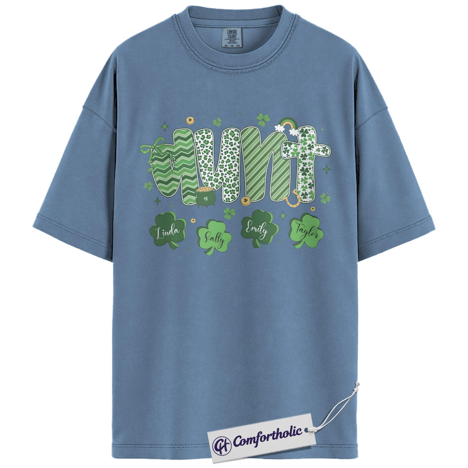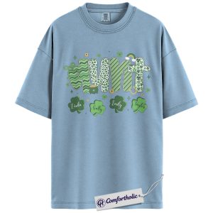 Aunt Shamrock Shirt, Cute St Patrick’s Day Graphic Tee, Personalized Irish Family Name T-Shirt, St Paddy’s Day Gift for Aunts, Comfort Colors Shirt