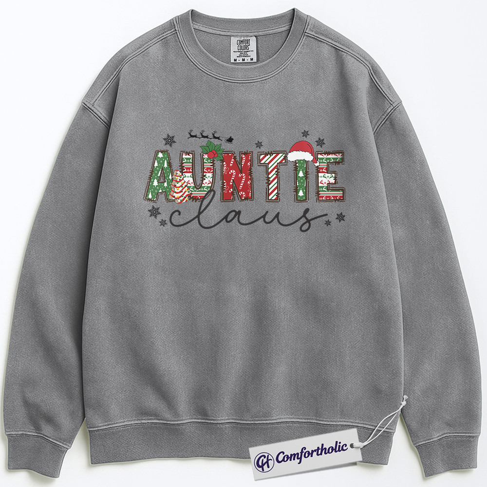 Auntie Claus Sweatshirt, Christmas Aunt Sweatshirt, Santa Themed Graphic Sweatshirt, Festive Gift for Aunt, Family Comfort Colors Sweatshirt