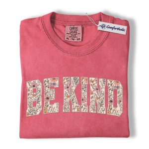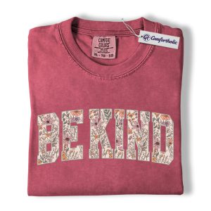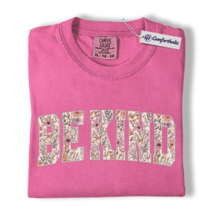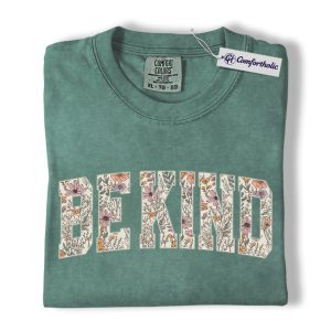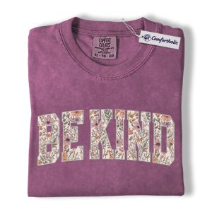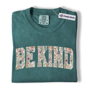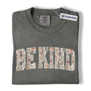 Be Kind Shirt, Floral Varsity Letter Graphic Tee, Kindness Quote T-Shirt for Women, Positive Message Gift, Comfort Colors Shirt
