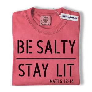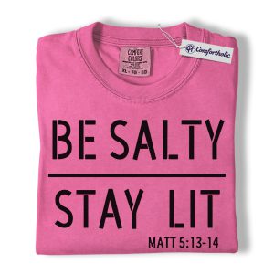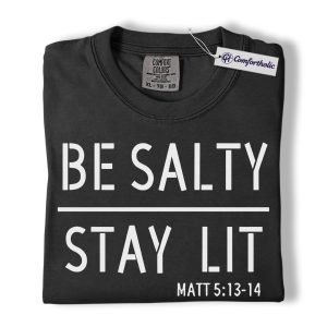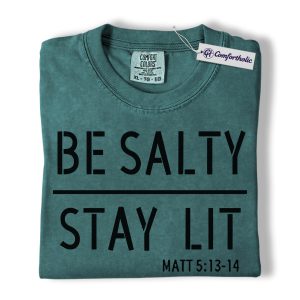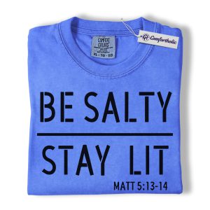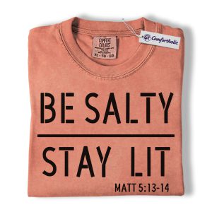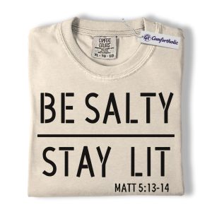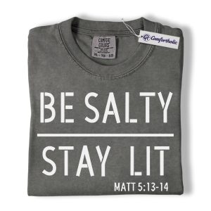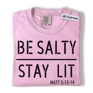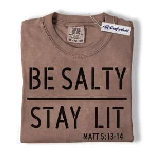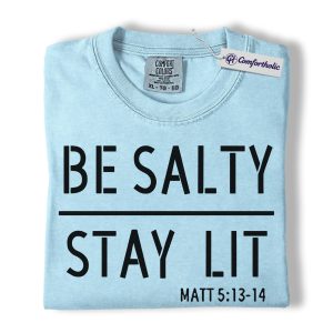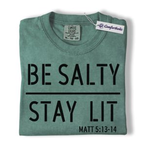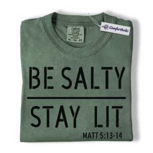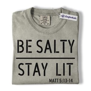 Be Salty Stay Lit Shirt, Matthew 5:13-14 Bible Verse Graphic Tee, Christian Faith Scripture T-Shirt, Church Gift for Men Women & Youth, Comfort Colors Shirt