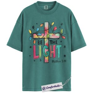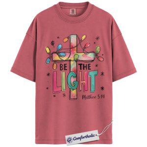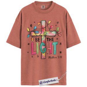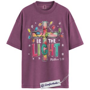 Be The Light Matthew 5:14 Shirt, Christian Bible Verse T-Shirt, Faith-Based Christmas Graphic Tee, Inspirational Jesus Cross Gift for Believers, Christmas Comfort Colors Shirt