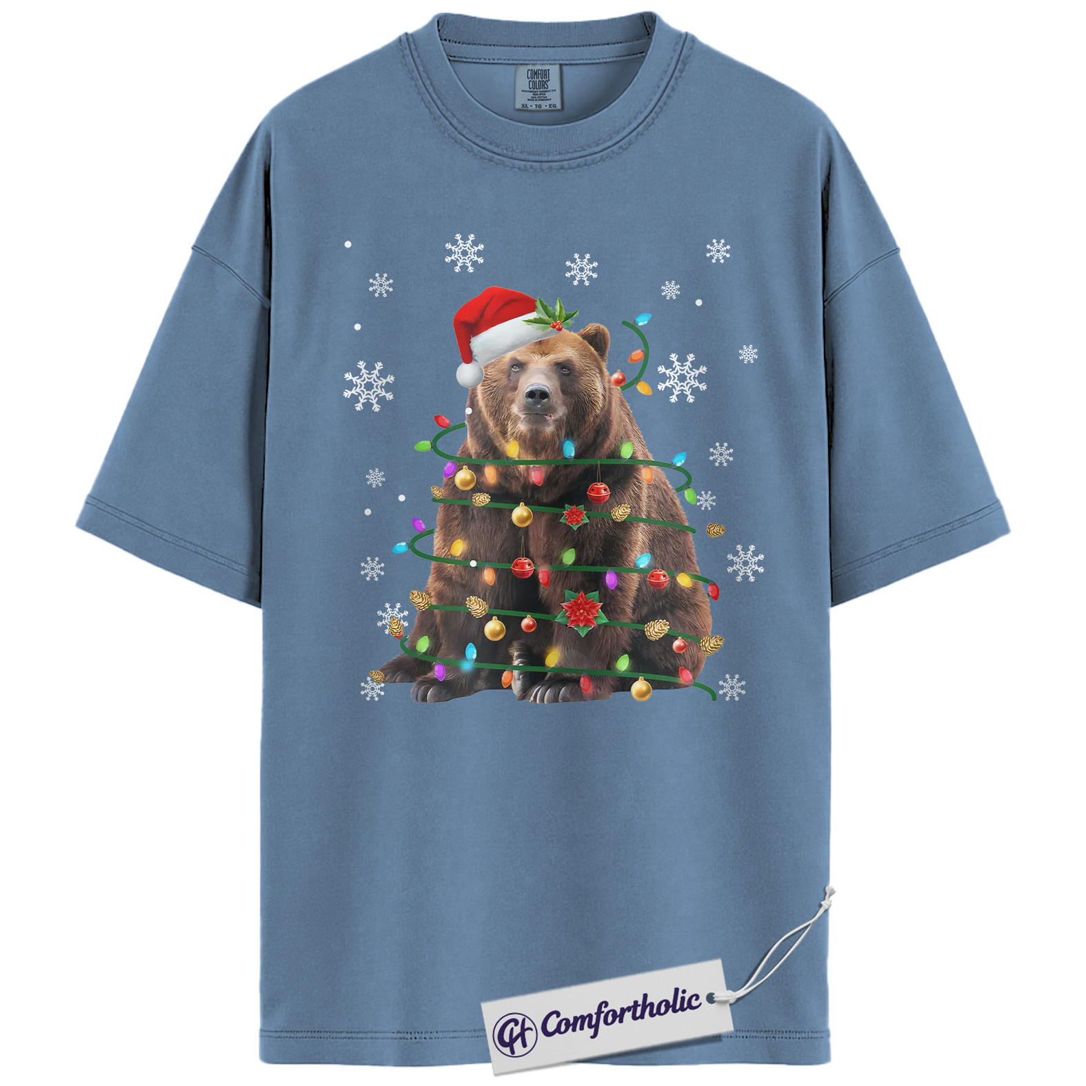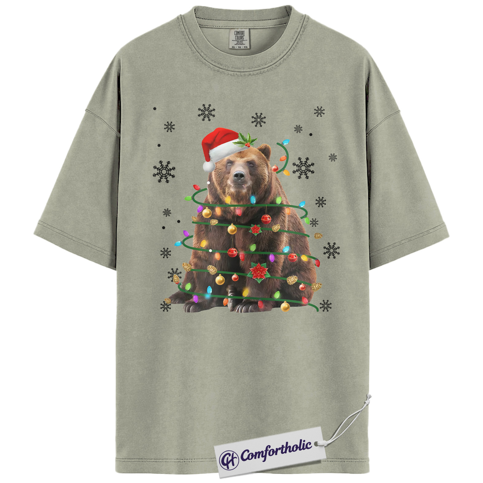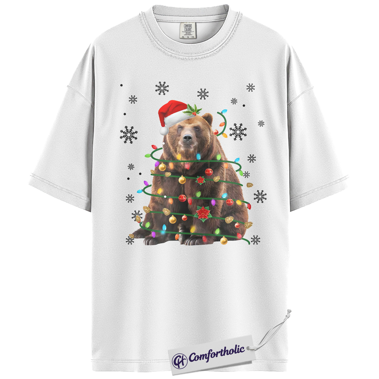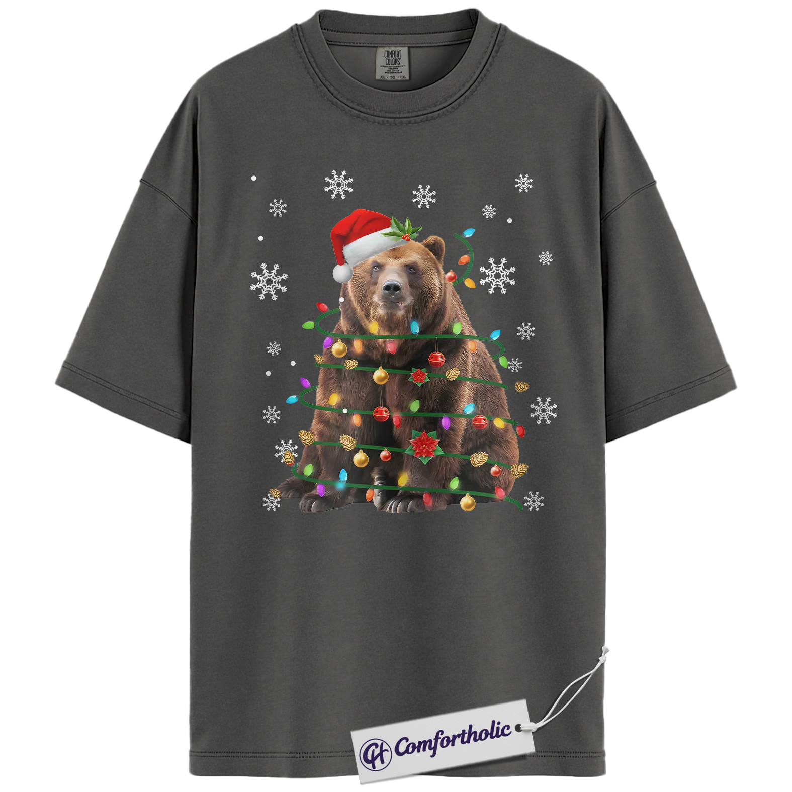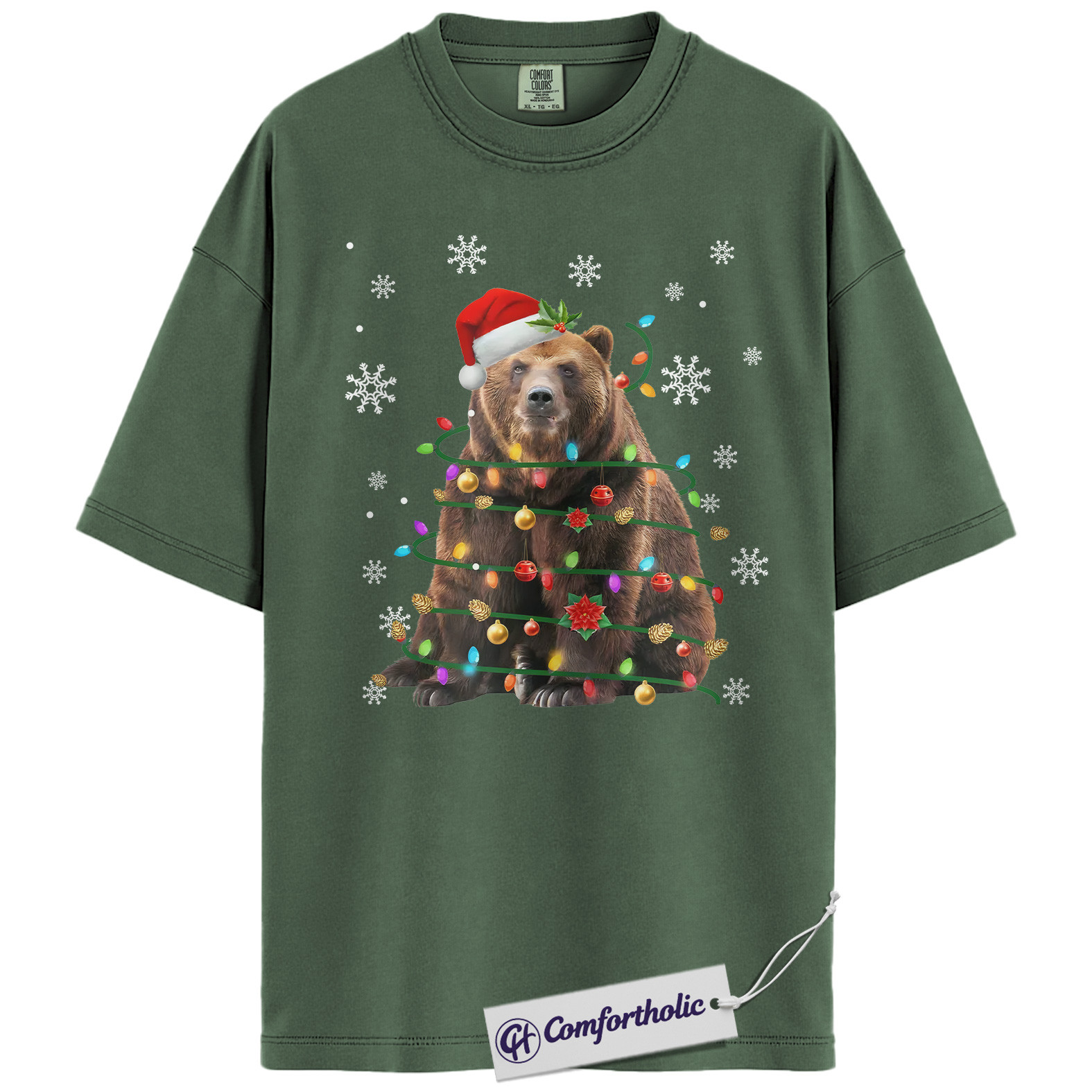 Bear Christmas Tree Shirt, Funny Animal Holiday T-Shirt, Cute Wildlife Graphic Tee, Festive Gift for Animal Lovers, Christmas Comfort Colors Shirt