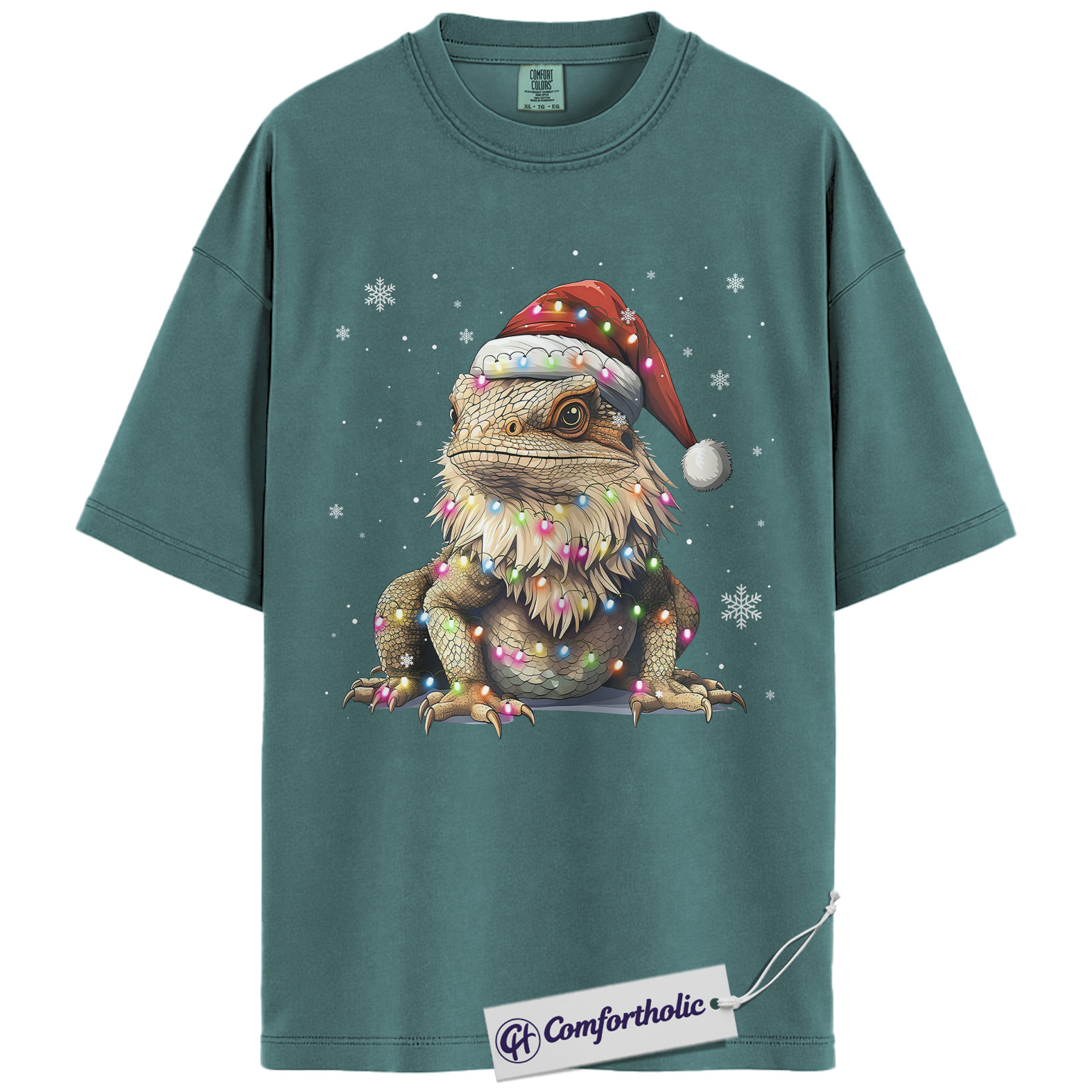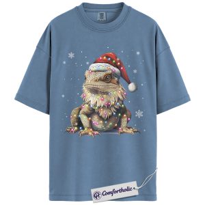 Bearded Dragon Christmas Shirt, Funny Lizard Santa Hat T-Shirt, Cute Reptile Lover Holiday Graphic Tee, Festive Pet Gift for Her & Him, Exotic Pet Comfort Colors Shirt