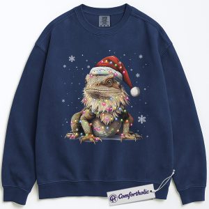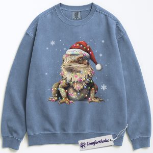 Bearded Dragon Christmas Sweatshirt, Funny Lizard Santa Hat Pullover, Cute Reptile Lover Holiday Graphic Crewneck, Festive Pet Gift for Her & Him, Exotic Pet Comfort Colors Sweatshirt
