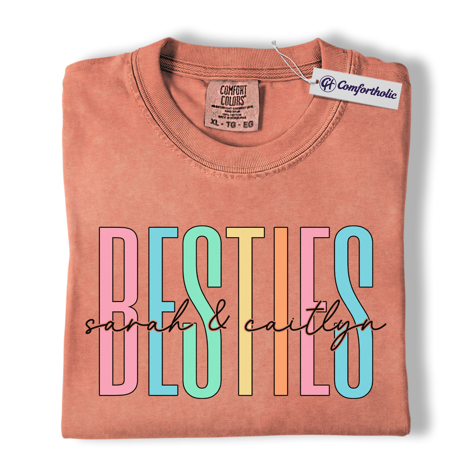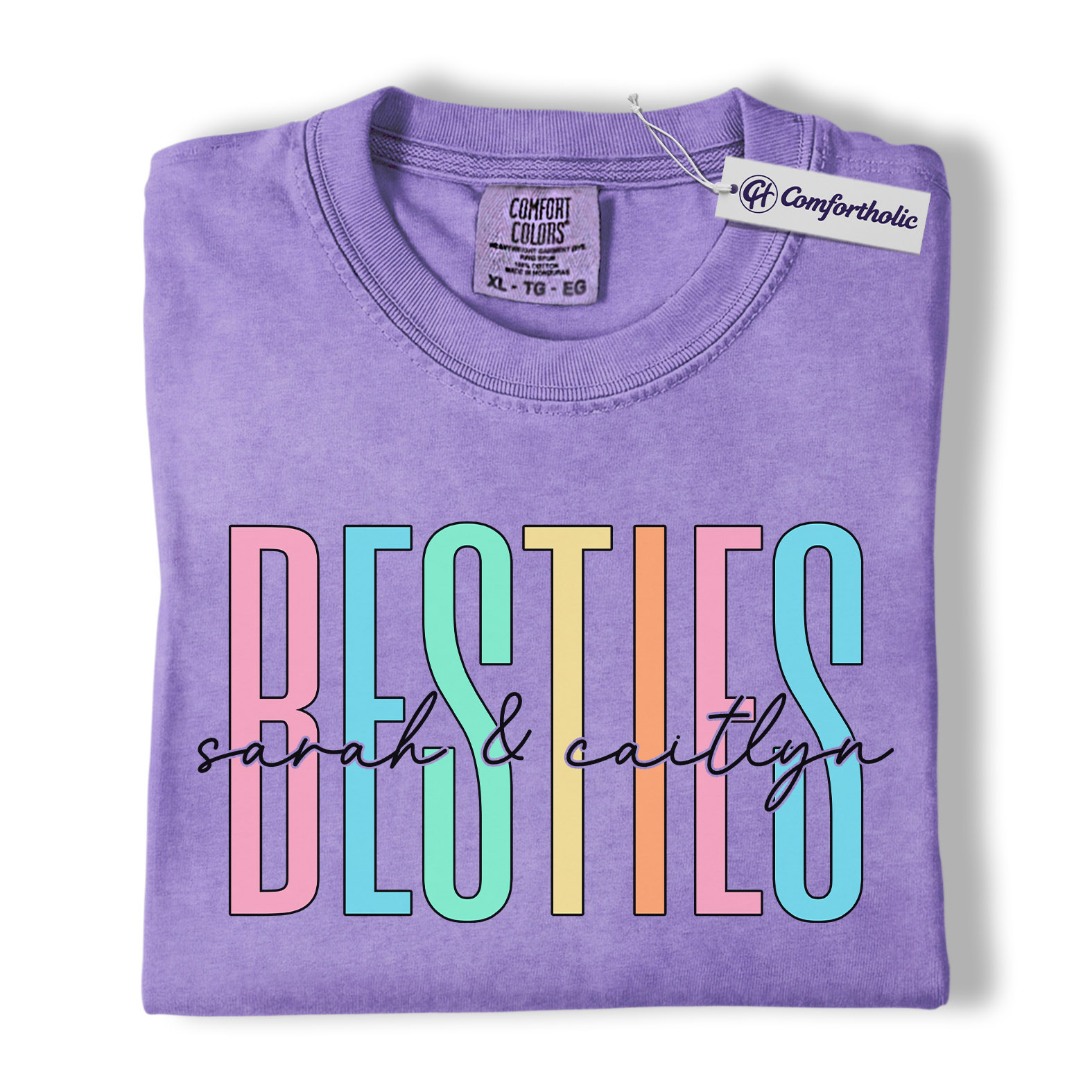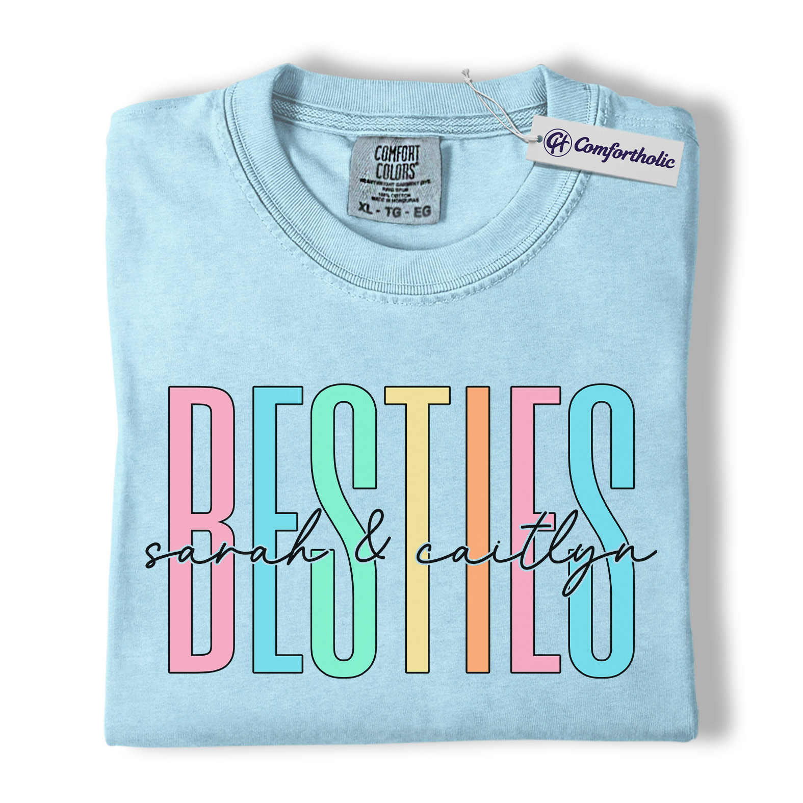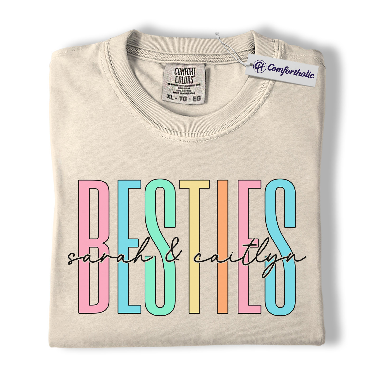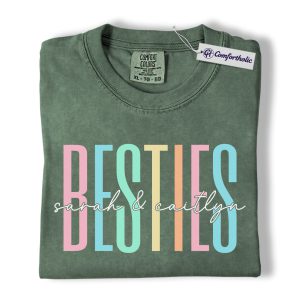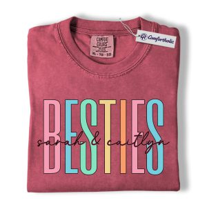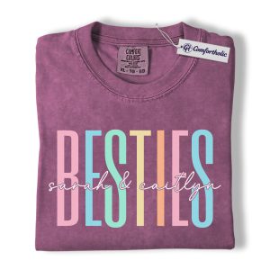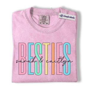 Besties Shirt, Personalized Name Rainbow Lettering Graphic Tee, Best Friend Squad T-Shirt, Custom Friendship Gift for Best Friends, Comfort Colors Shirt