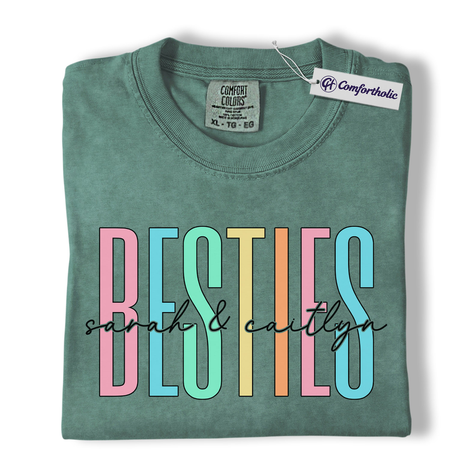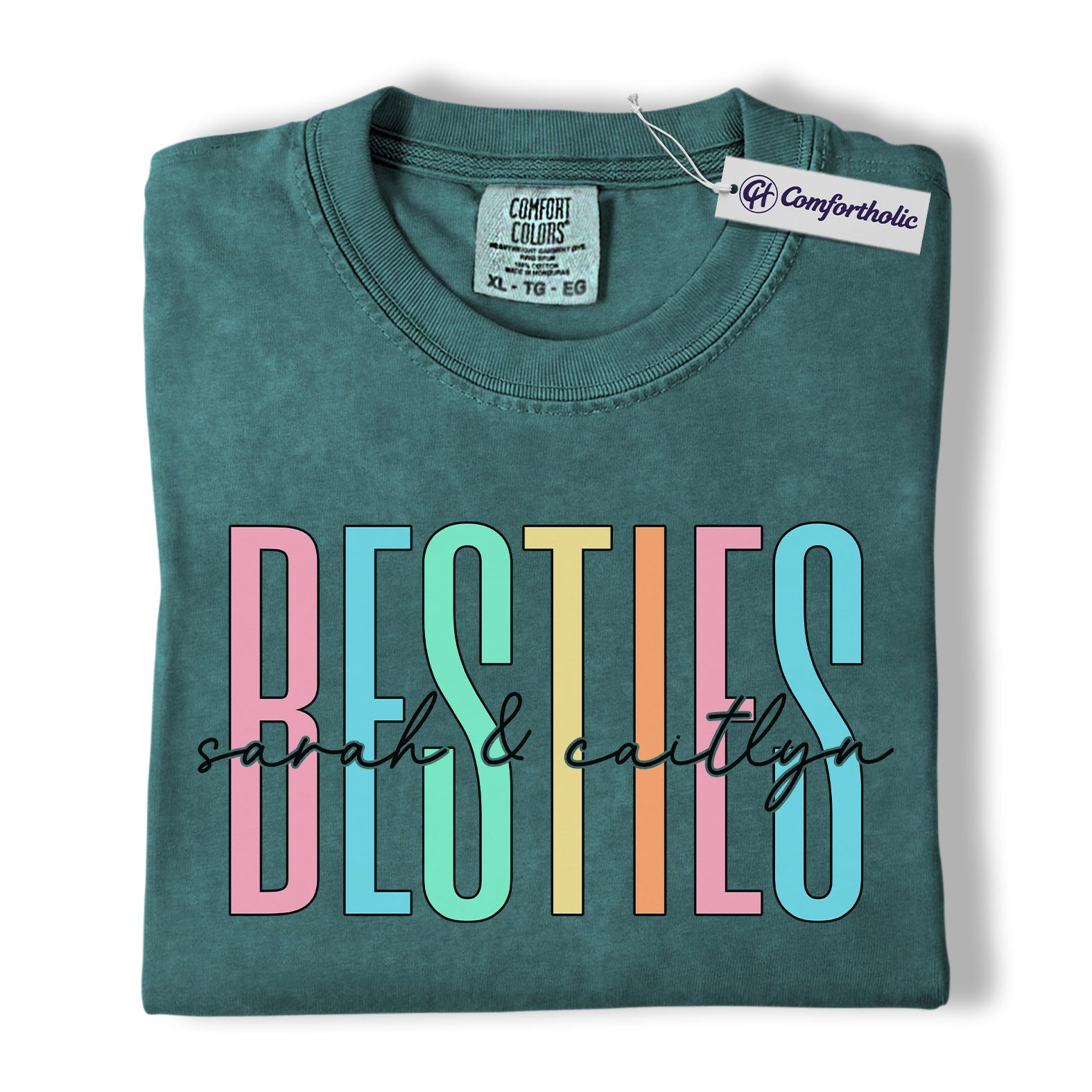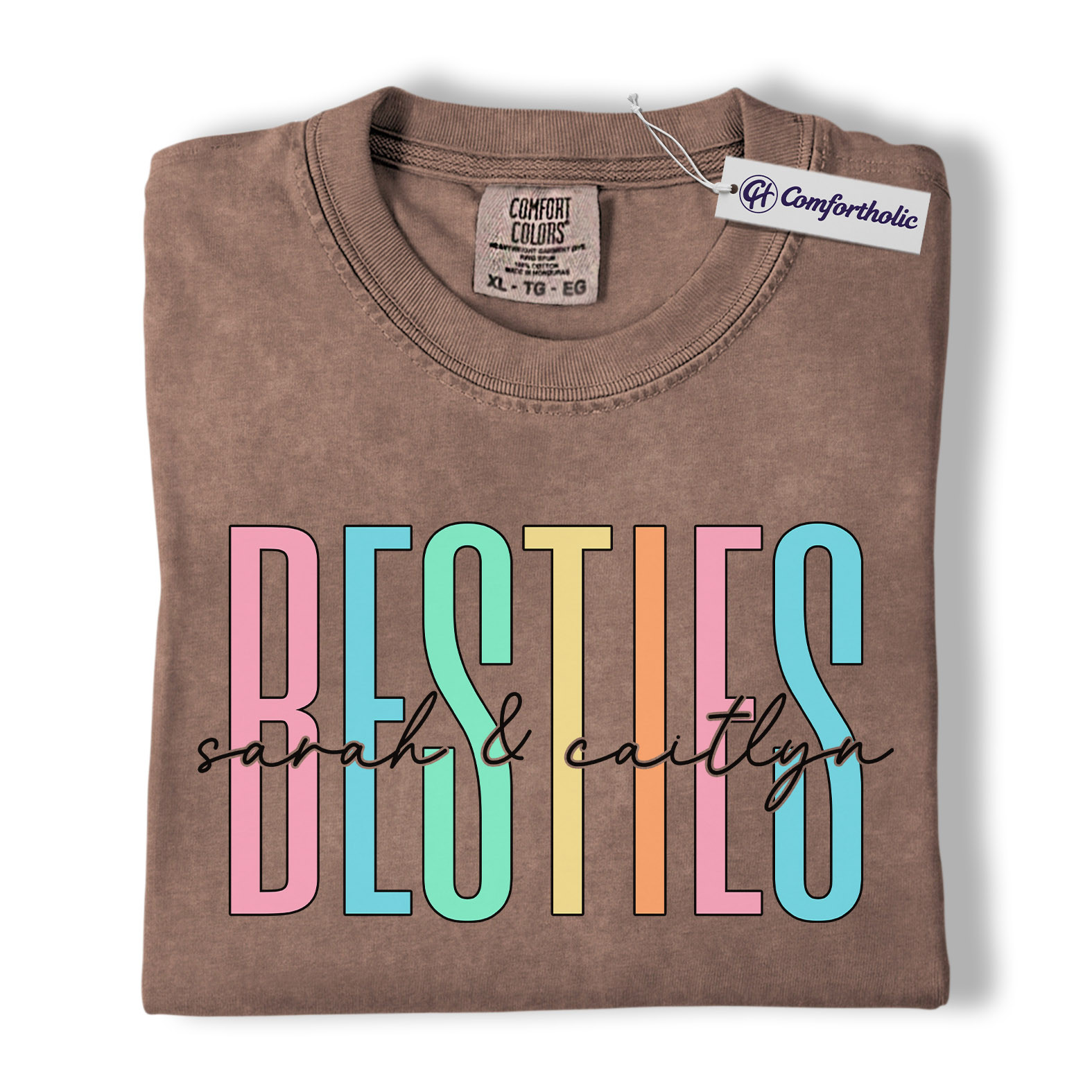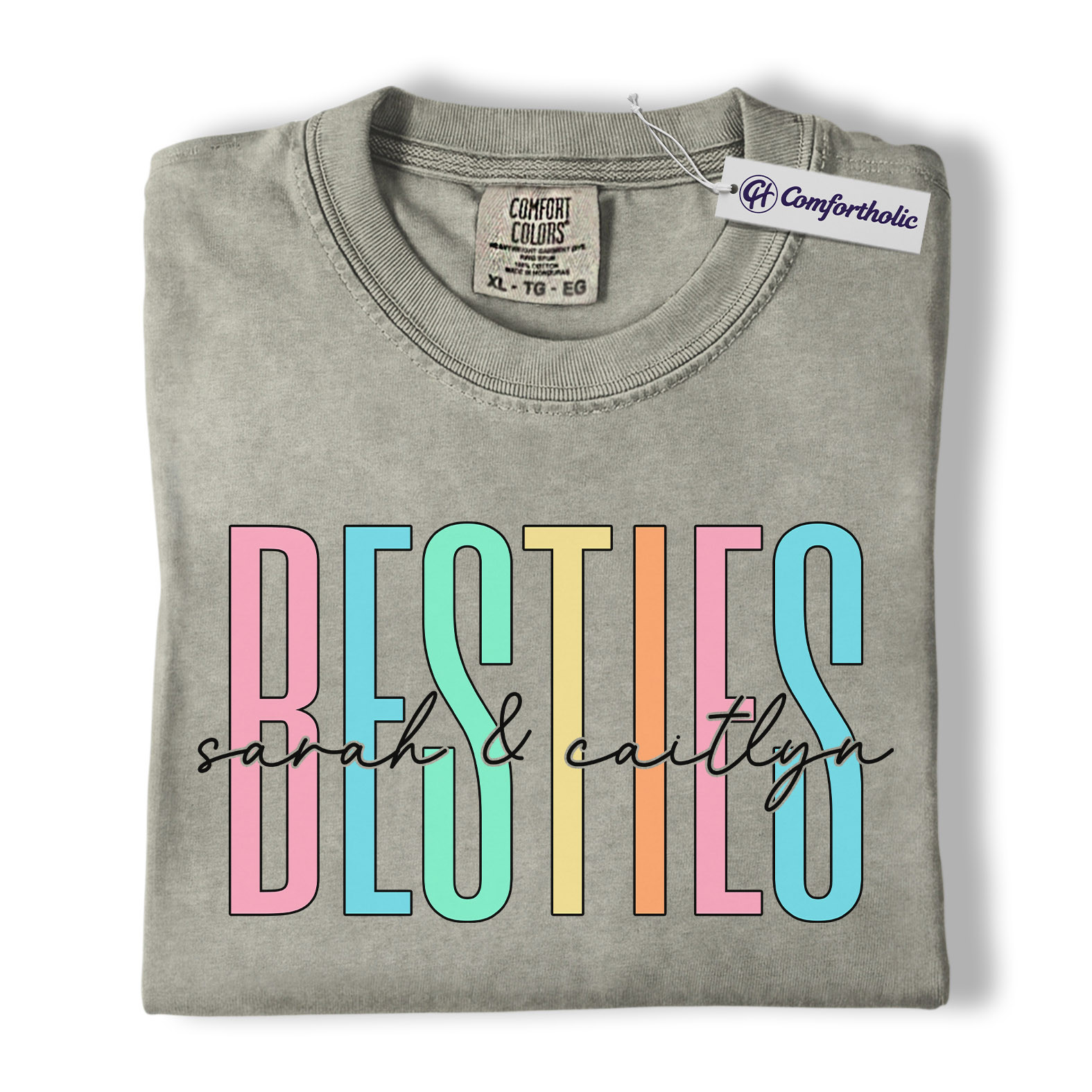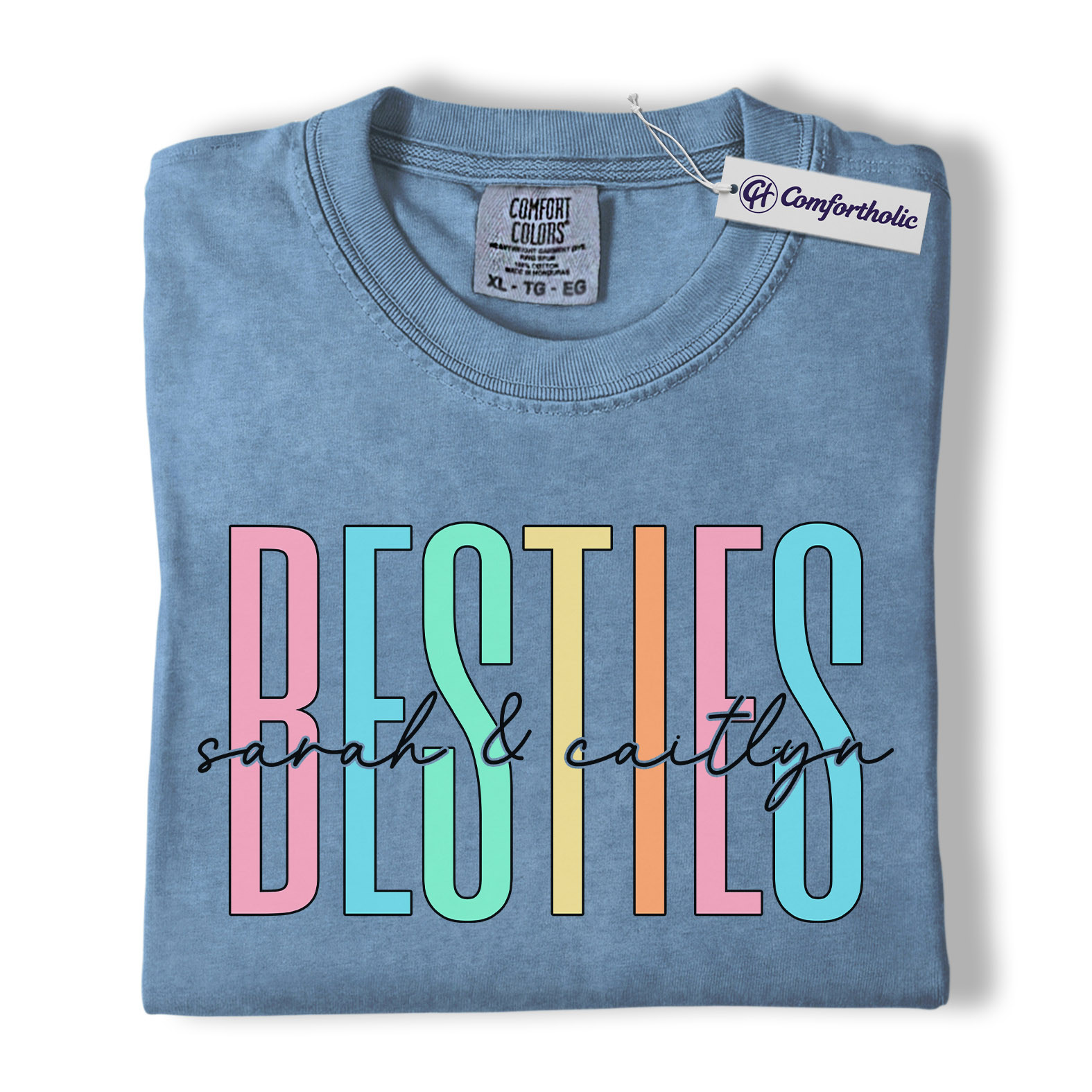 Besties Shirt, Personalized Name Rainbow Lettering Graphic Tee, Best Friend Squad T-Shirt, Custom Friendship Gift for Best Friends, Comfort Colors Shirt