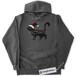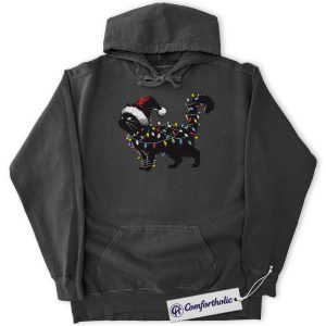 Black Cat Christmas Hoodie, Funny Santa Hat Cat Hoodie, Cute Festive Kitty Holiday Graphic Pullover, Cat Lover Christmas Gift for Women, Christmas Comfort Colors Hoodie