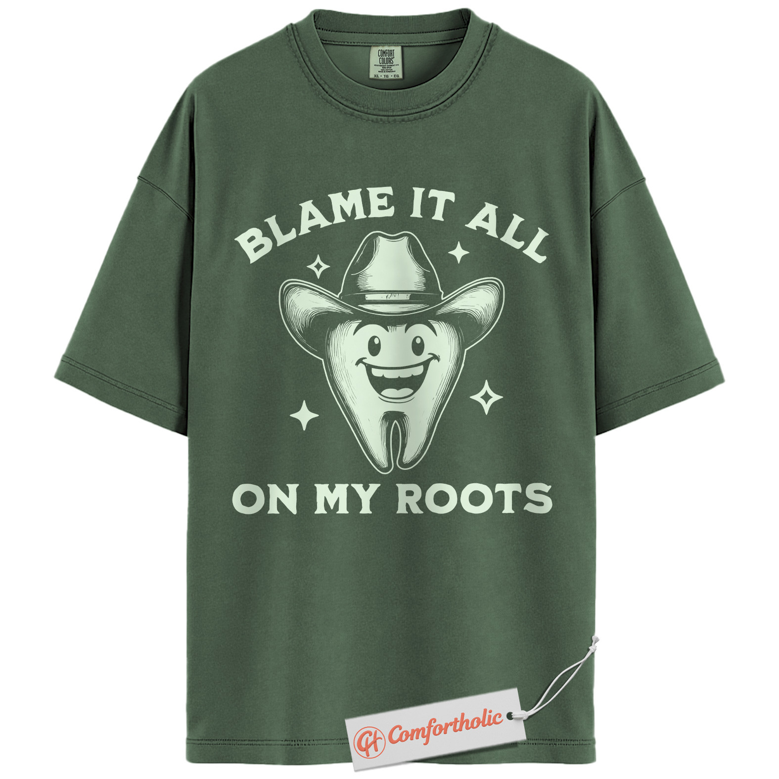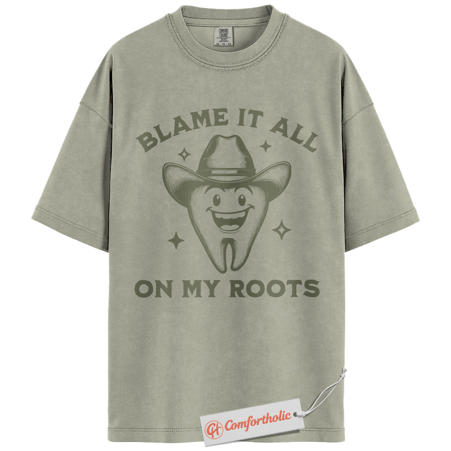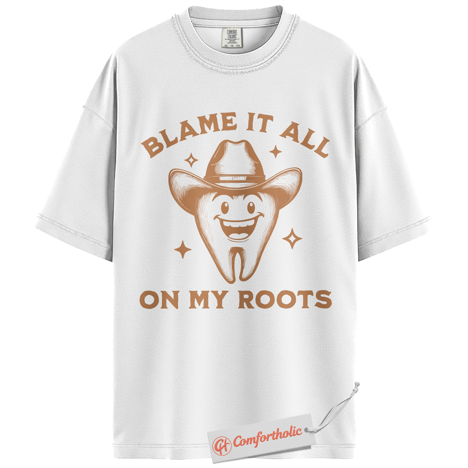 Blame It All On My Roots Shirt, Funny Cowboy Dentist Shirt, Root Canal Pun Shirt, Dental Hygienist Shirt, Comfort Colors Shirt