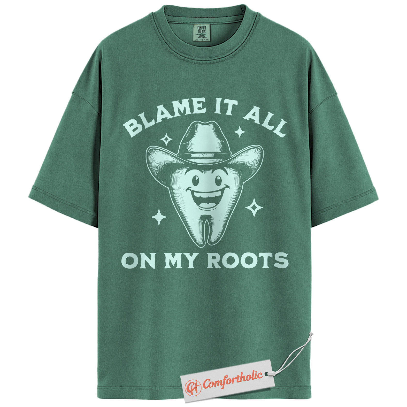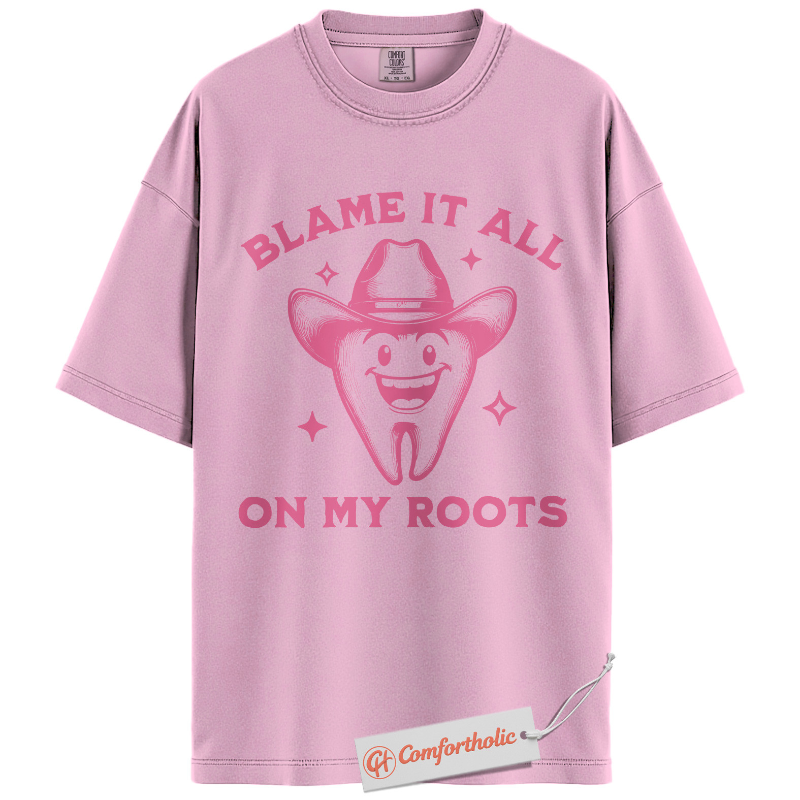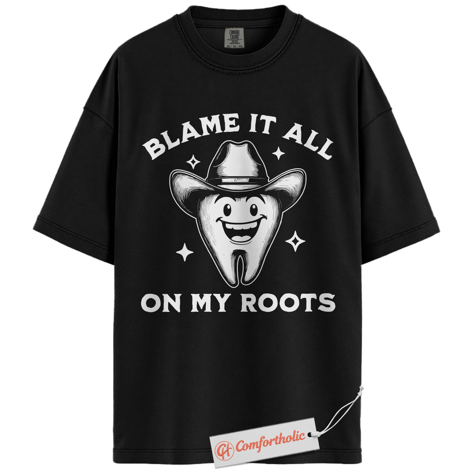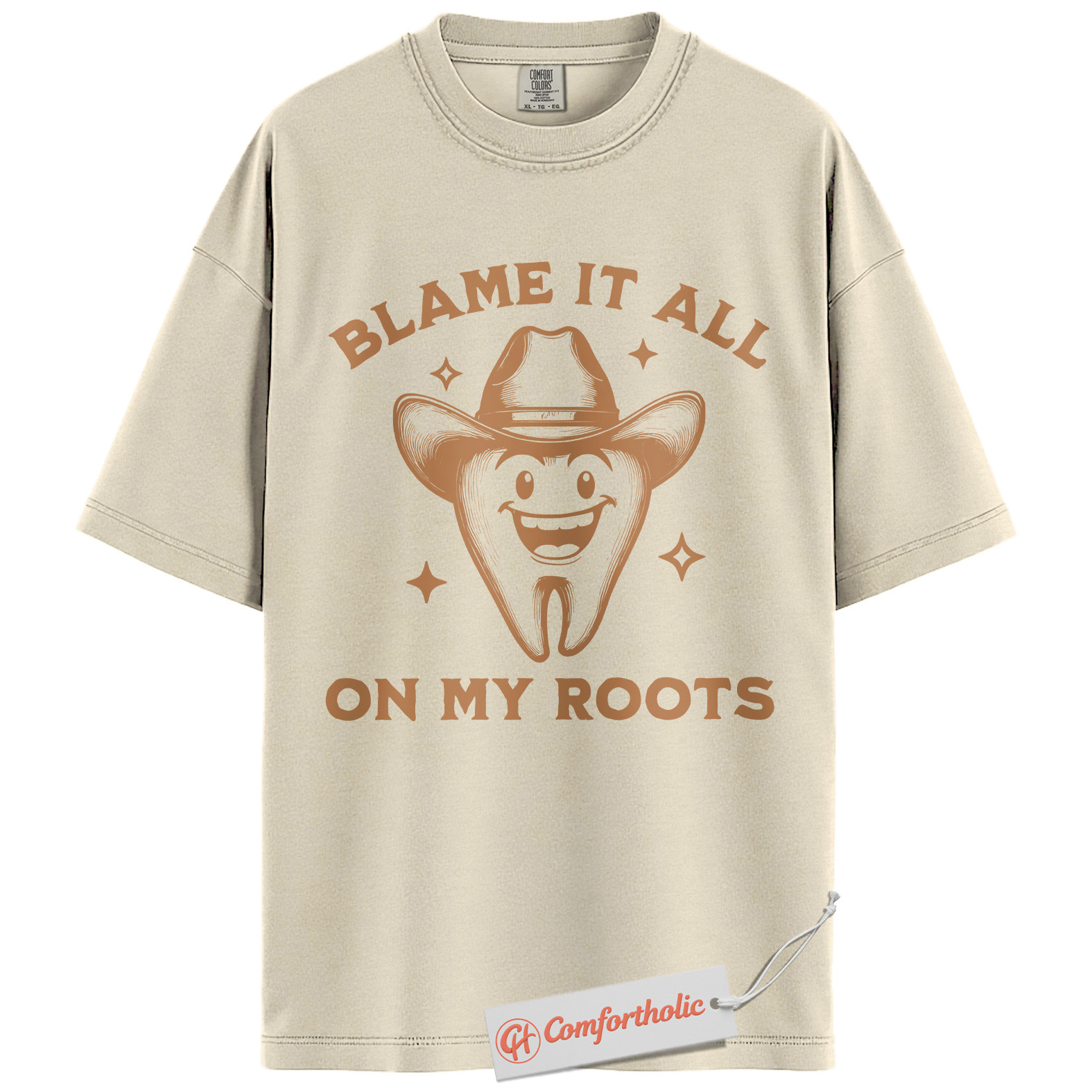 Blame It All On My Roots Shirt, Funny Cowboy Dentist Shirt, Root Canal Pun Shirt, Dental Hygienist Shirt, Comfort Colors Shirt