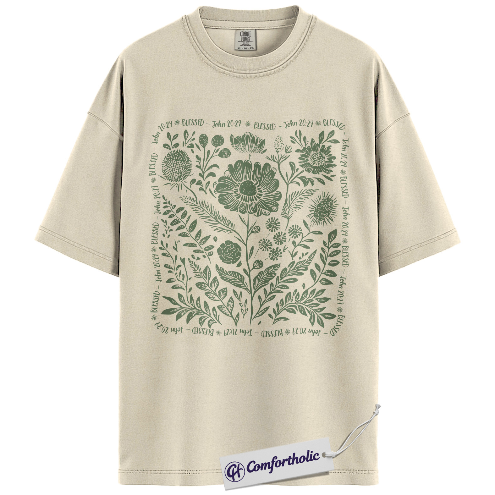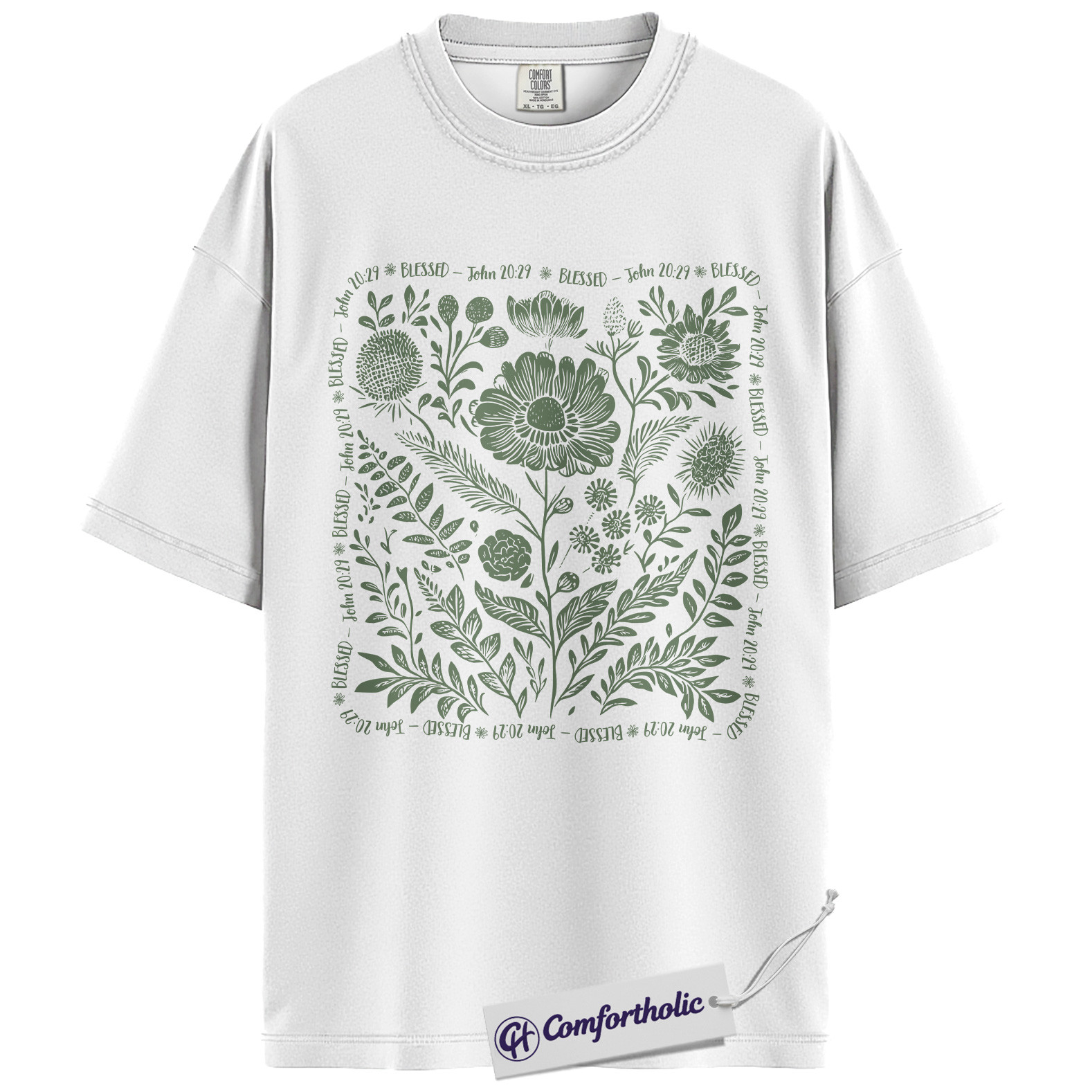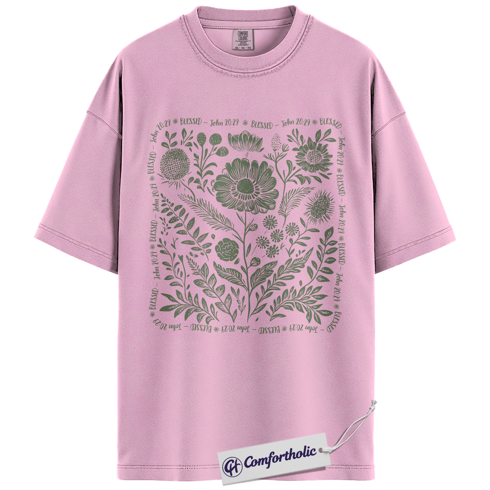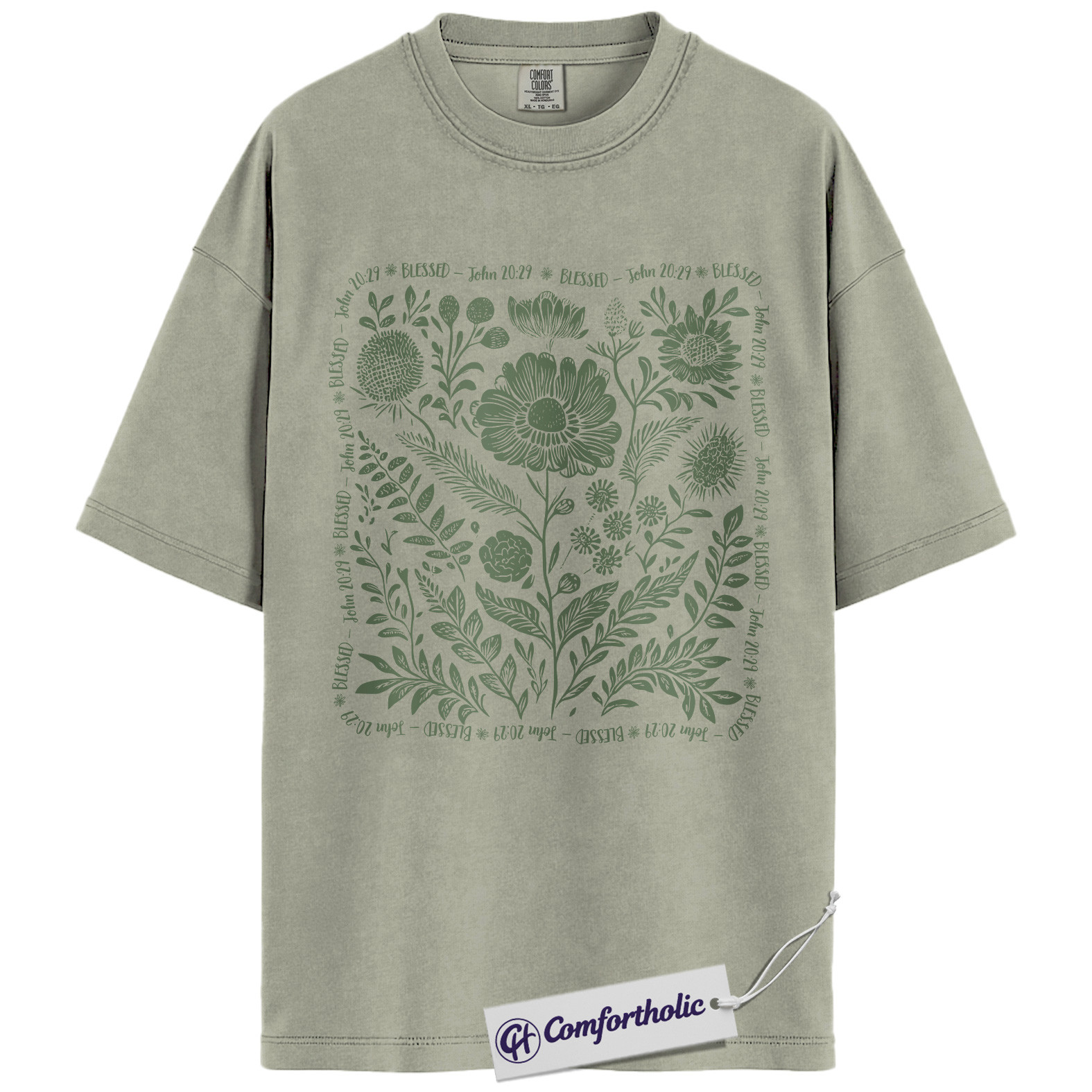 Blessed John 20:29 Shirt, Christian Bible Verse T-Shirt, Floral Faith Graphic Tee, Religious Gift for Women of Faith, Comfort Colors Shirt