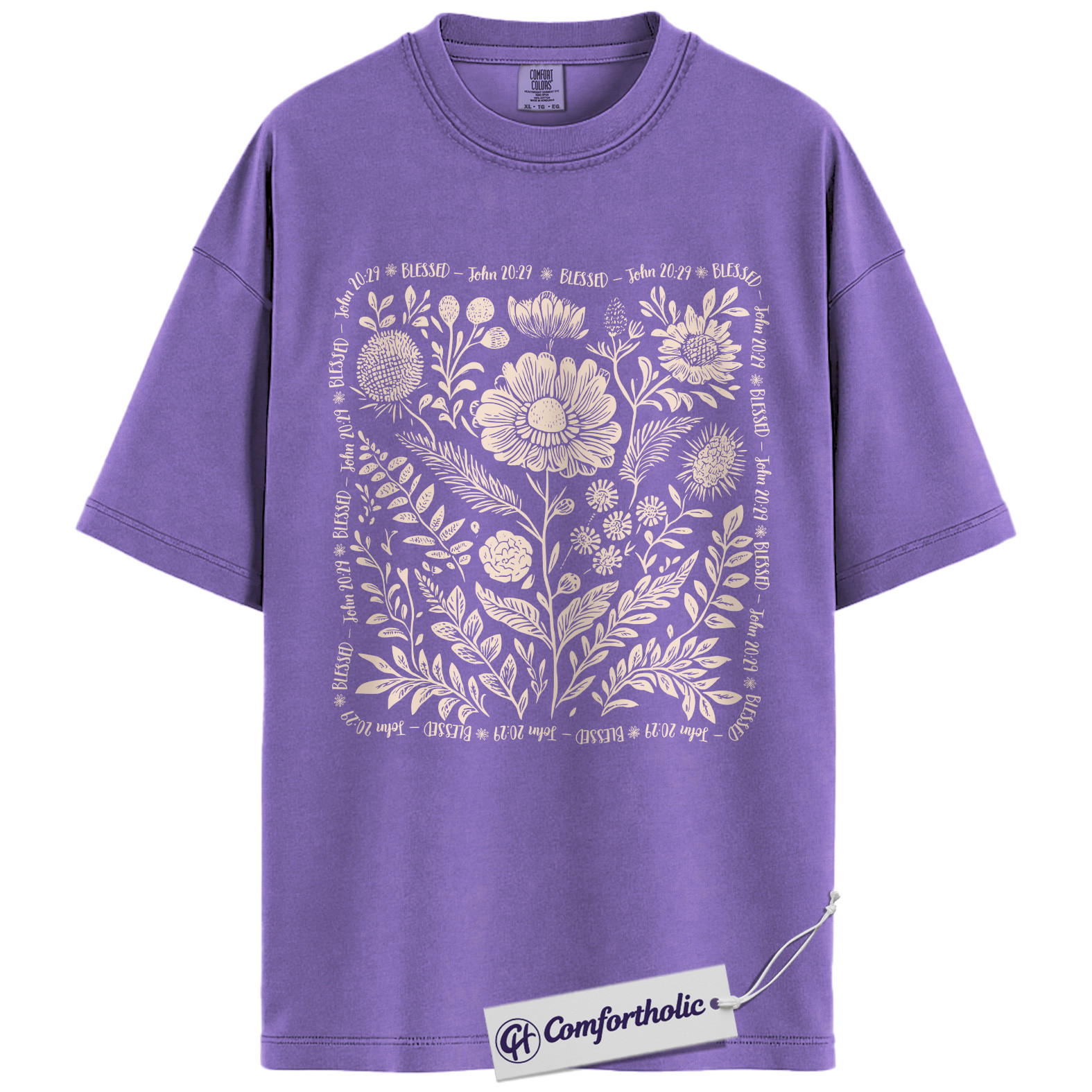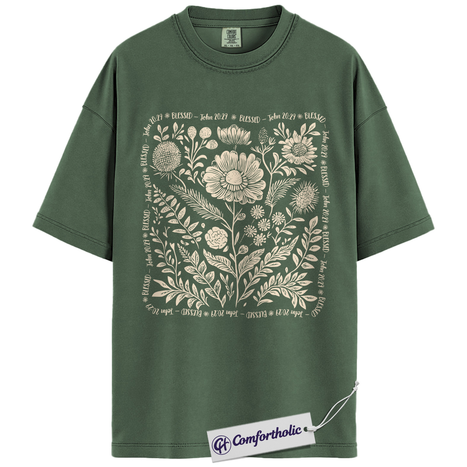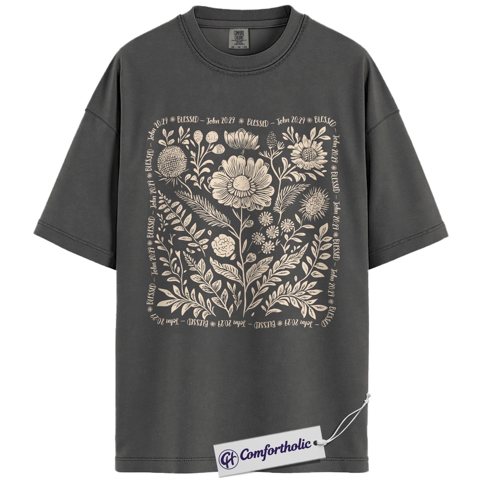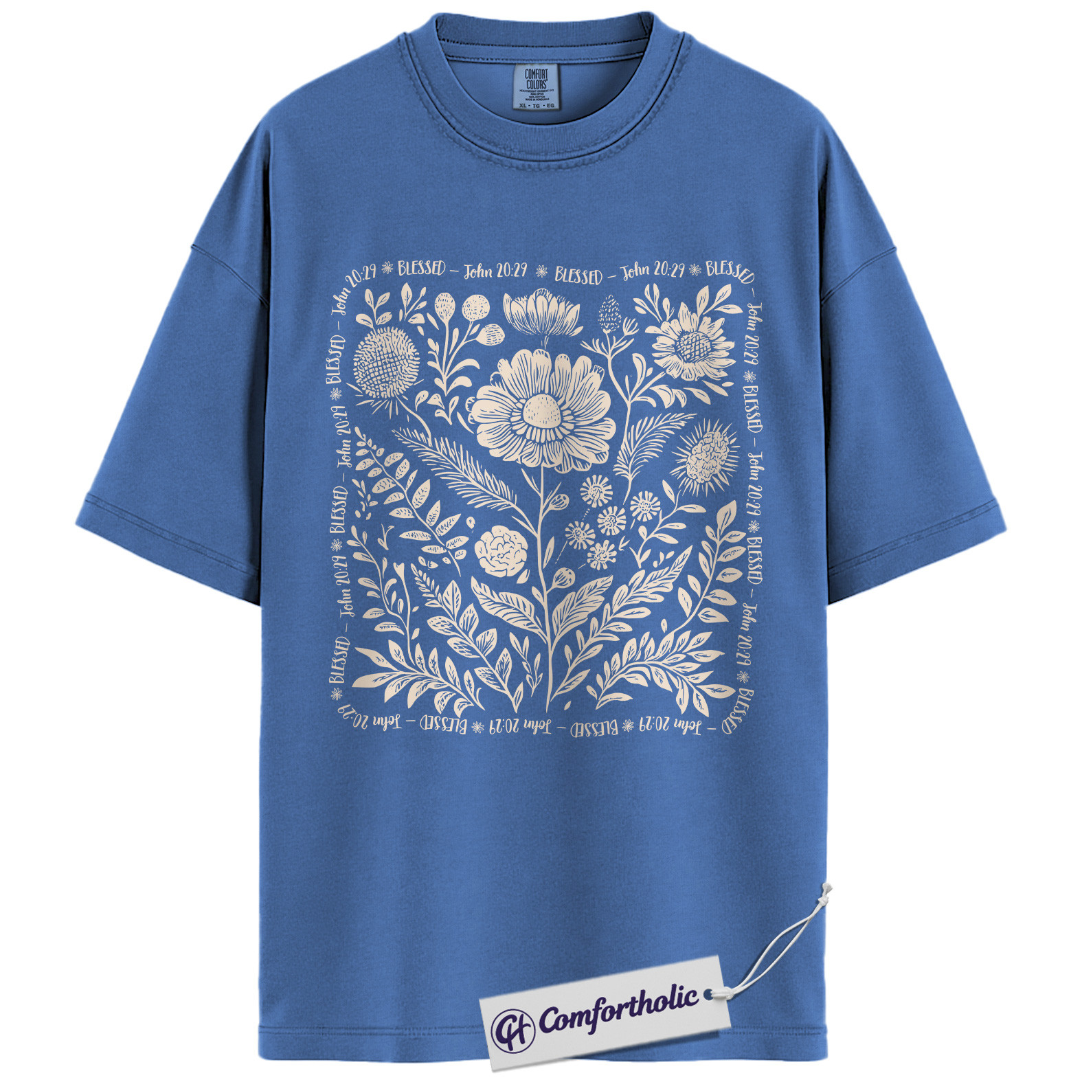 Blessed John 20:29 Shirt, Christian Bible Verse T-Shirt, Floral Faith Graphic Tee, Religious Gift for Women of Faith, Comfort Colors Shirt