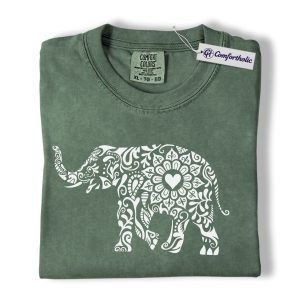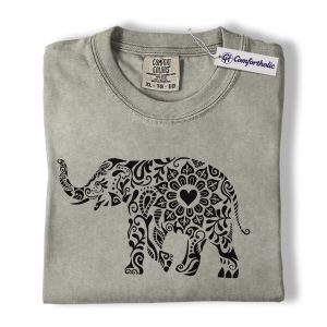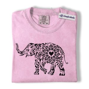 Boho Elephant Shirt, Mandala Floral Graphic Tee, Elephant Lover T-Shirt, Gift for Animal Lovers, Comfort Colors Shirt