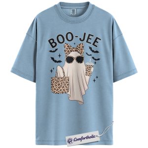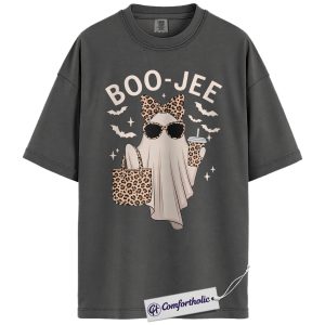 Boo Jee Ghost Shirt, Funny Leopard Print Halloween T-Shirt, Cute Spooky Season Graphic Tee for Women, Trendy Fall Outfit Top, Halloween Comfort Colors Shirt