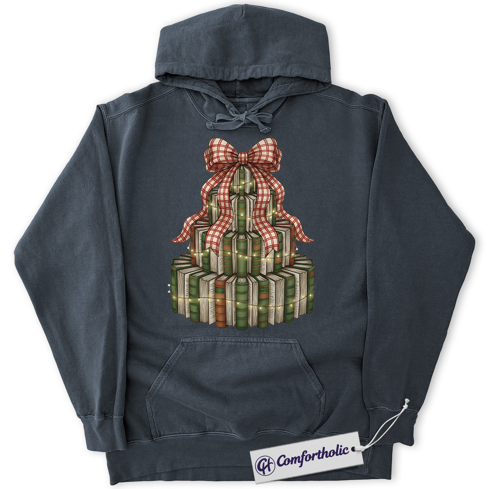 Book Christmas Tree Hoodie, Cozy Book Lover Holiday Hoodie, Festive Bookish Graphic Pullover, Gift for Readers and Librarians, Christmas Comfort Colors Hoodie
