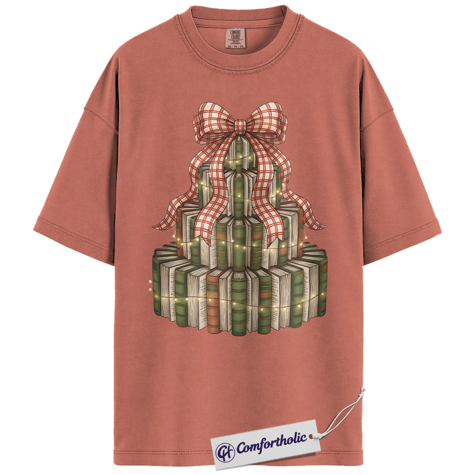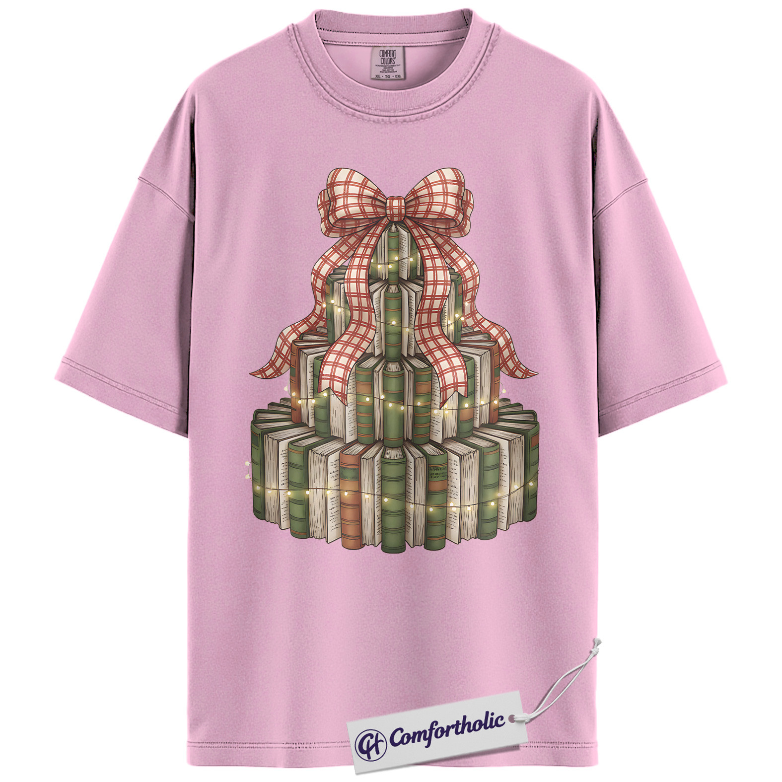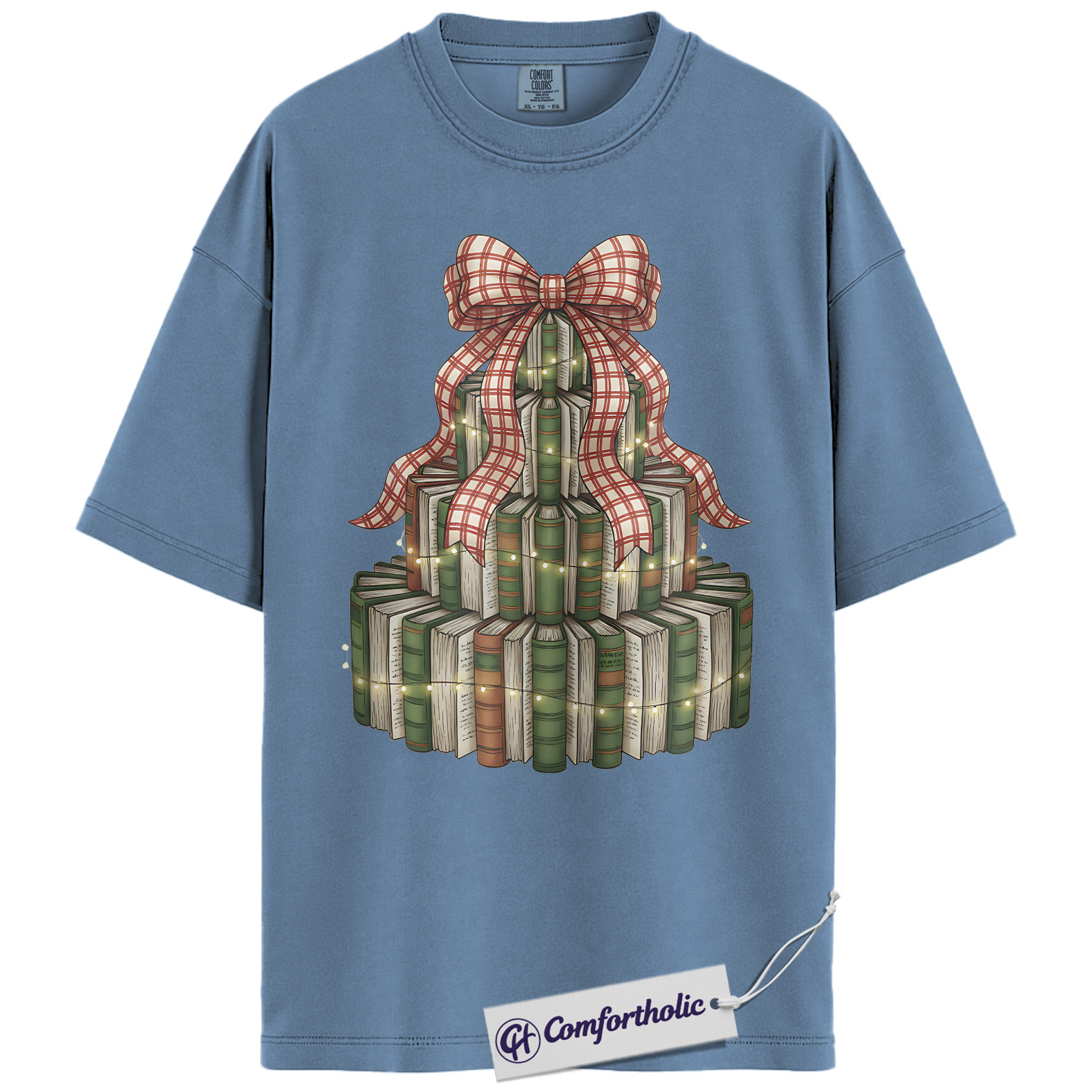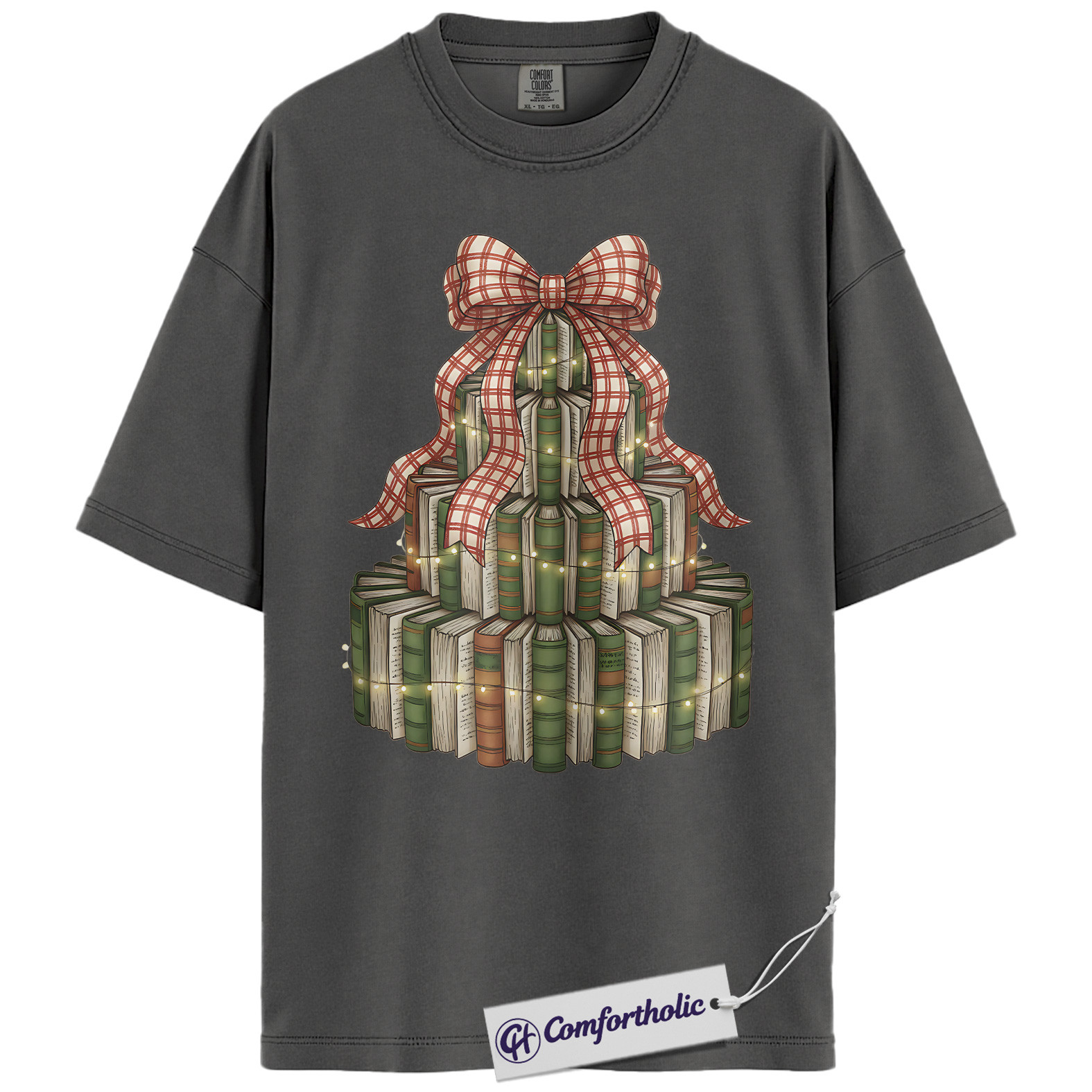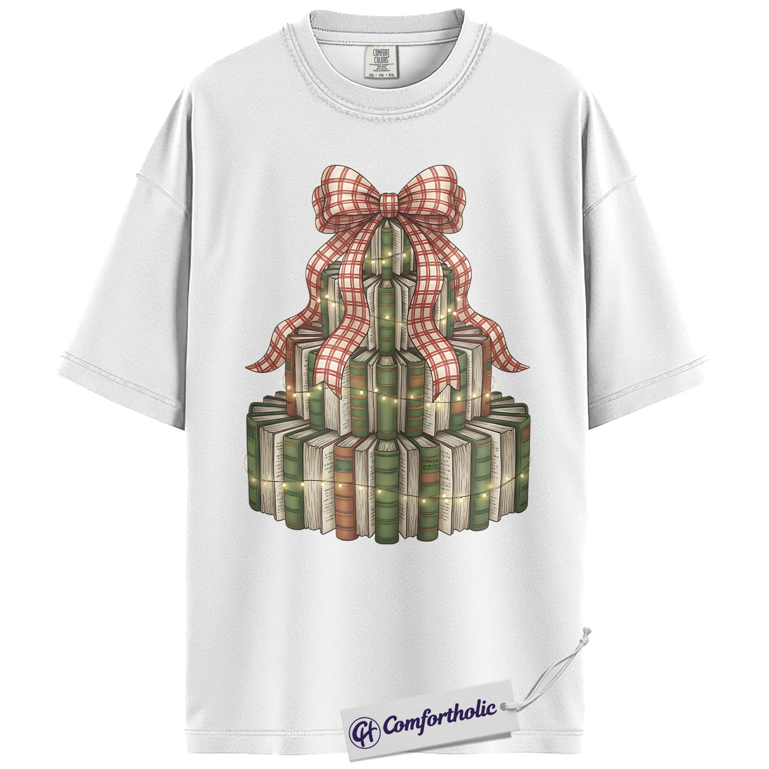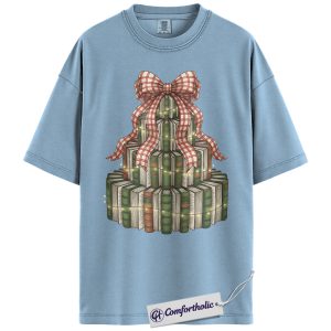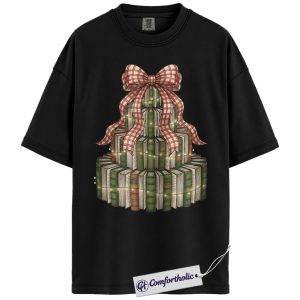 Book Christmas Tree Shirt, Cozy Book Lover Holiday T-Shirt, Festive Bookish Graphic Tee, Gift for Readers and Librarians, Christmas Comfort Colors Shirt