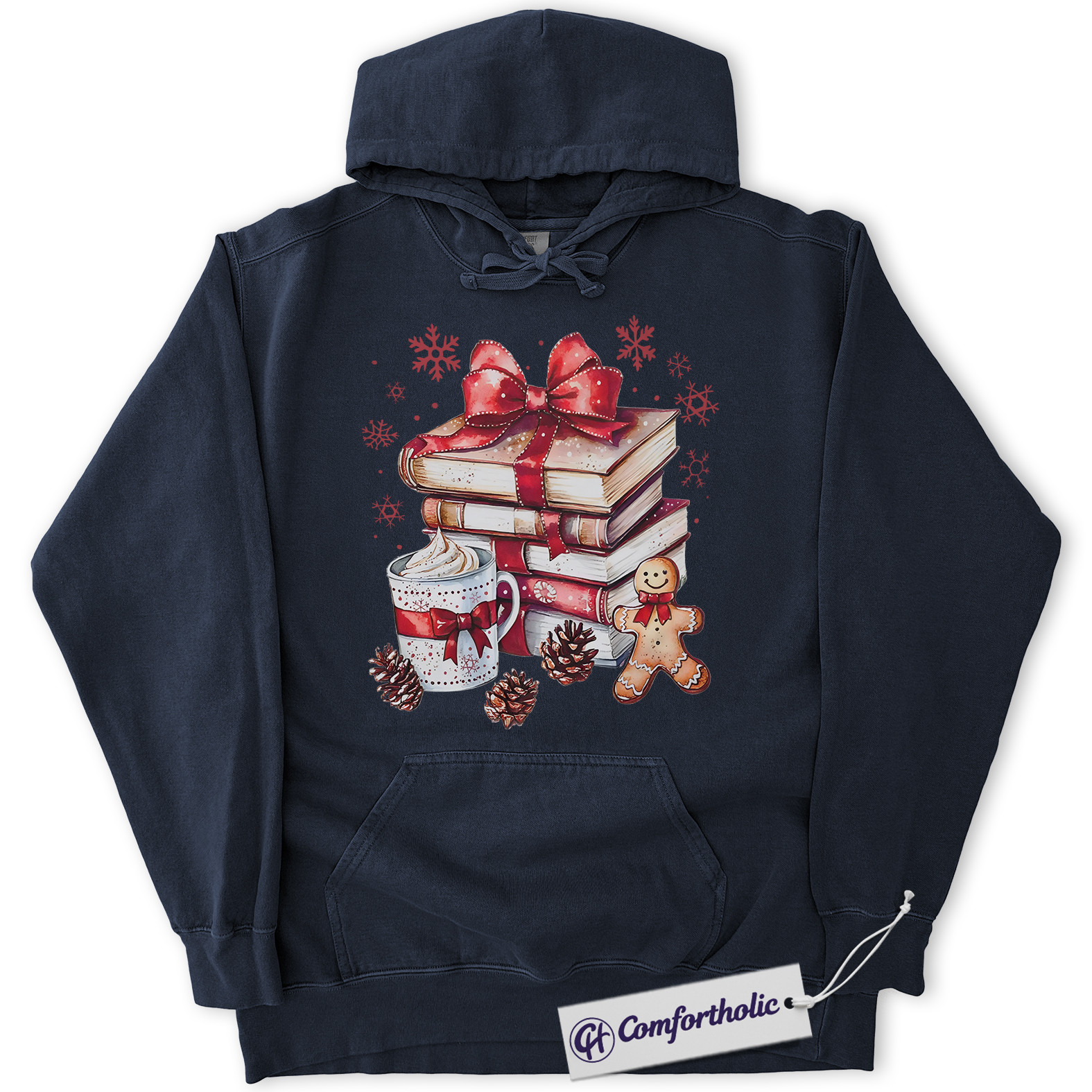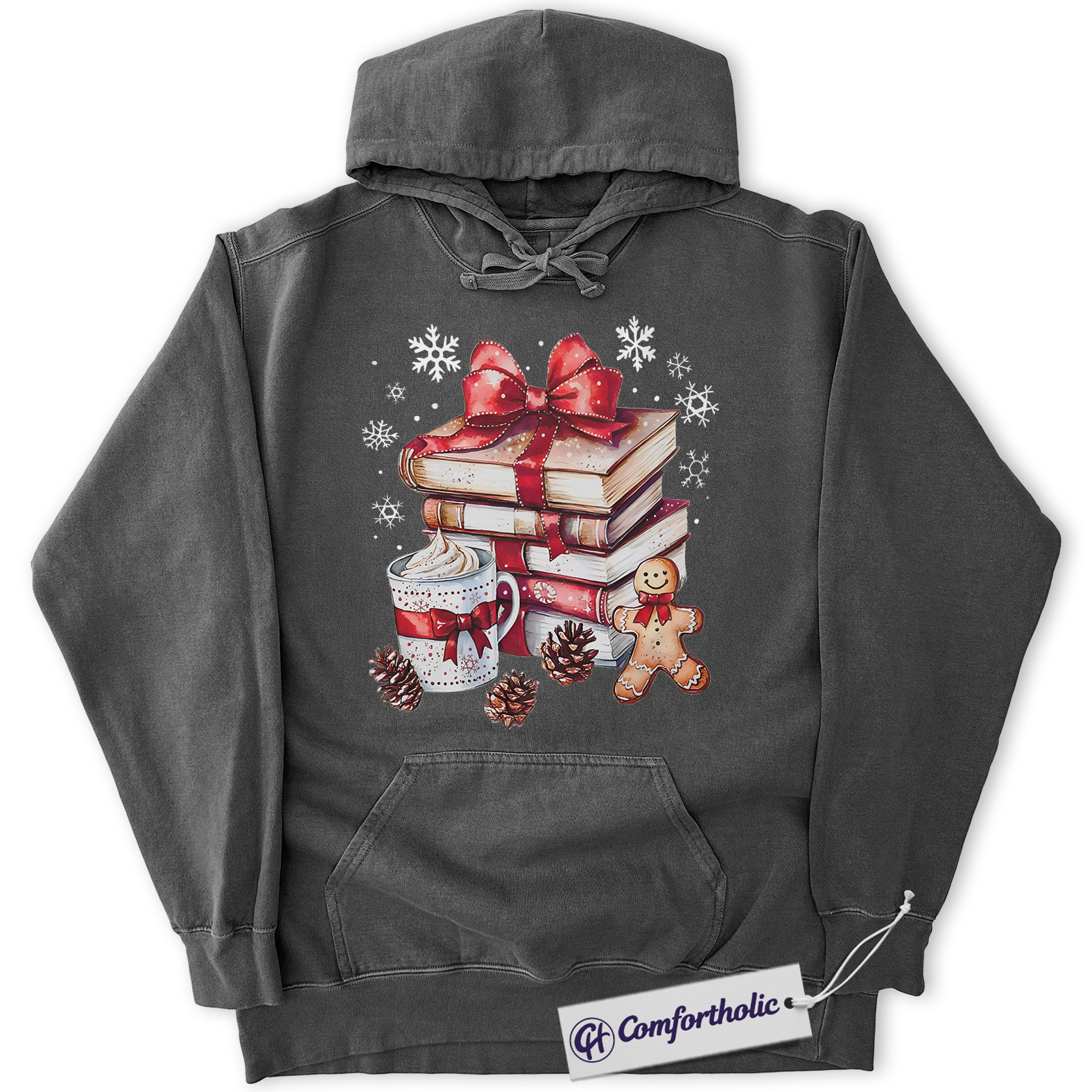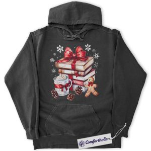 Book Lover Christmas Hoodie, Cozy Winter Reading Hoodie, Gingerbread Hot Cocoa Holiday Graphic Pullover, Gift for Readers and Librarians, Christmas Comfort Colors Hoodie