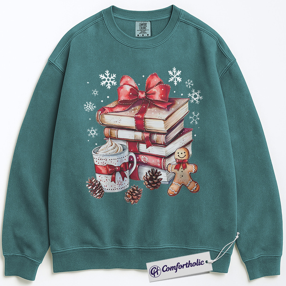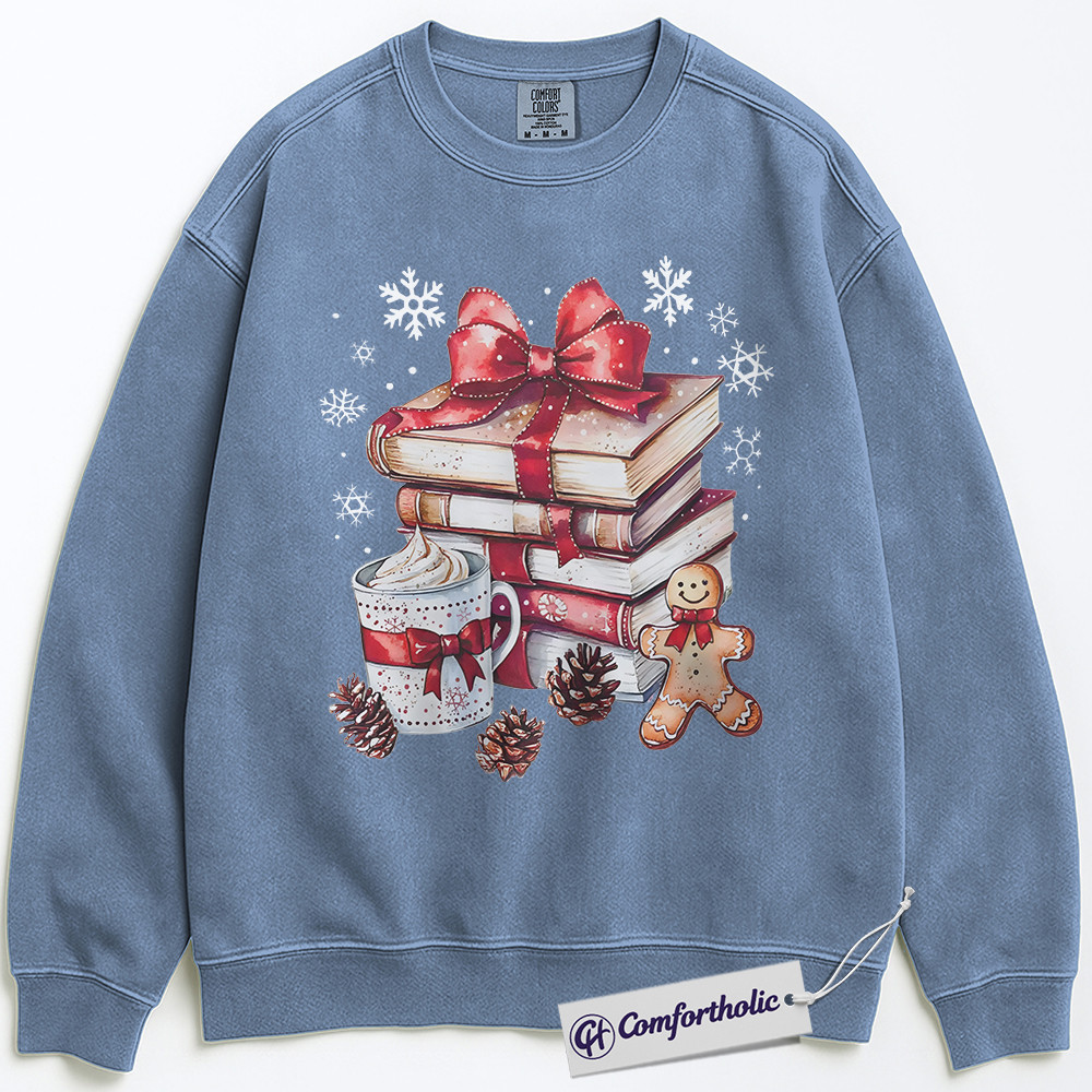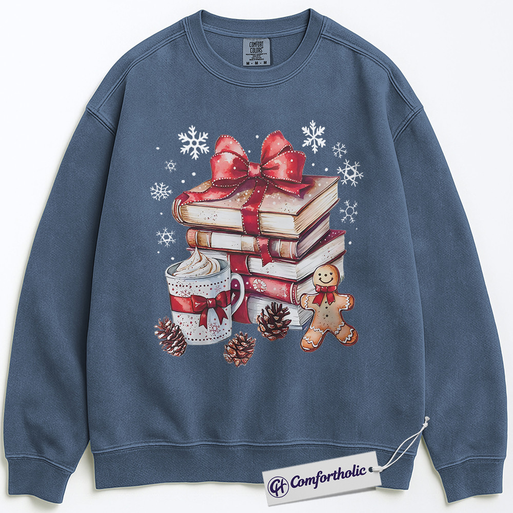 Book Lover Christmas Sweatshirt, Cozy Winter Reading Crewneck, Gingerbread Hot Cocoa Holiday Graphic Sweatshirt, Gift for Readers & Librarians, Christmas Comfort Colors Sweatshirt