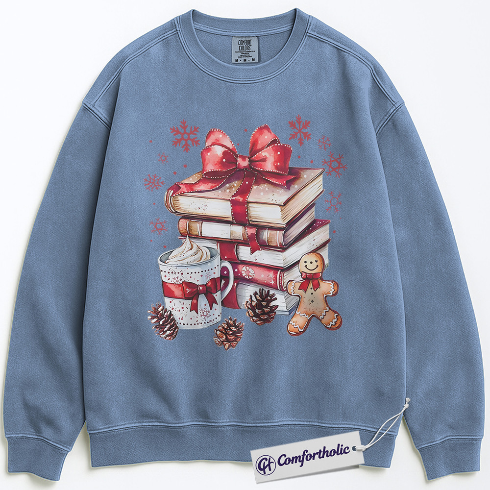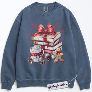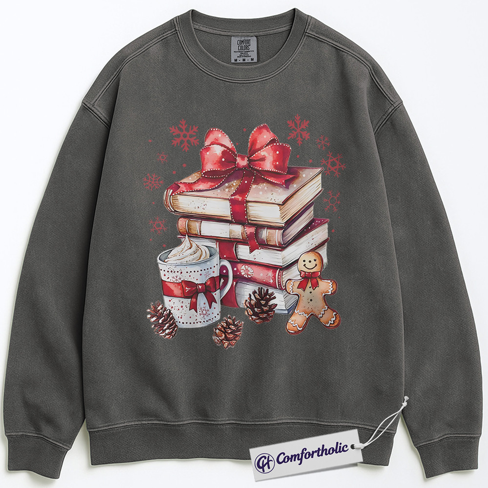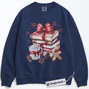 Book Lover Christmas Sweatshirt, Cozy Winter Reading Pullover, Gingerbread Hot Cocoa Holiday Graphic Sweatshirt, Gift for Readers and Librarians, Christmas Comfort Colors Sweatshirt