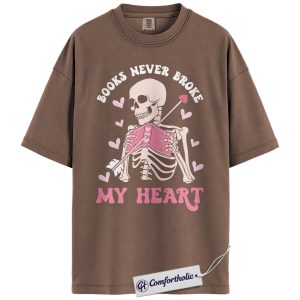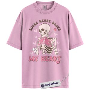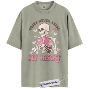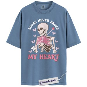 Books Never Broke My Heart Shirt, Cute Skeleton Valentine Graphic Tee, Booktok Reader T-Shirt, Funny Valentine Gift for Book Lovers, Comfort Colors Shirt