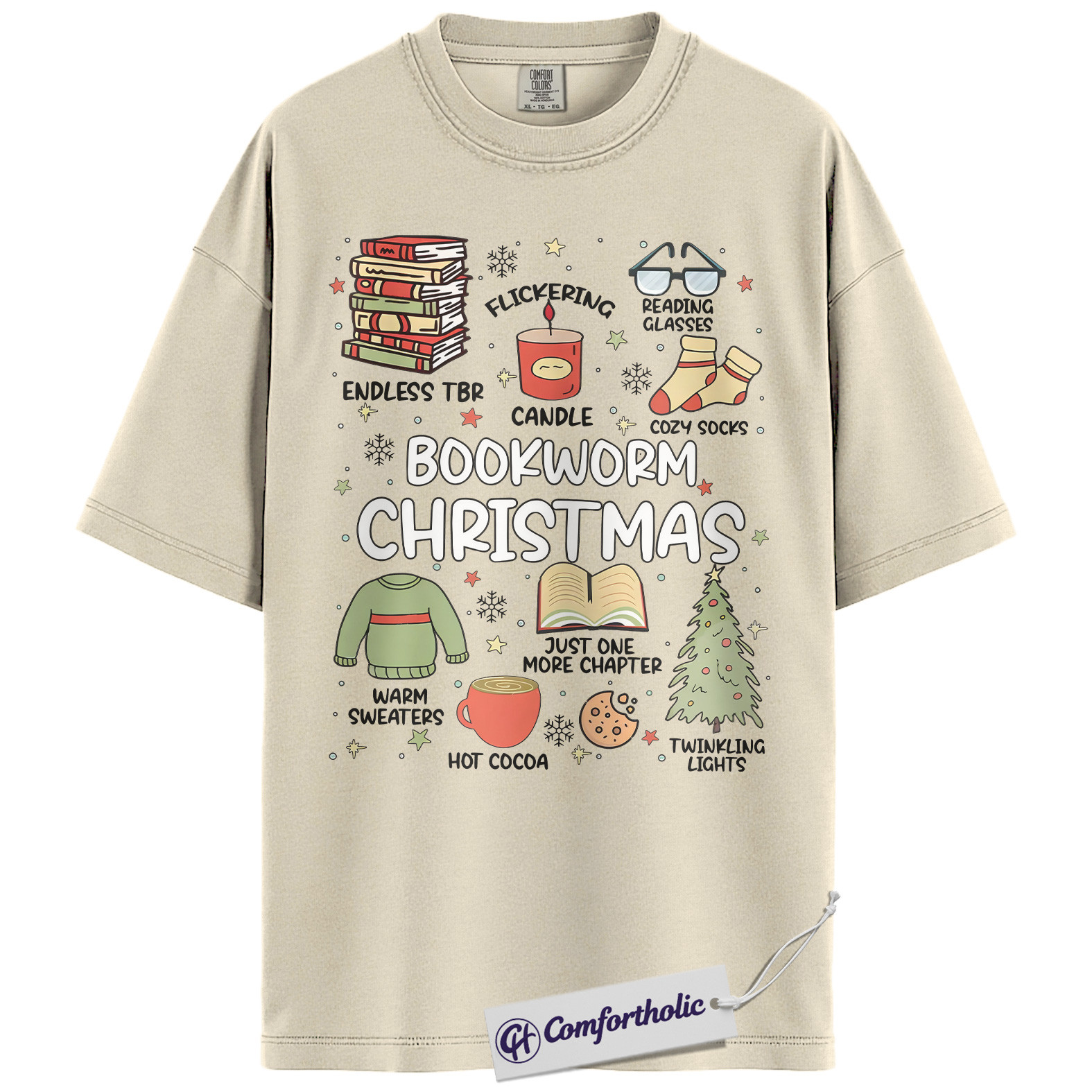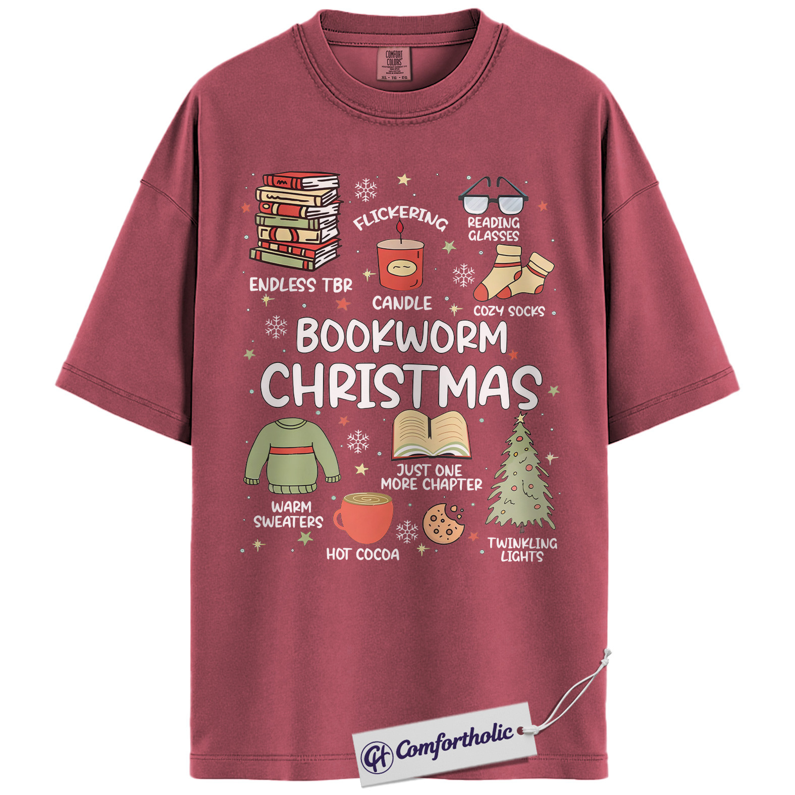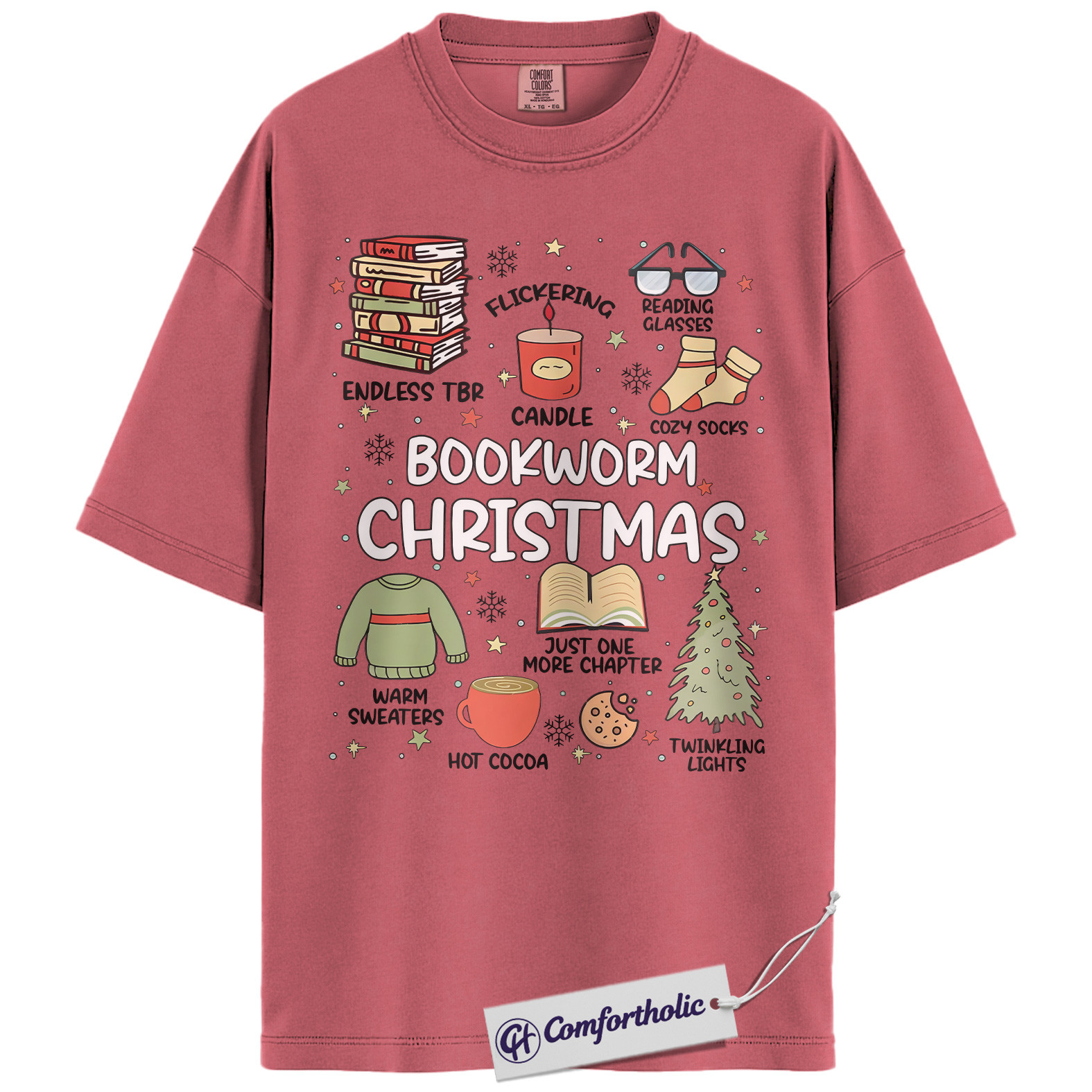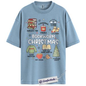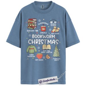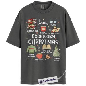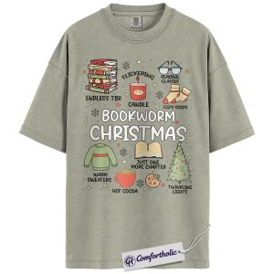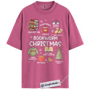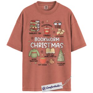 Bookworm Christmas Shirt, Cozy Holiday Reader T-Shirt, Cute Book Lover Graphic Tee, Festive Gift for Readers and Bibliophiles, Christmas Comfort Colors Shirt