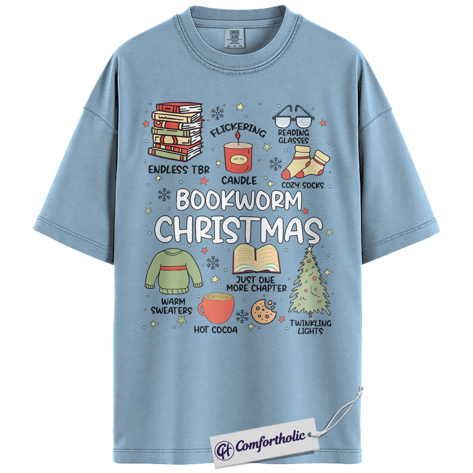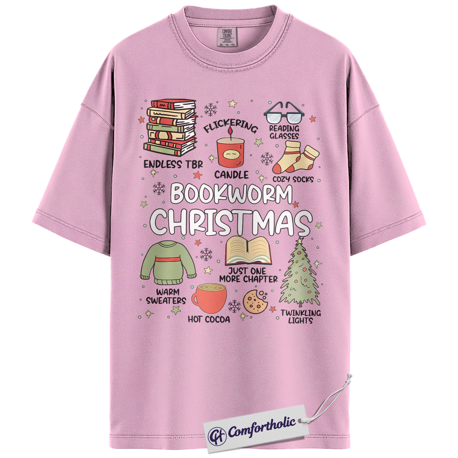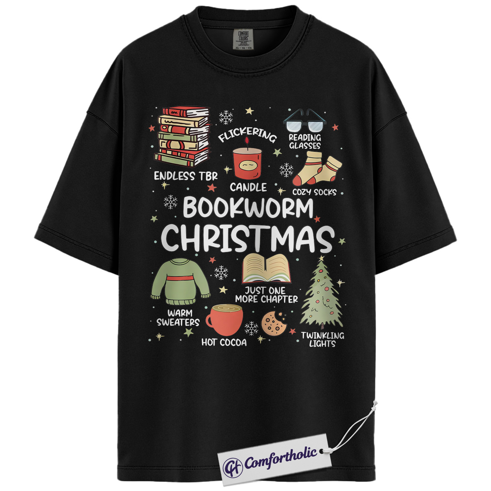 Bookworm Christmas Shirt, Cozy Holiday Reader T-Shirt, Cute Book Lover Graphic Tee, Festive Gift for Readers and Bibliophiles, Christmas Comfort Colors Shirt