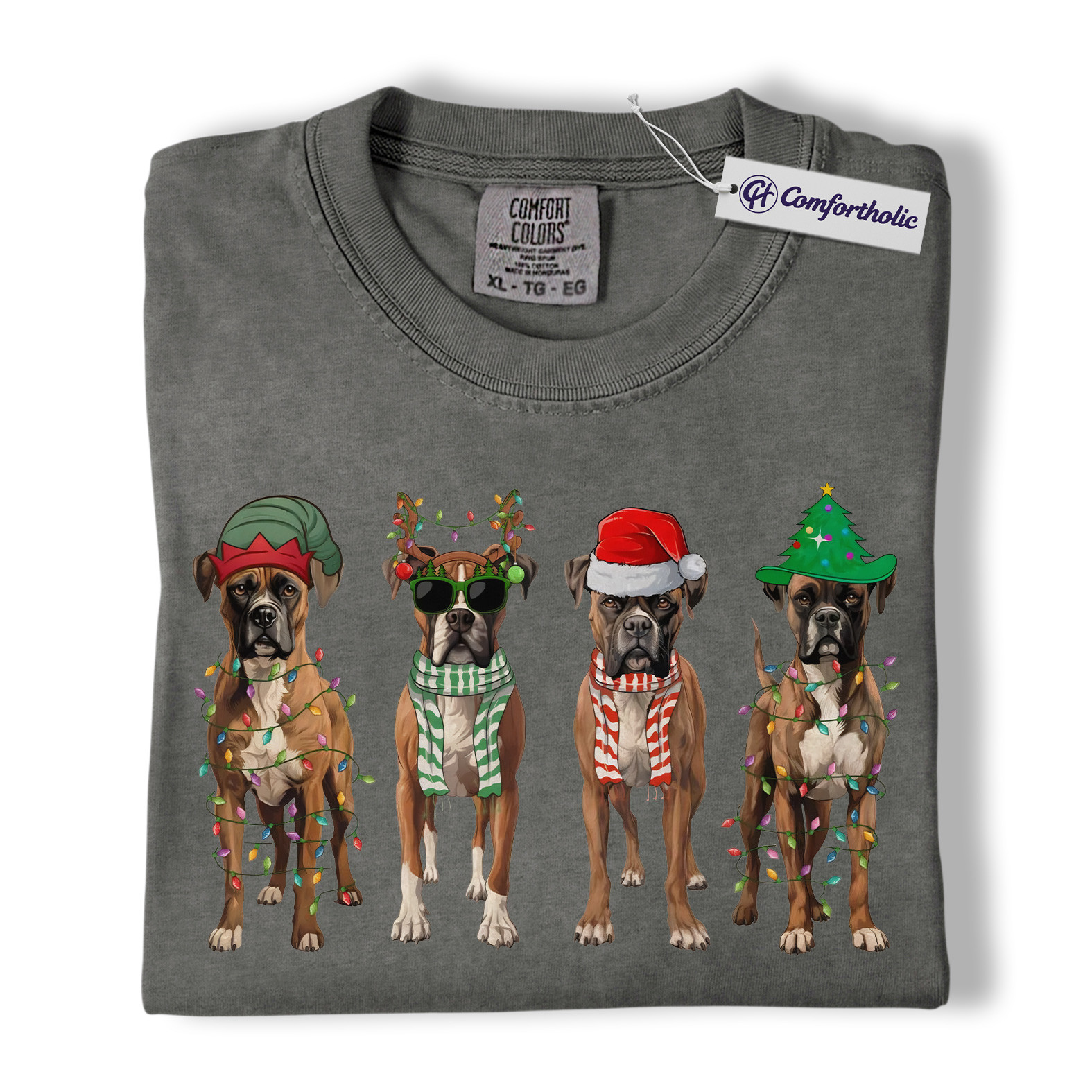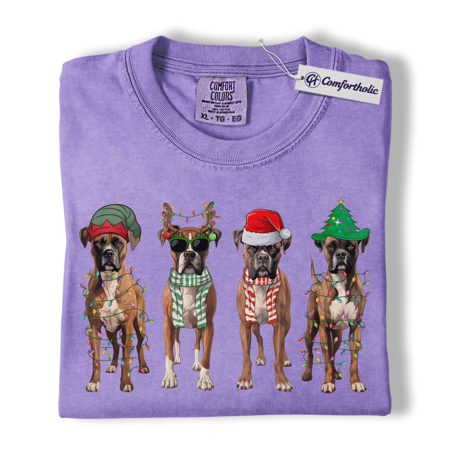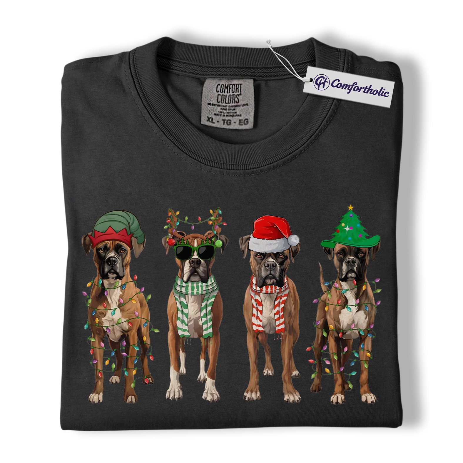 Boxer Christmas Shirt, Funny Holiday Dog Lover T-Shirt, Cute Santa Puppy Graphic Tee, Christmas Gift for Pet Owners, Christmas Comfort Colors Shirt