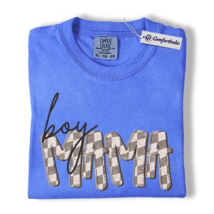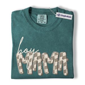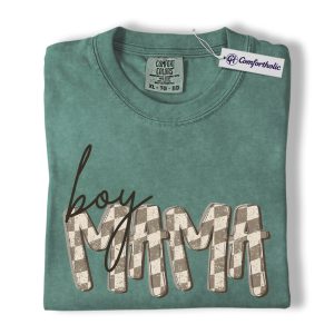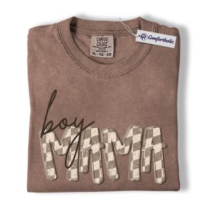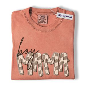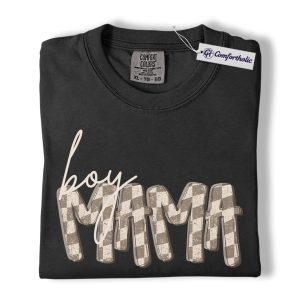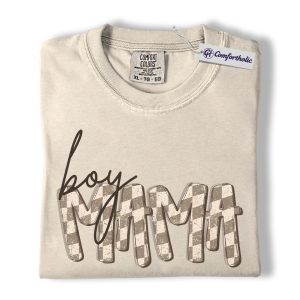Boy Mama Shirt, Gingham Mama Graphic Tee, Motherhood Mom Life T-Shirt, Mother’s Day Gift for Boy Moms, Comfort Colors Shirt
