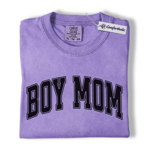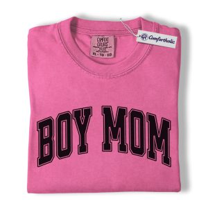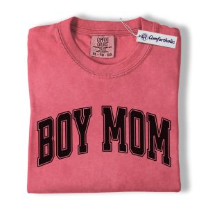 Boy Mom Shirt, BOY MOM Varsity Letter Graphic Tee, Cute Mom T-Shirt, Mother’s Day Gift for Boy Moms, Comfort Colors Shirt