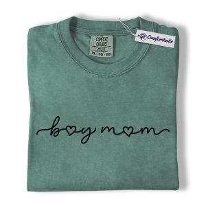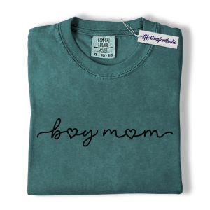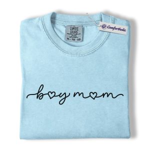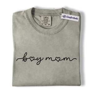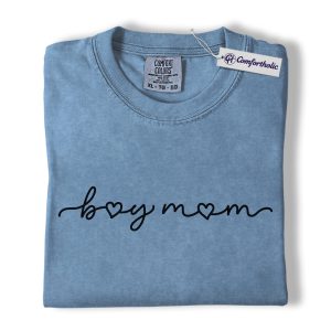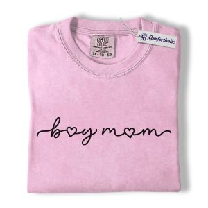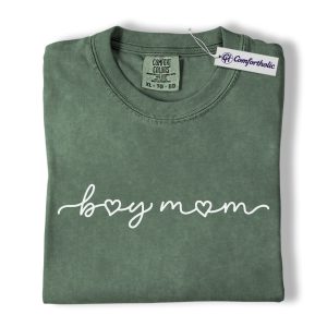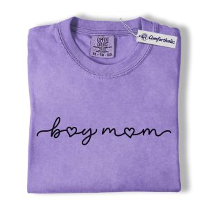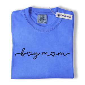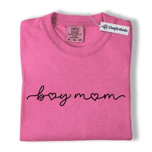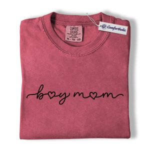 Boy Mom Shirt, Minimalist Heart Script Graphic Tee, Mom Life T-Shirt, Mother’s Day Gift for Boy Moms, Comfort Colors Shirt