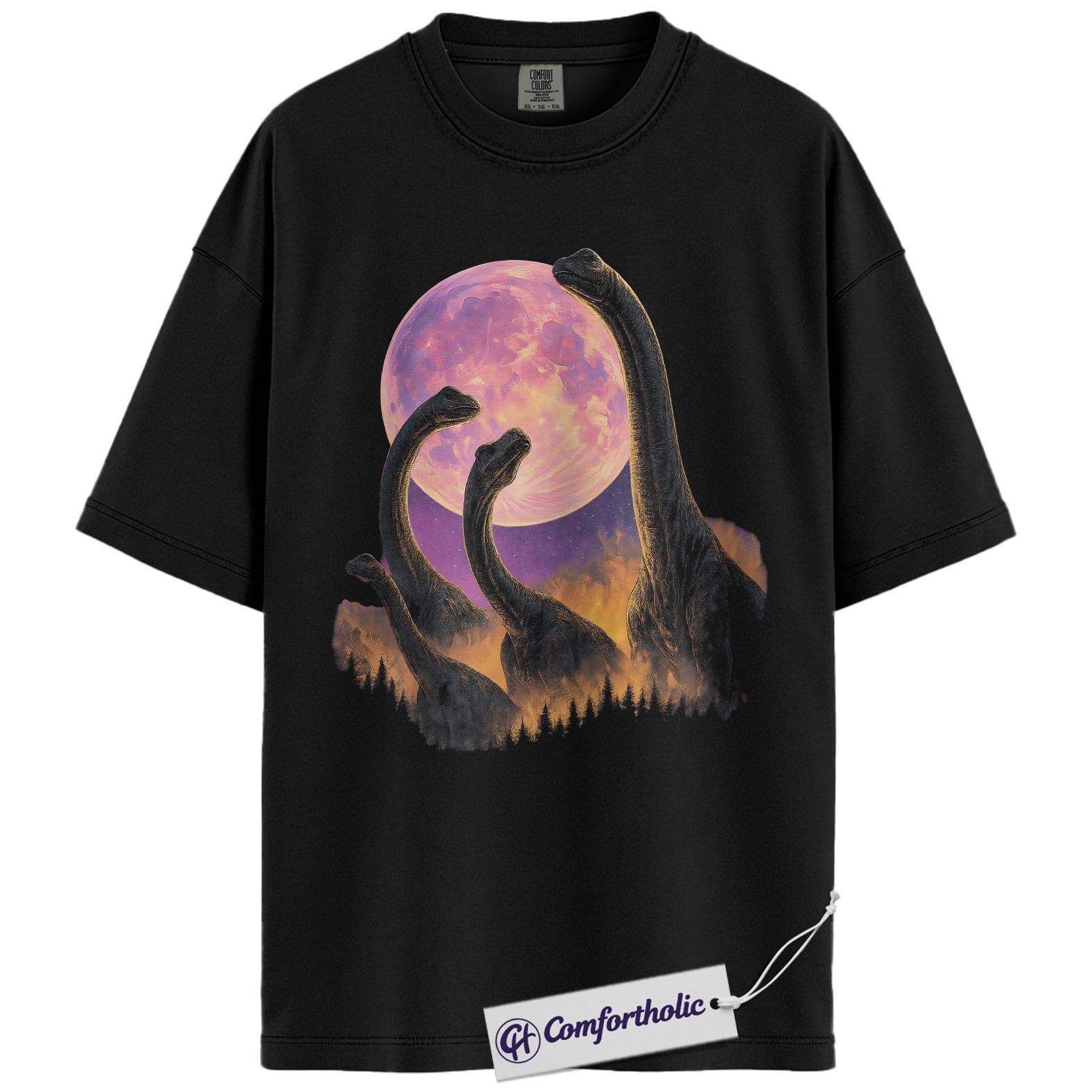 Brachiosaurus Moon Shirt, Dinosaur Aesthetic Graphic Tee, Prehistoric Forest T-Shirt, Fantasy Art Gift for Dino Lovers, Comfort Colors Shirt