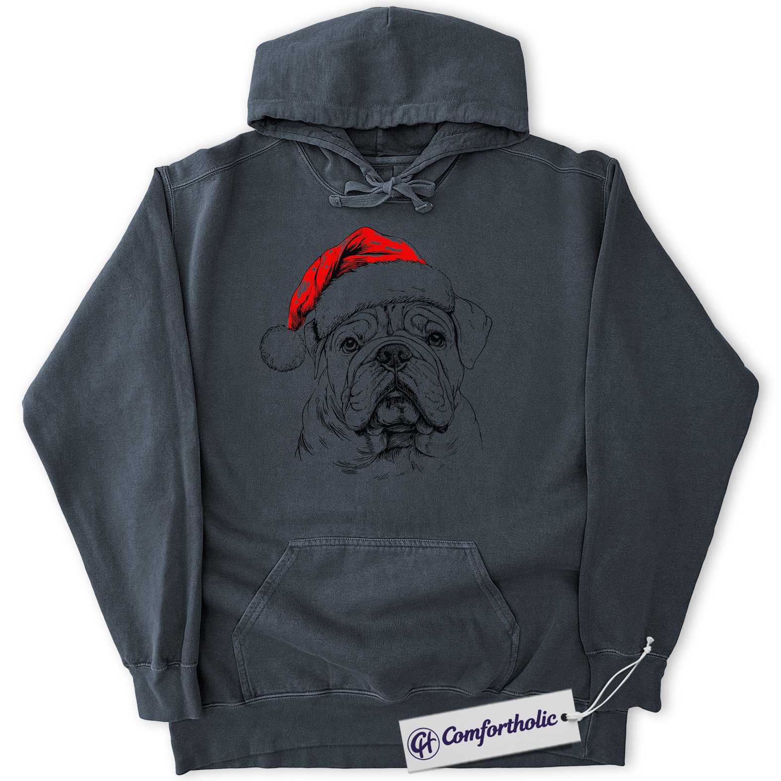Bulldog Christmas Hoodie, Funny Holiday Pet Lover Hoodie, Santa Dog Graphic Pullover, Cute Gift for Dog Lovers, Christmas Comfort Colors Hoodie