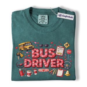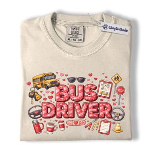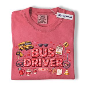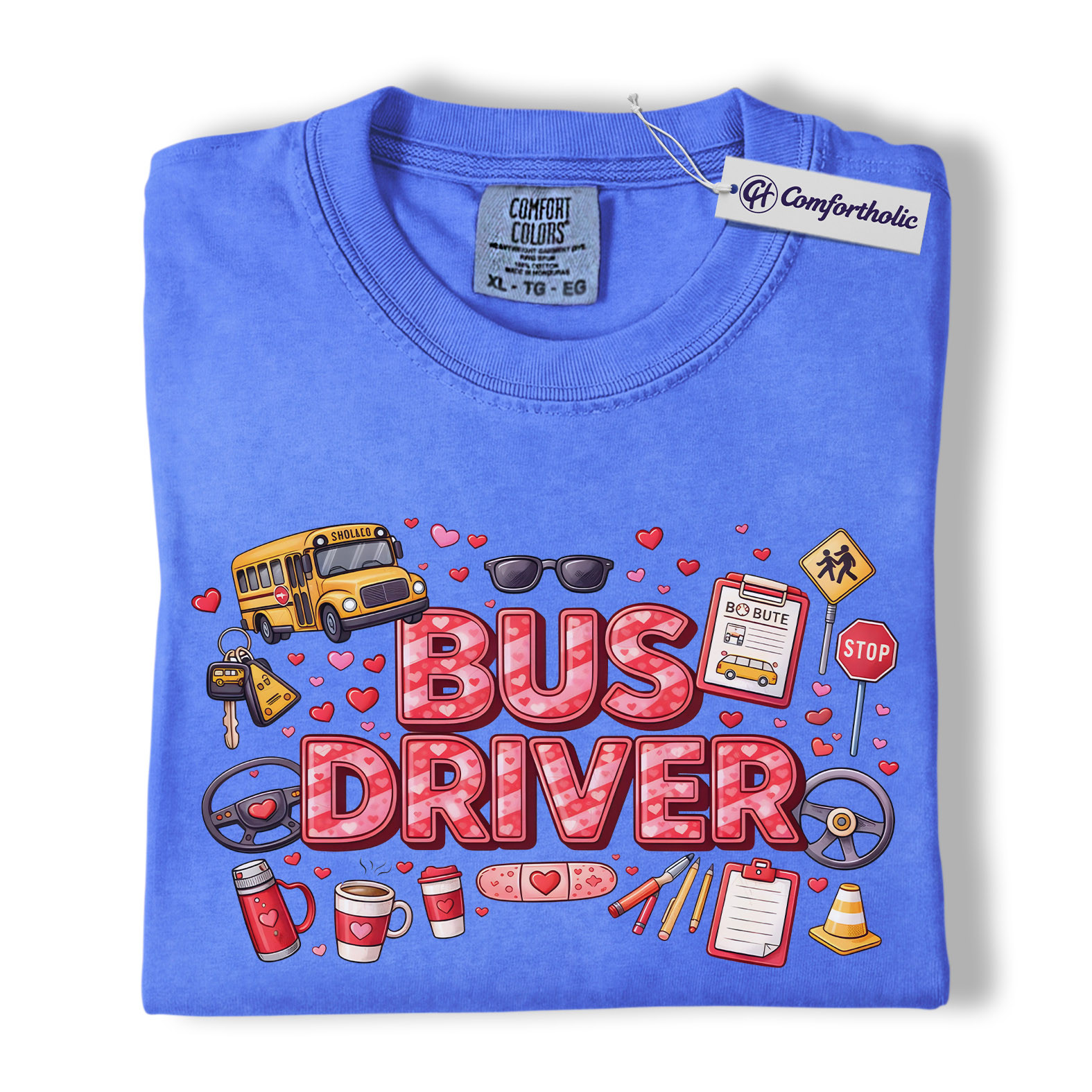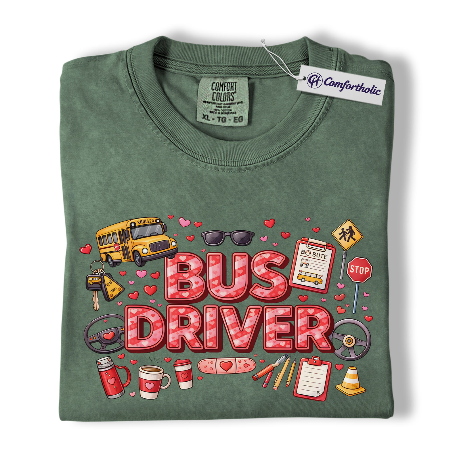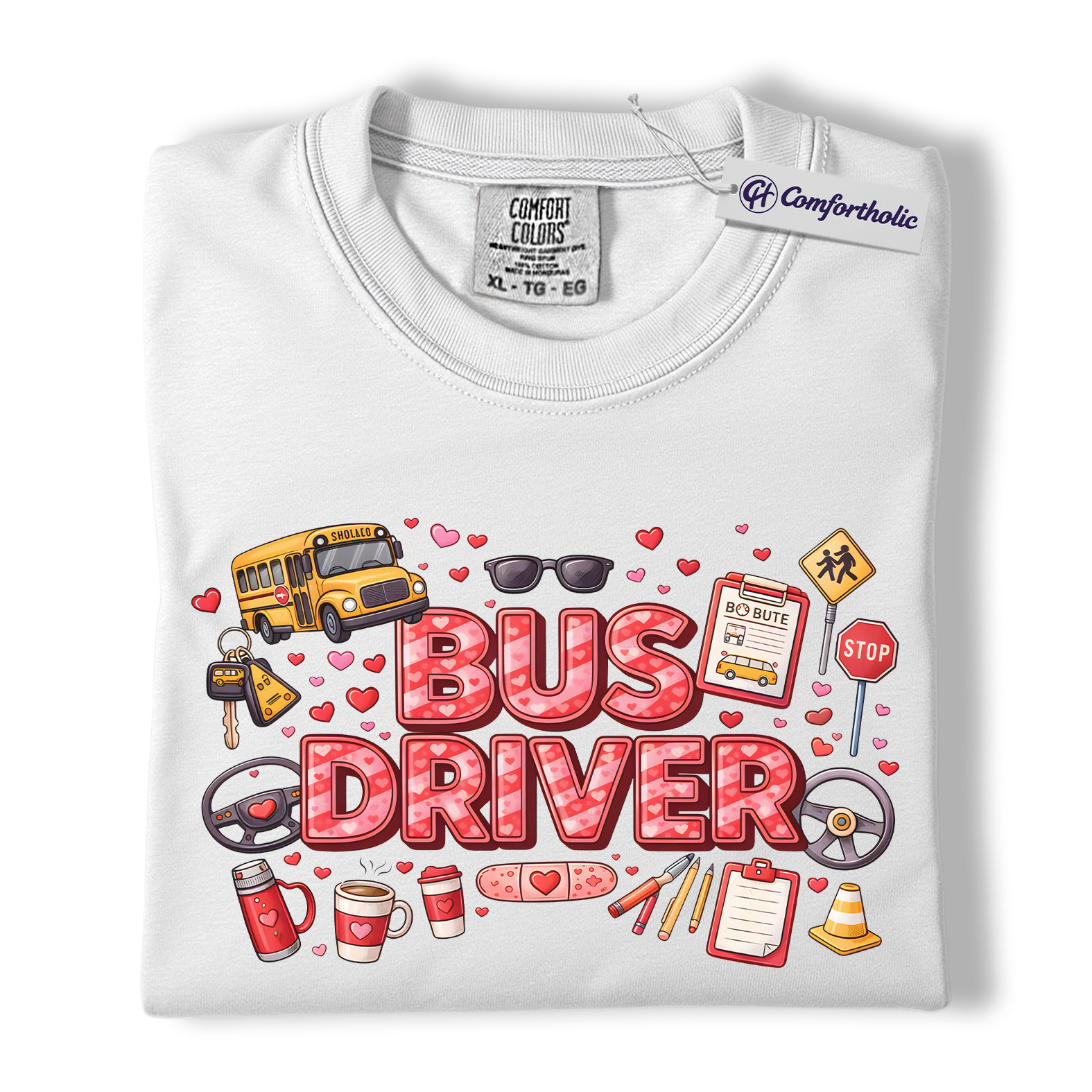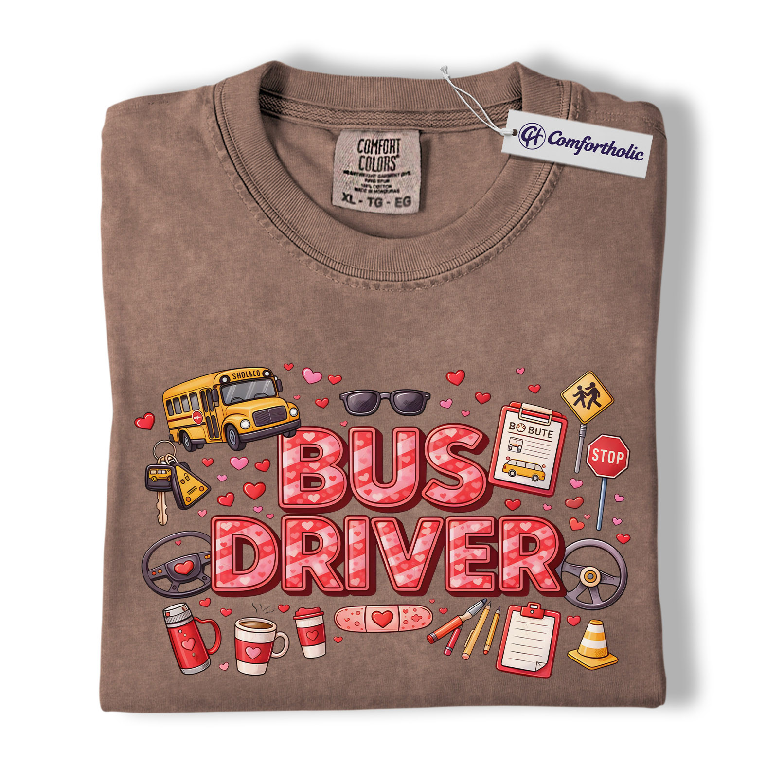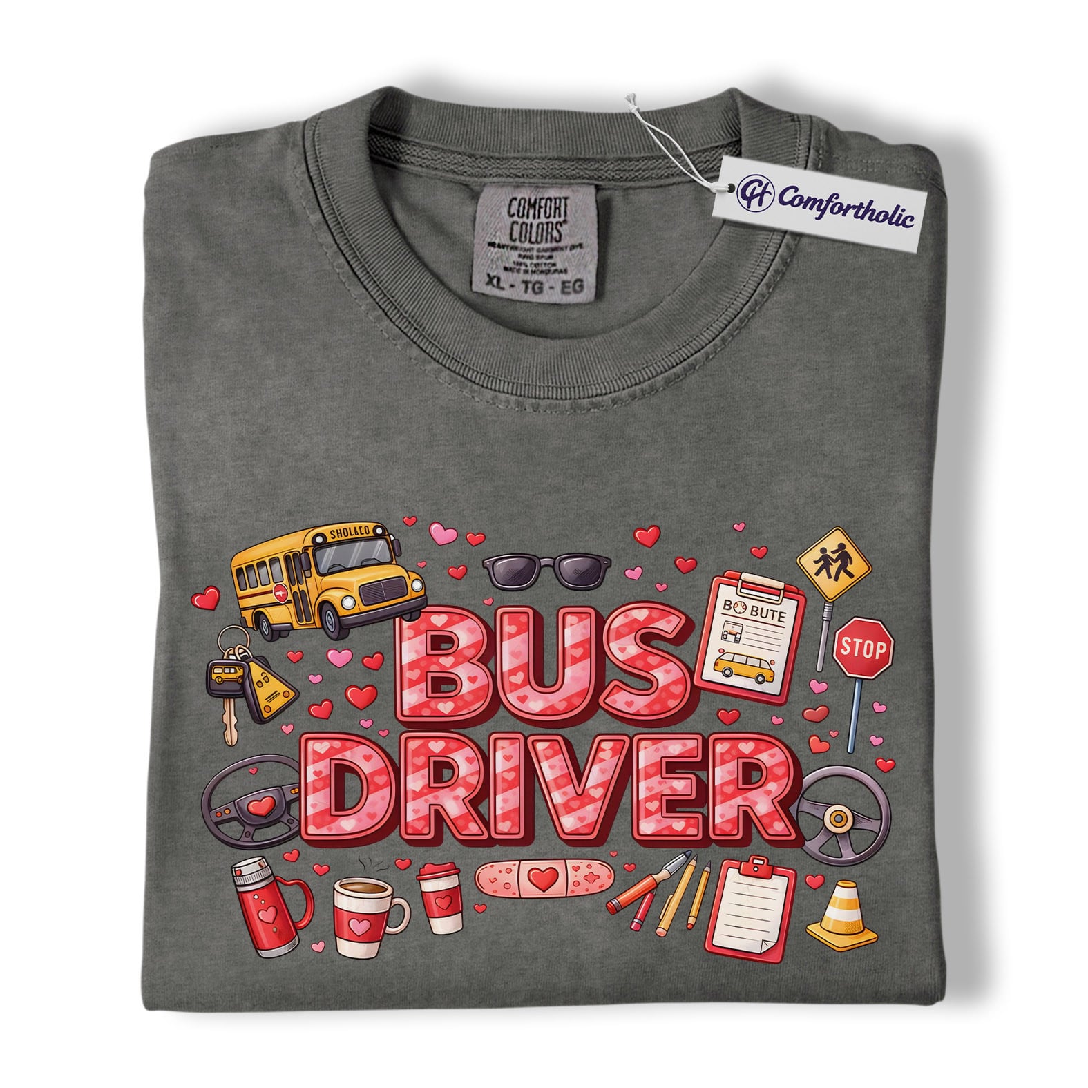 Bus Driver Valentine Shirt, Pink Heart Bus Graphic Tee, School Bus Driver Appreciation T-Shirt, Valentine’s Day Gift for Bus Drivers, Comfort Colors Shirt