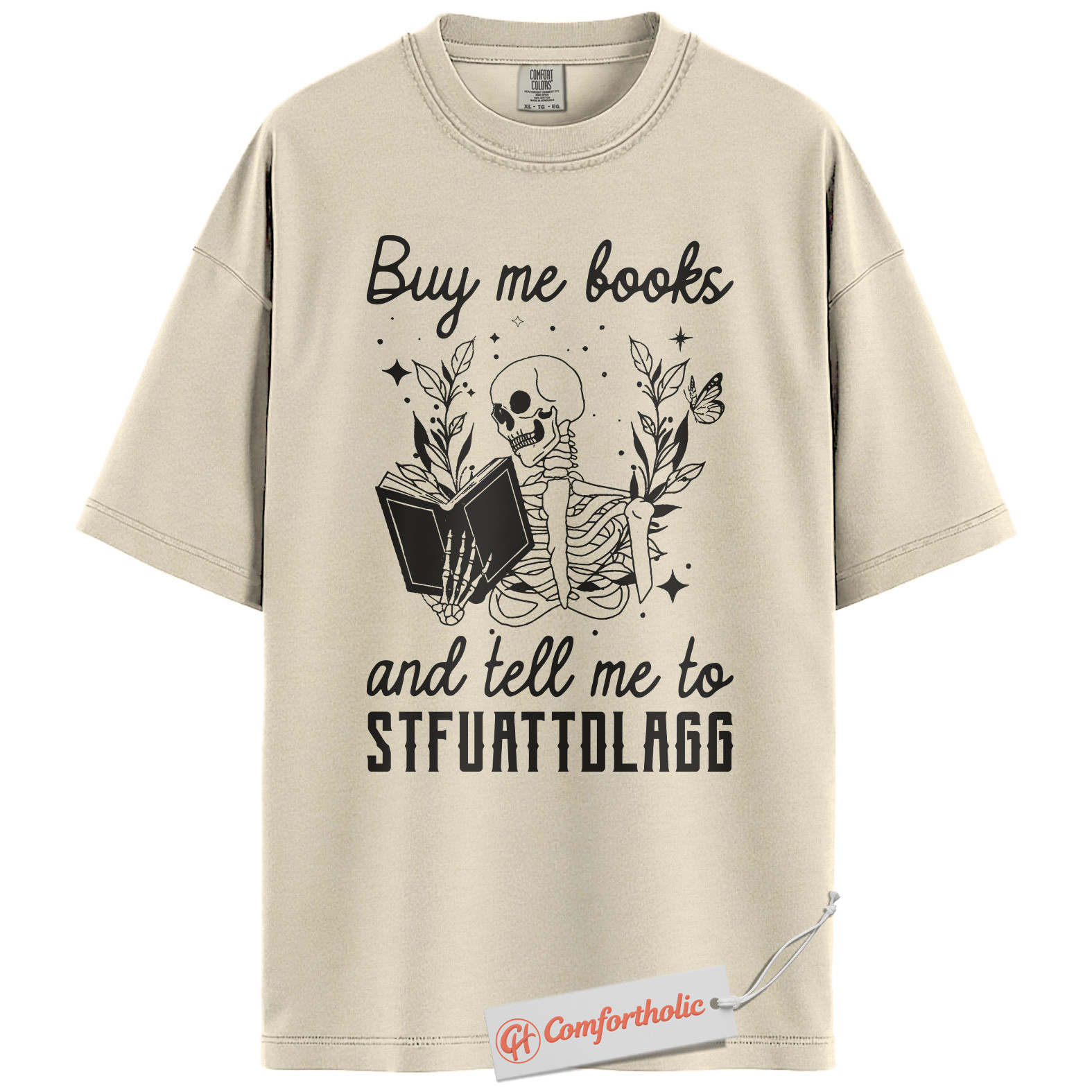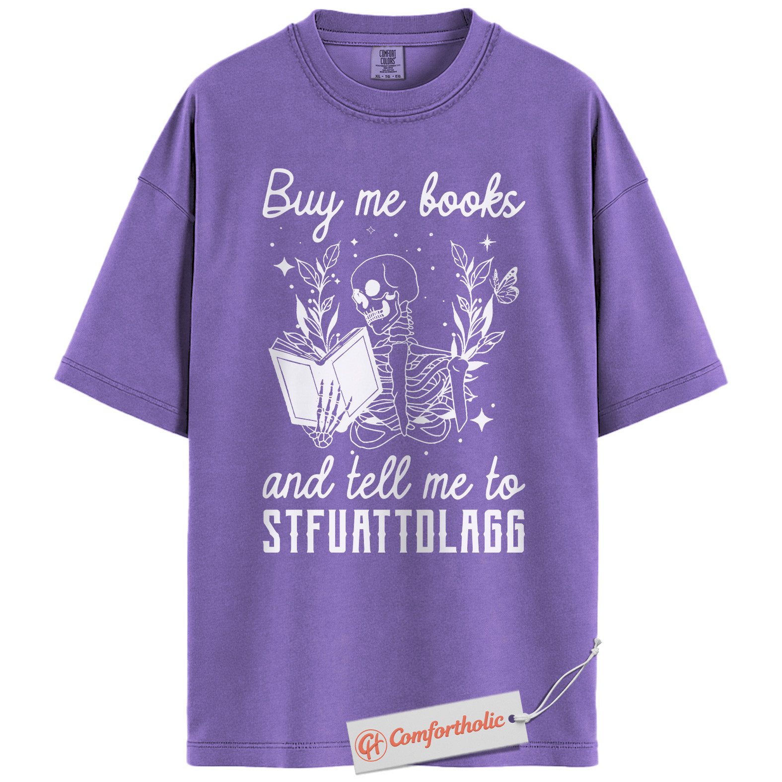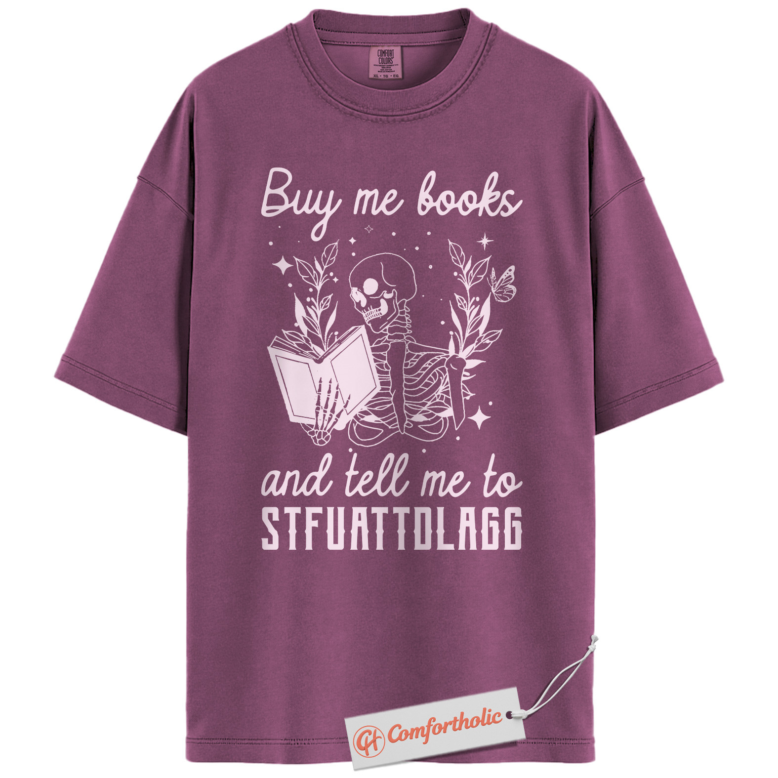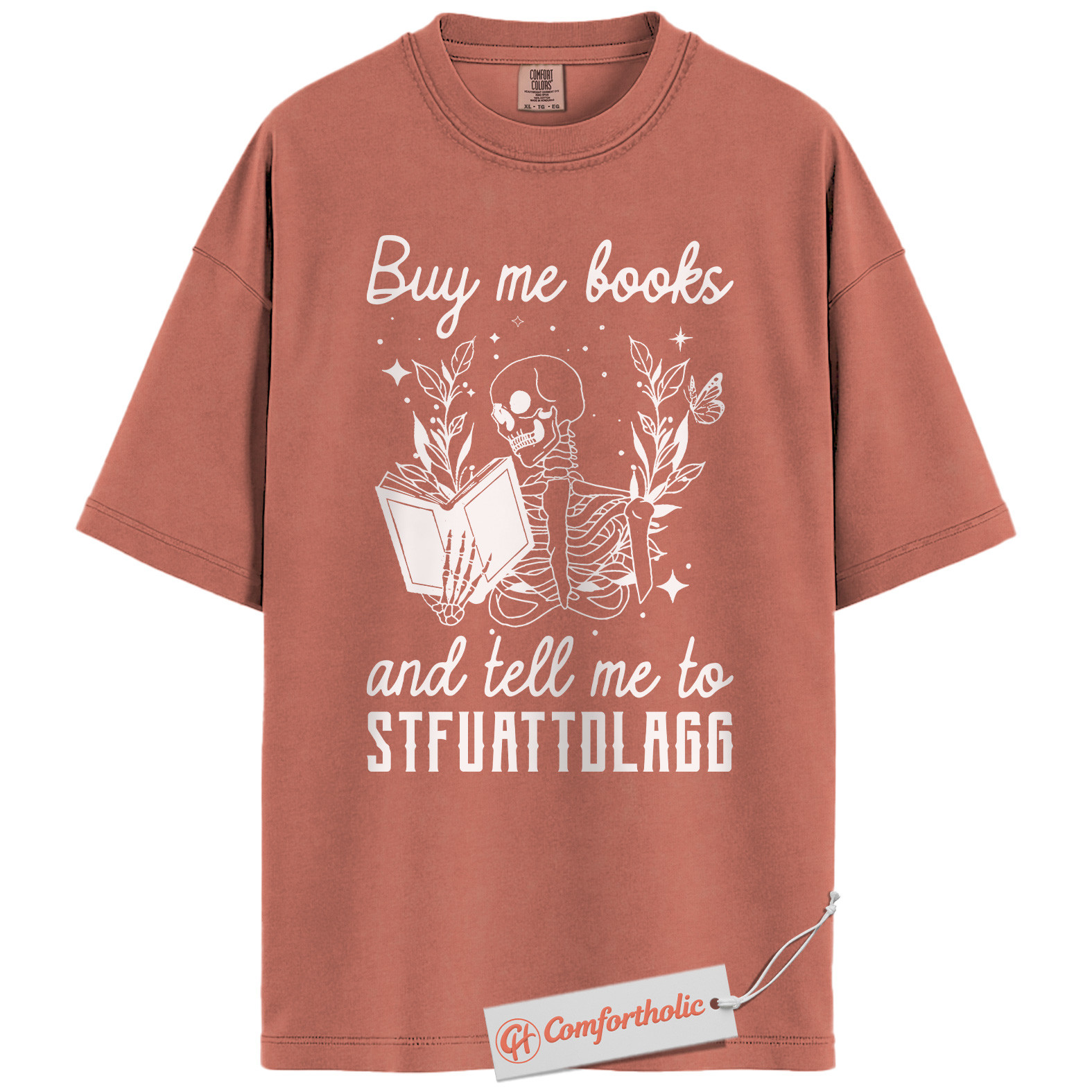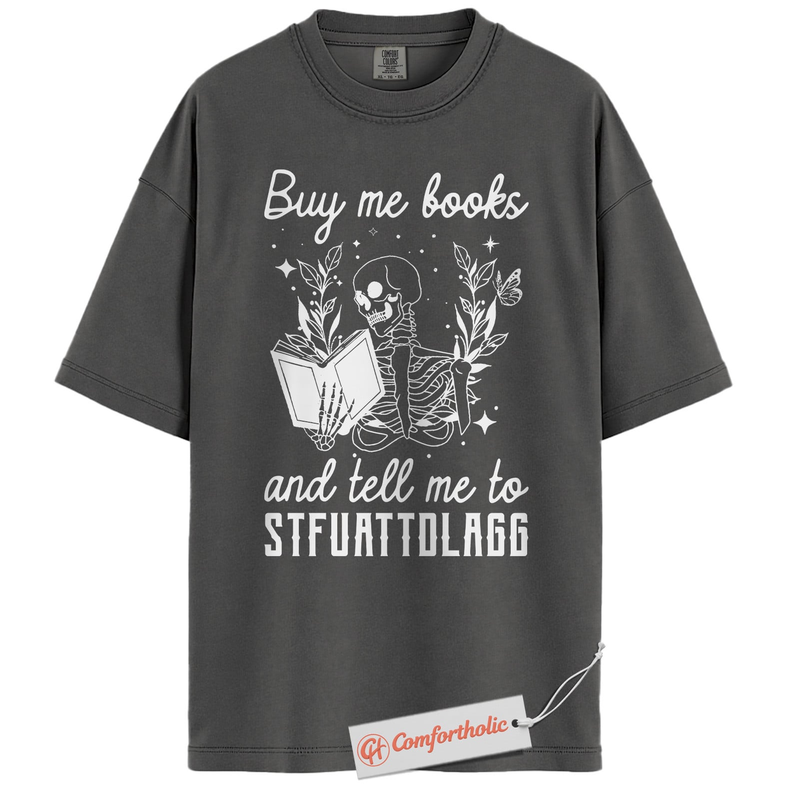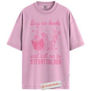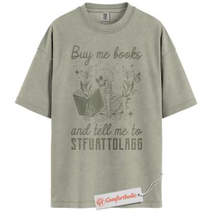 Buy Me Books And Tell Me To STFUATTDLAGG Shirt, Skeleton Reading Shirt, Book Lover Tee, Dark Academia Comfort Colors T-Shirt