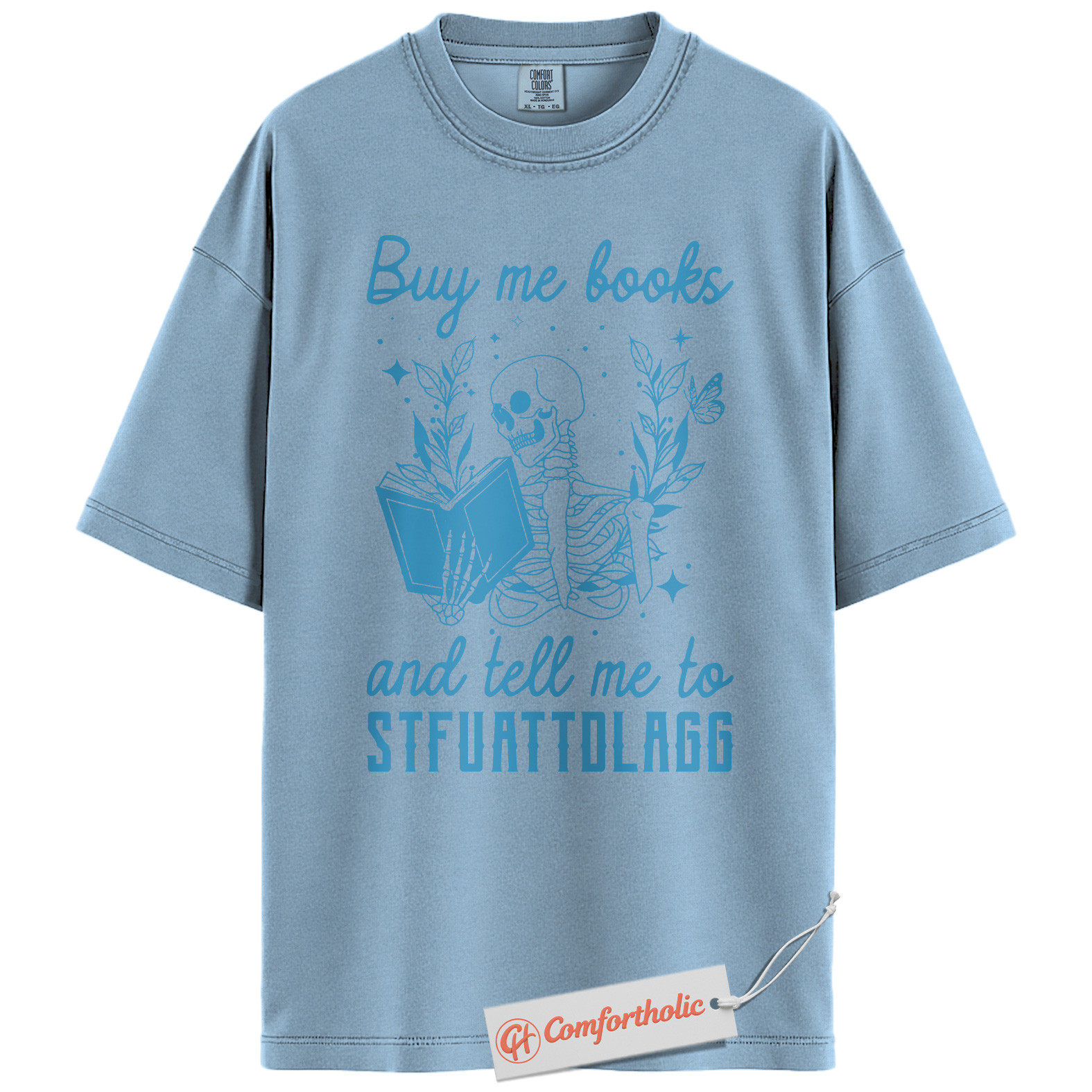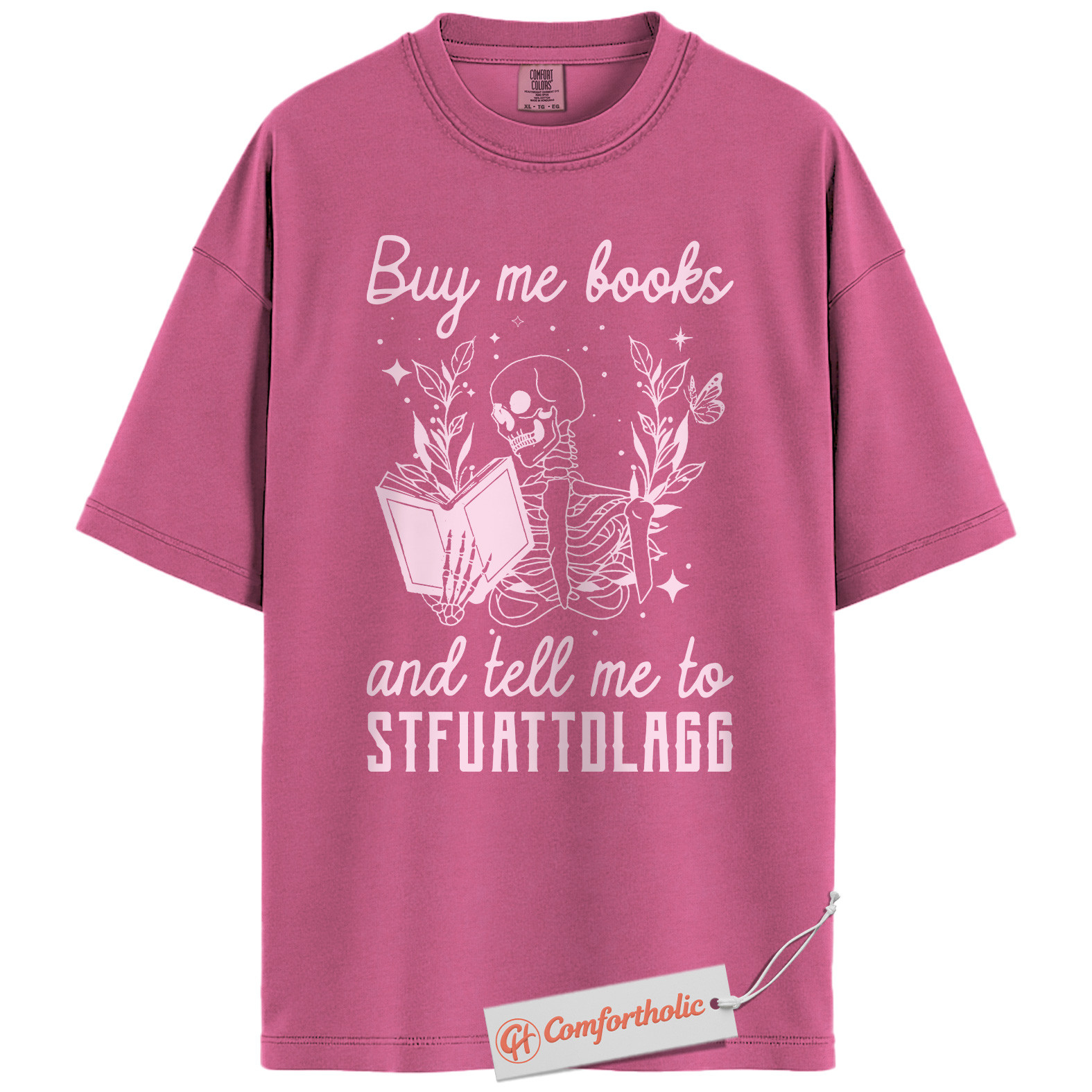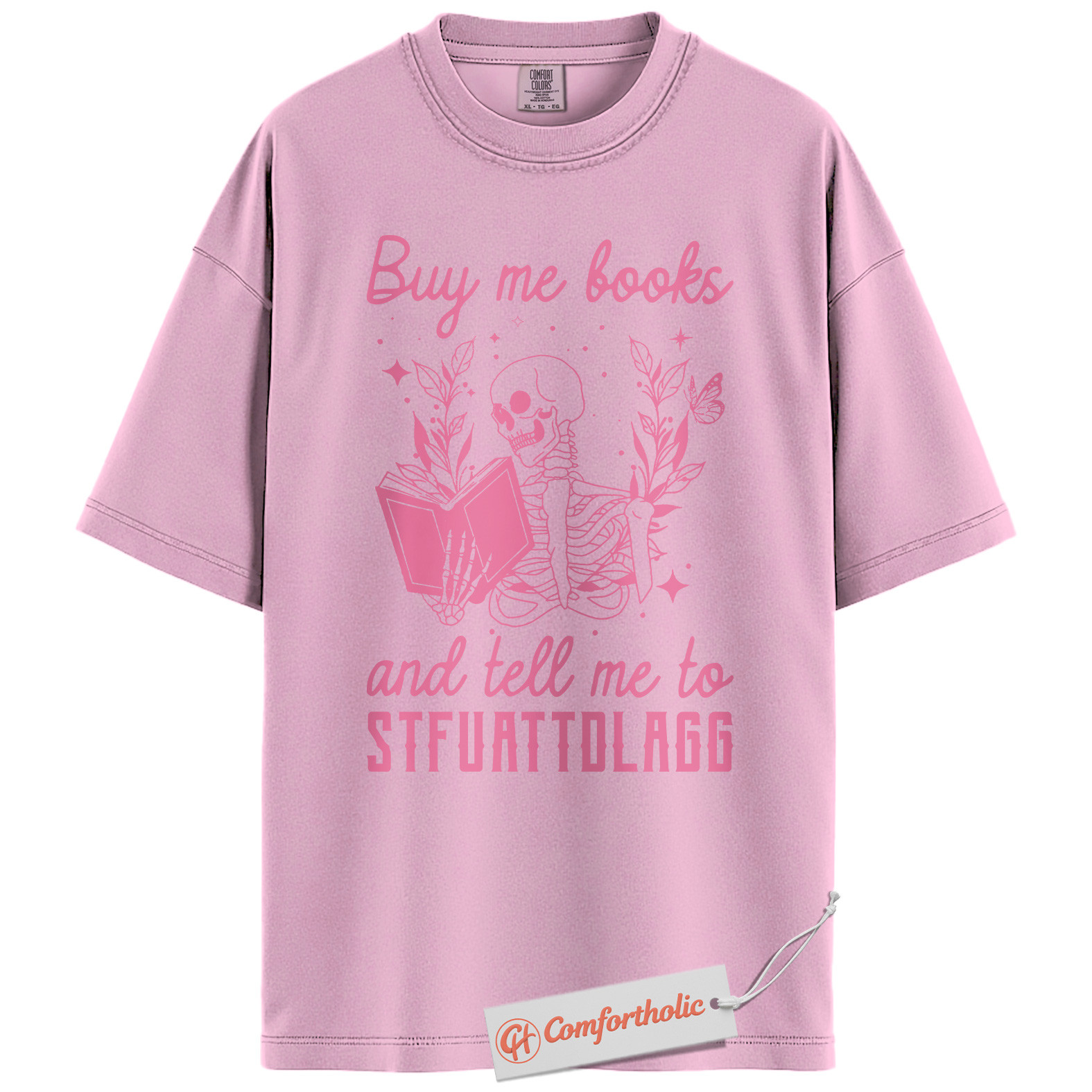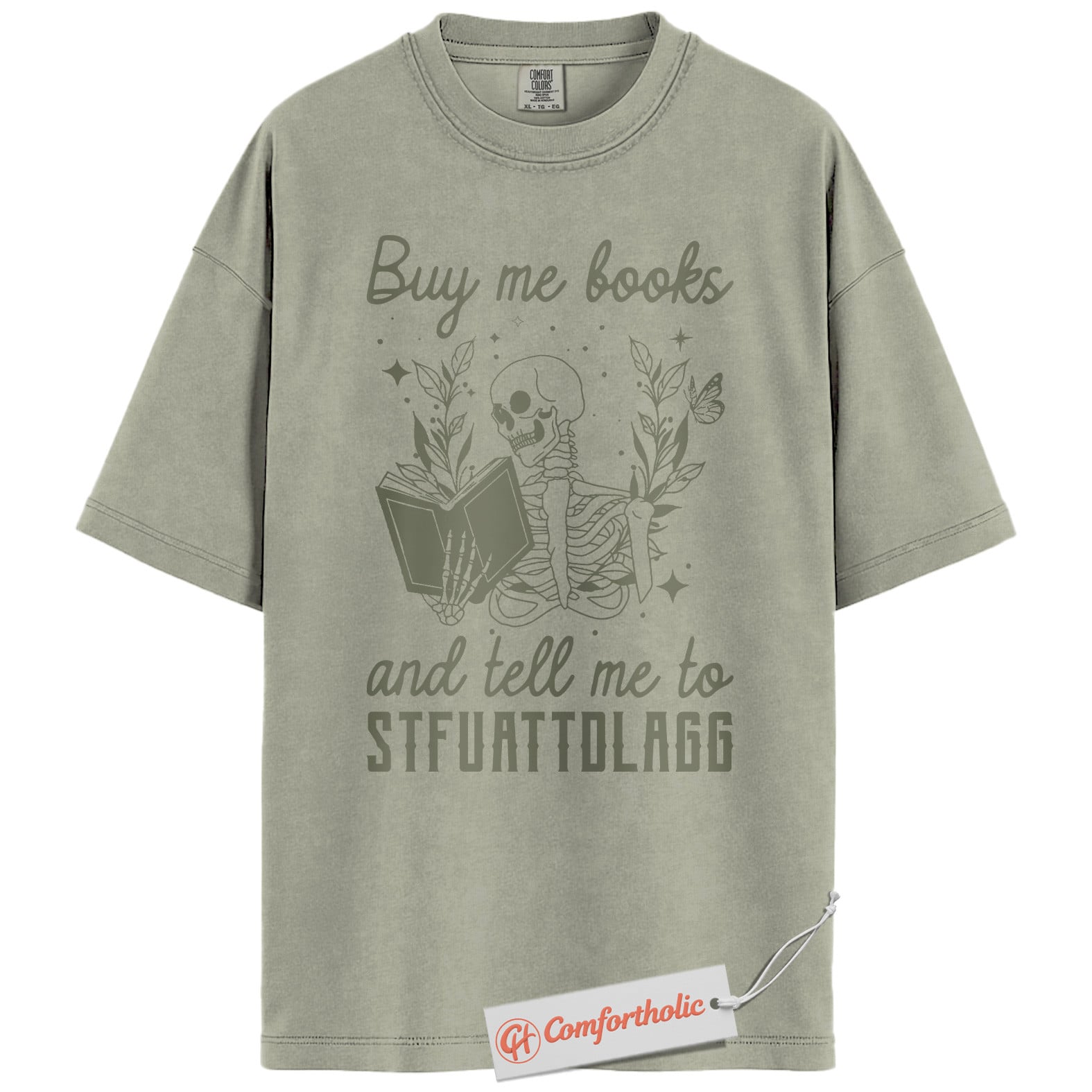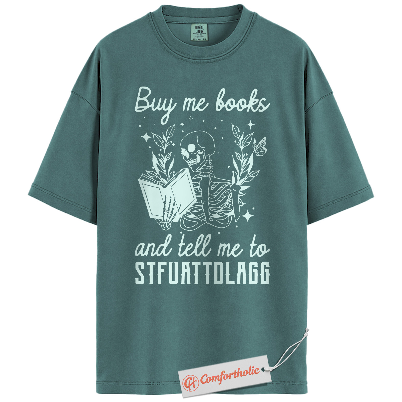 Buy Me Books And Tell Me To STFUATTDLAGG Shirt, Skeleton Reading Shirt, Book Lover Tee, Dark Academia Comfort Colors T-Shirt
