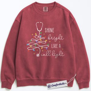 Call Light Shines Bright Sweatshirt, Funny Nurse Christmas Crewneck, Cute Medical Worker Graphic Sweatshirt, Holiday Gift for Nurses & Healthcare Professionals, Christmas Comfort Colors Sweatshirt