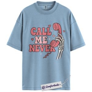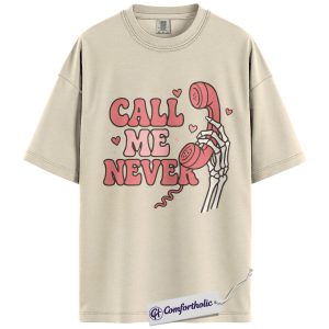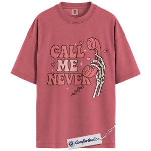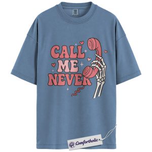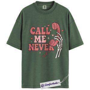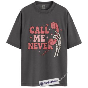 Call Me Never Shirt, Funny Anti Valentine Skeleton Phone Graphic Tee, Spooky Single T-Shirt, Valentine’s Day Gift for Singles & Introverts, Comfort Colors Shirt