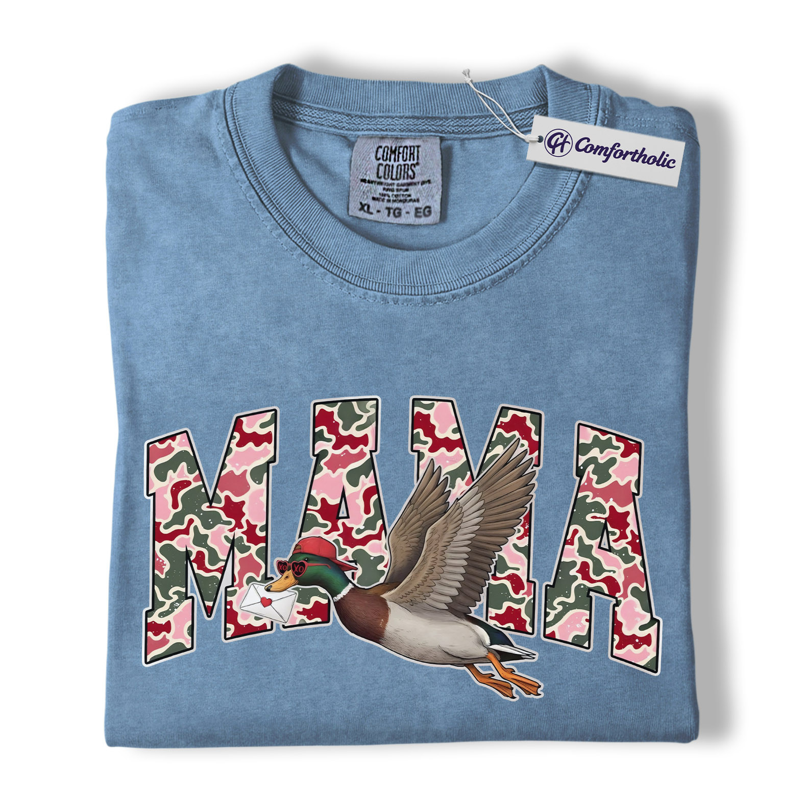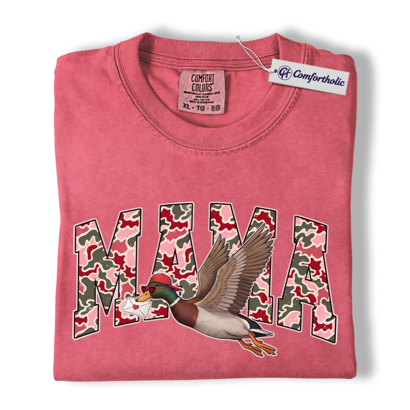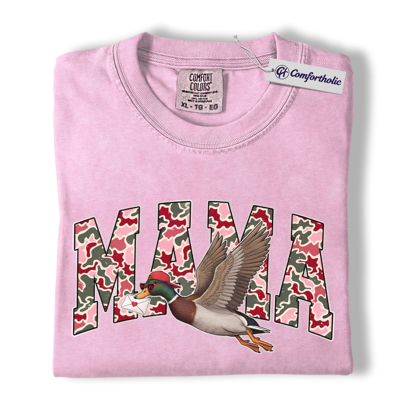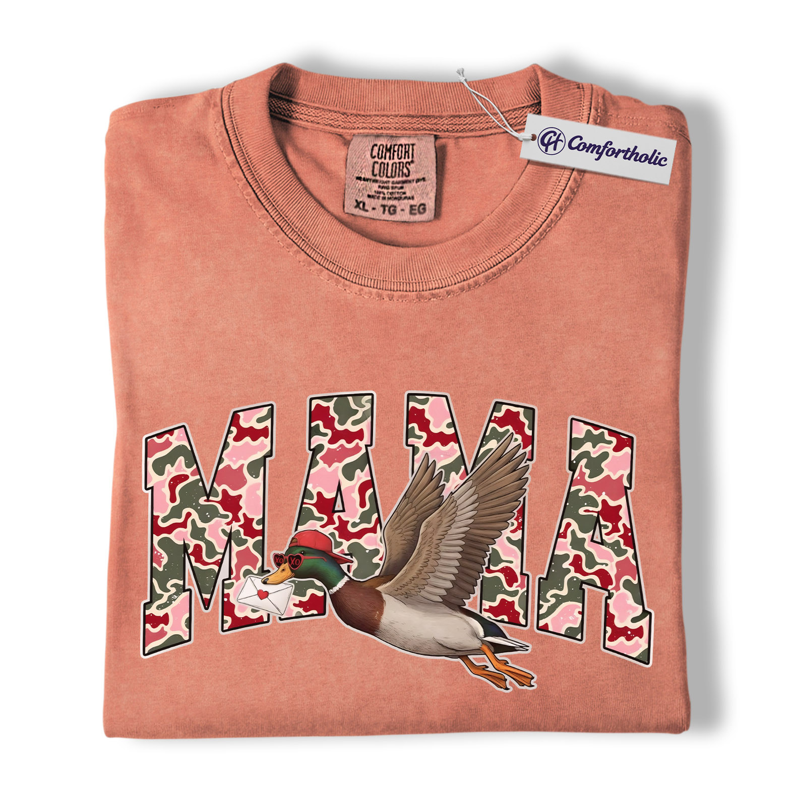 Camo Mama Duck Shirt, Funny Mallard Love Letter Graphic Tee, Mama Valentine’s Day T-Shirt, Gift for Mom Duck Lovers, Comfort Colors Shirt