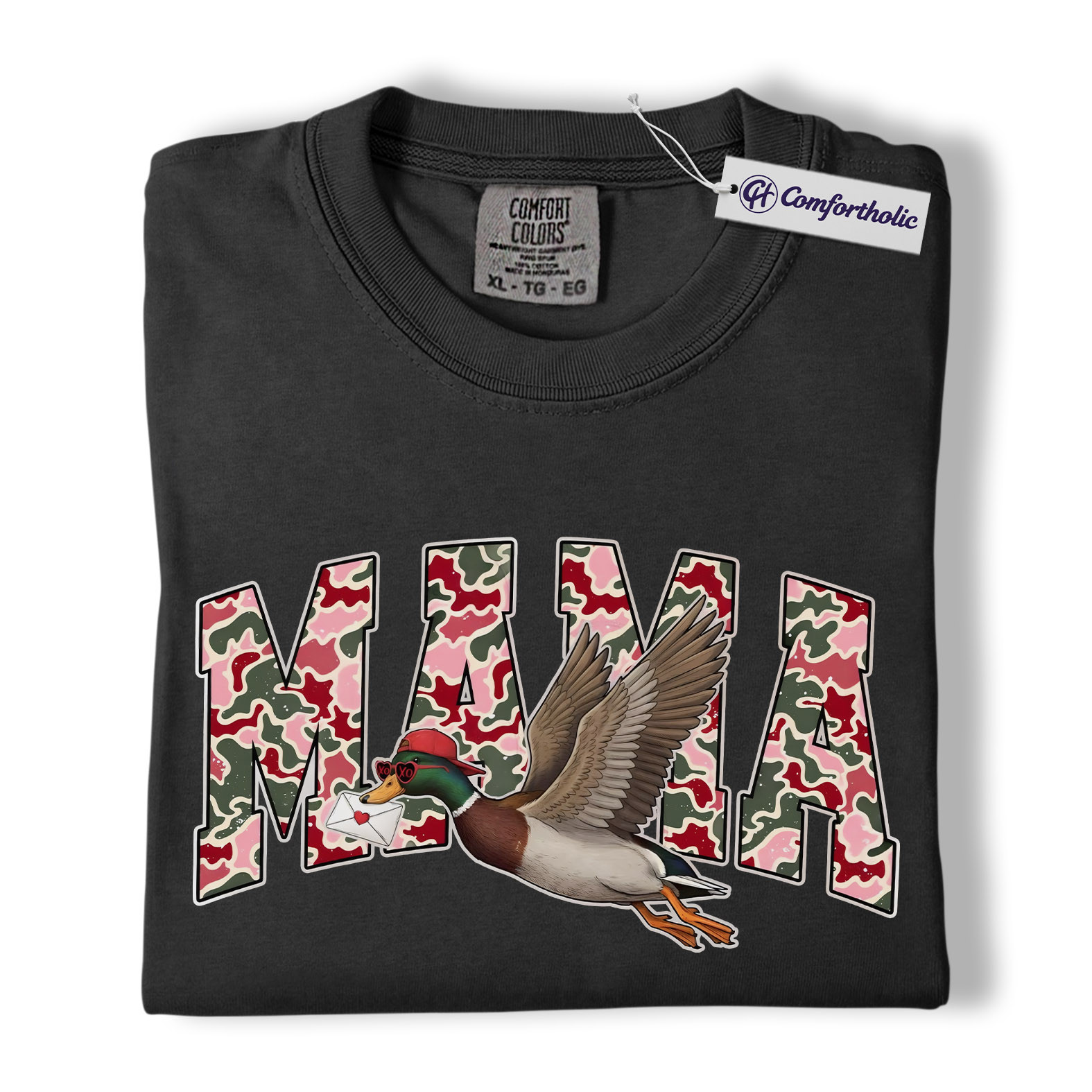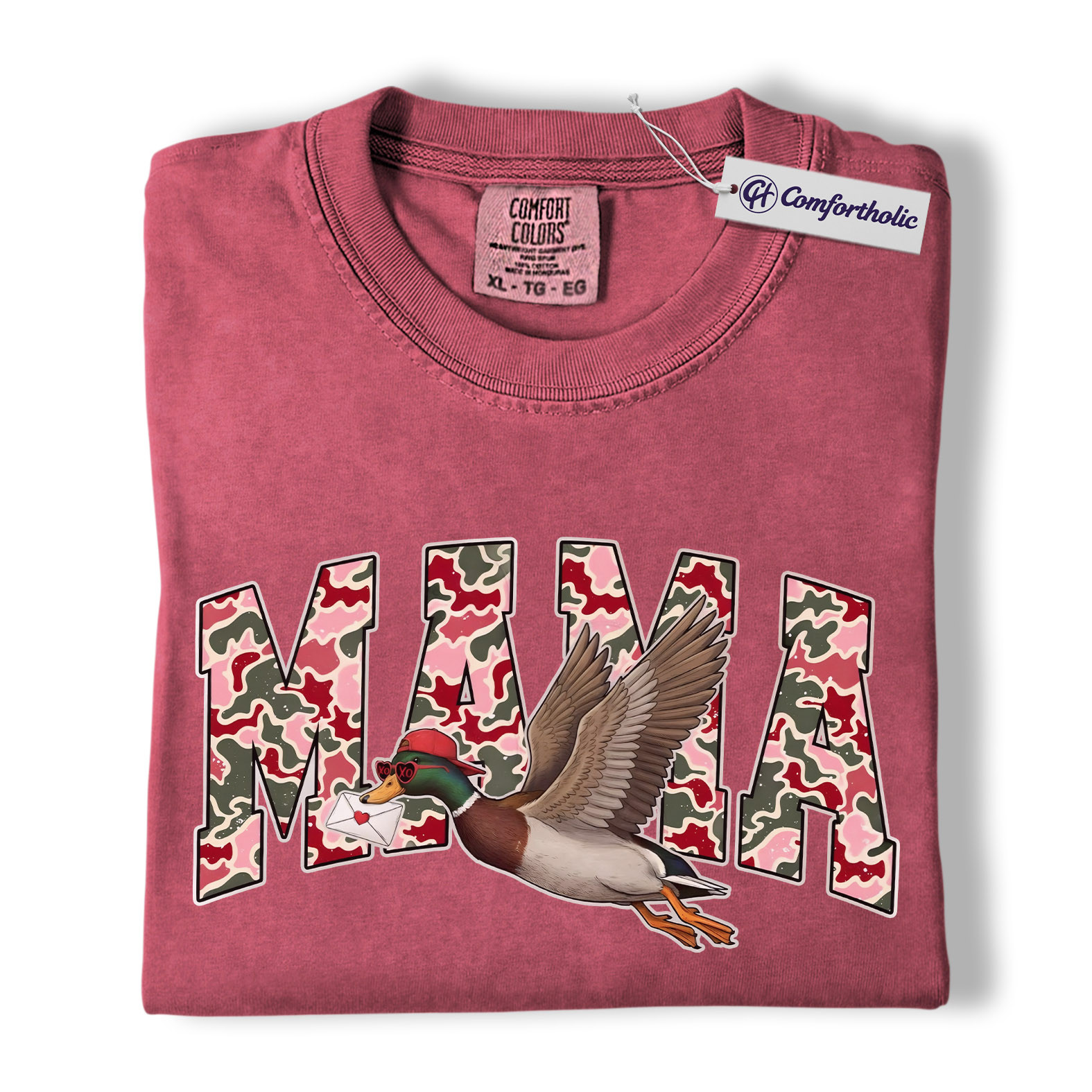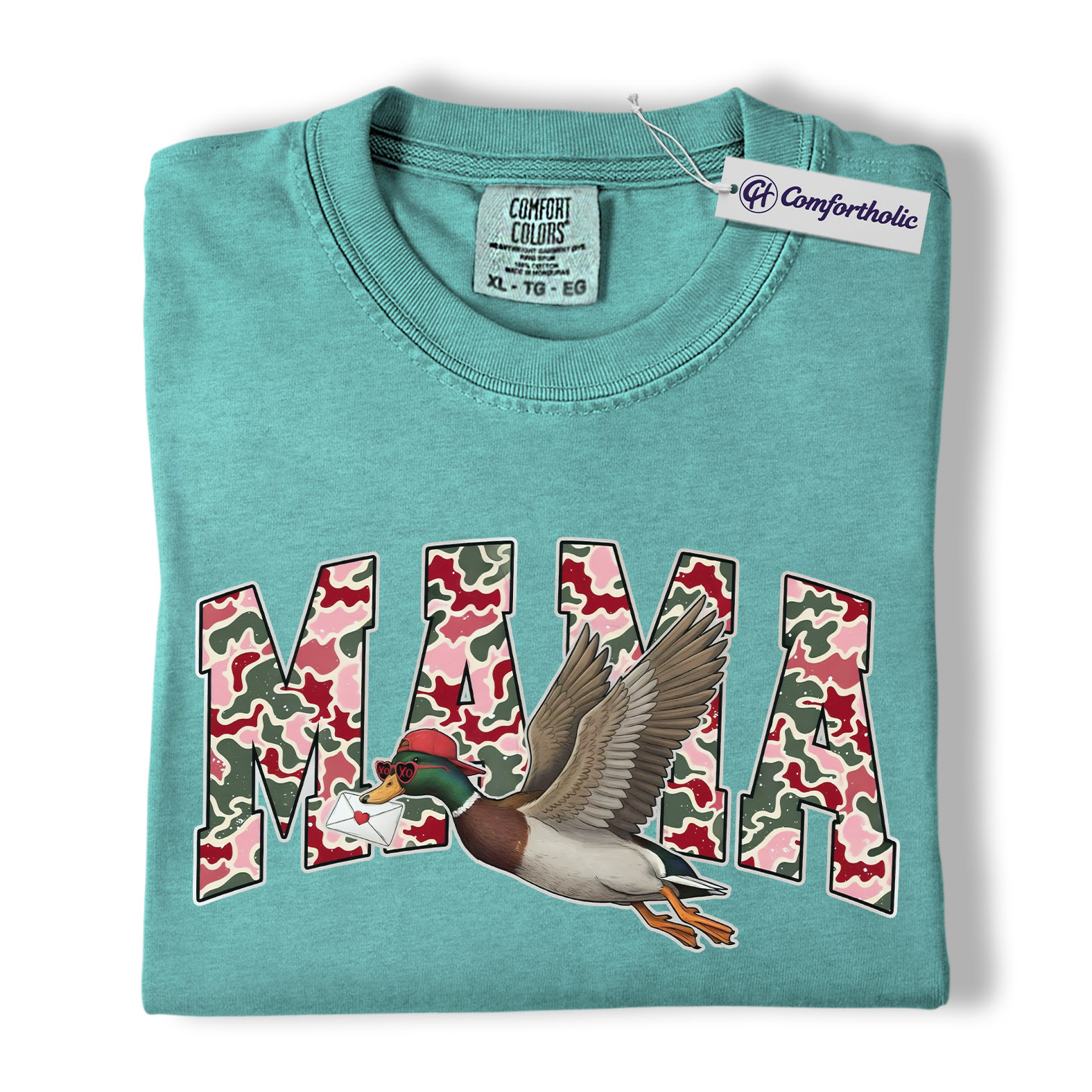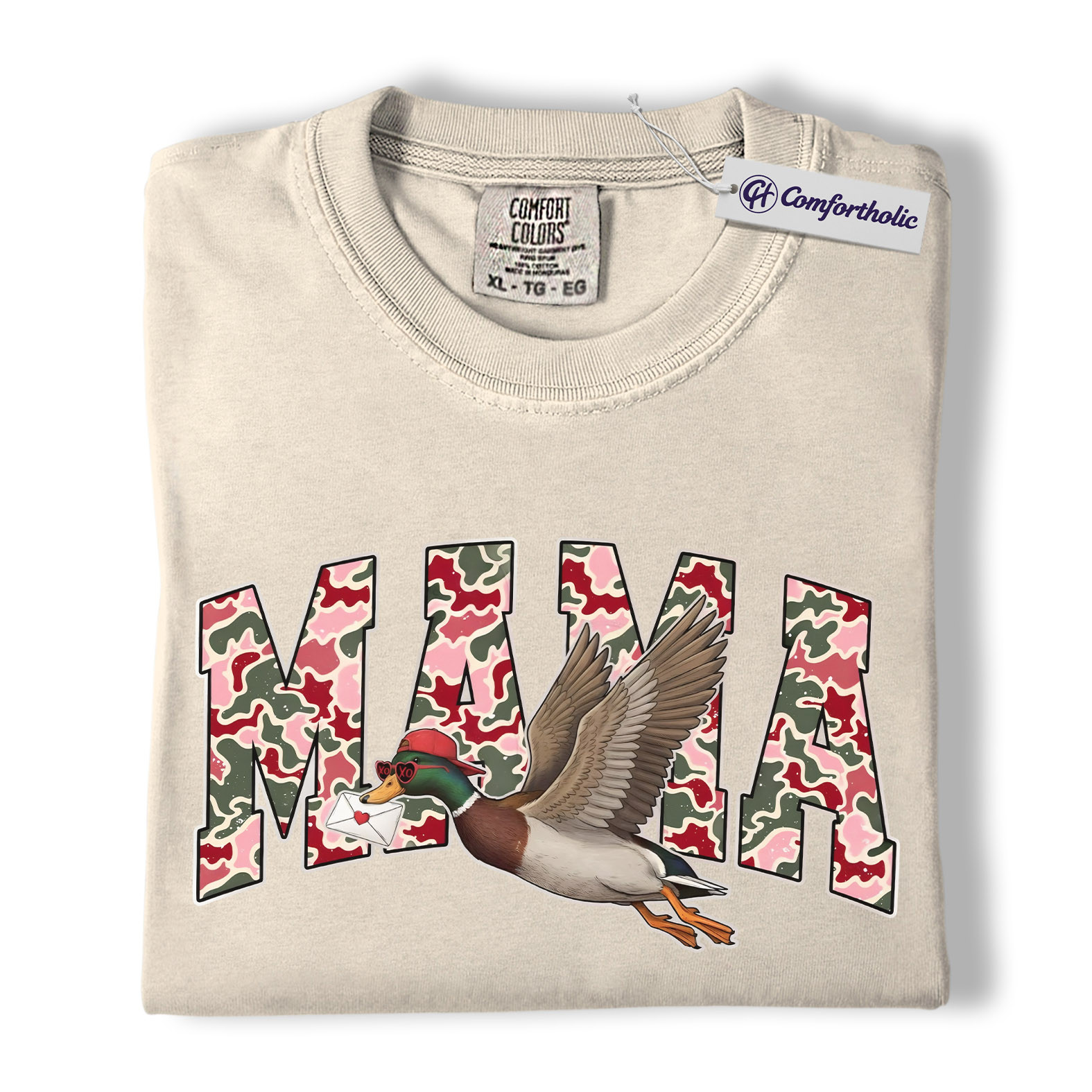 Camo Mama Duck Shirt, Funny Mallard Love Letter Graphic Tee, Mama Valentine’s Day T-Shirt, Gift for Mom Duck Lovers, Comfort Colors Shirt