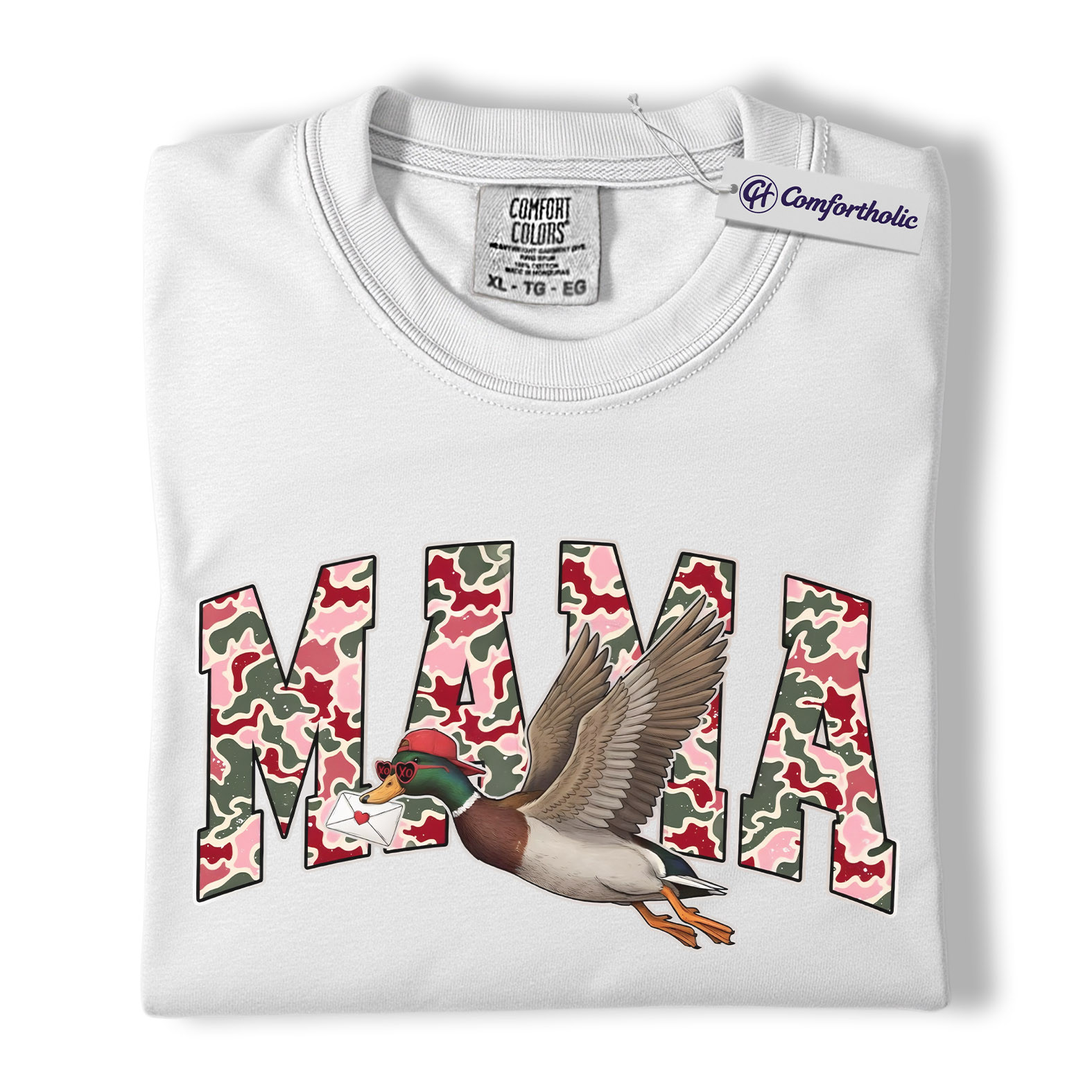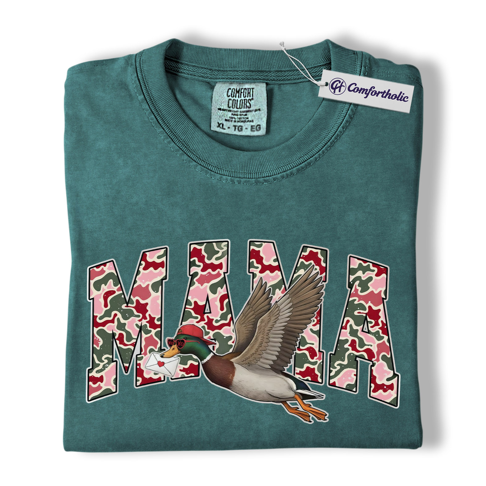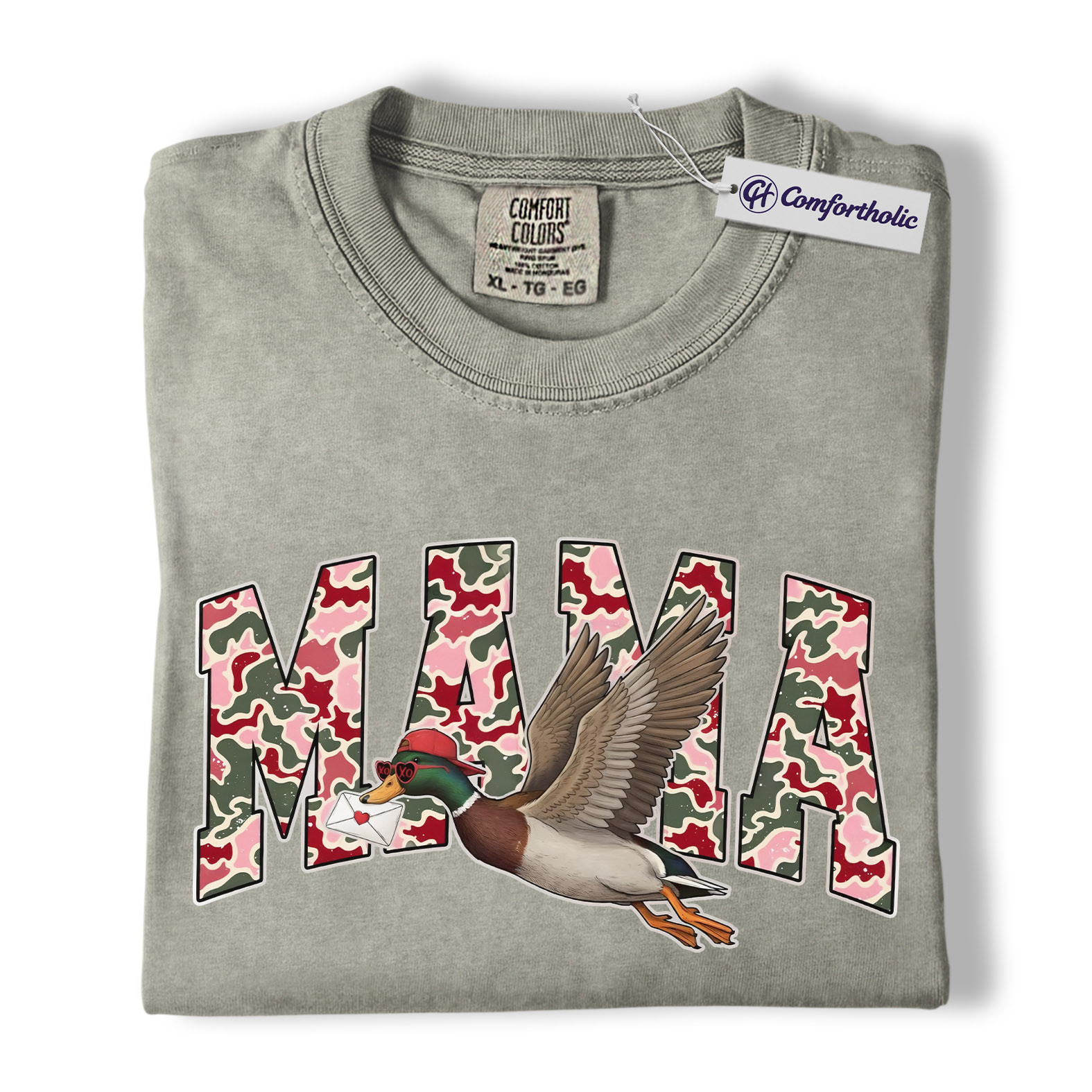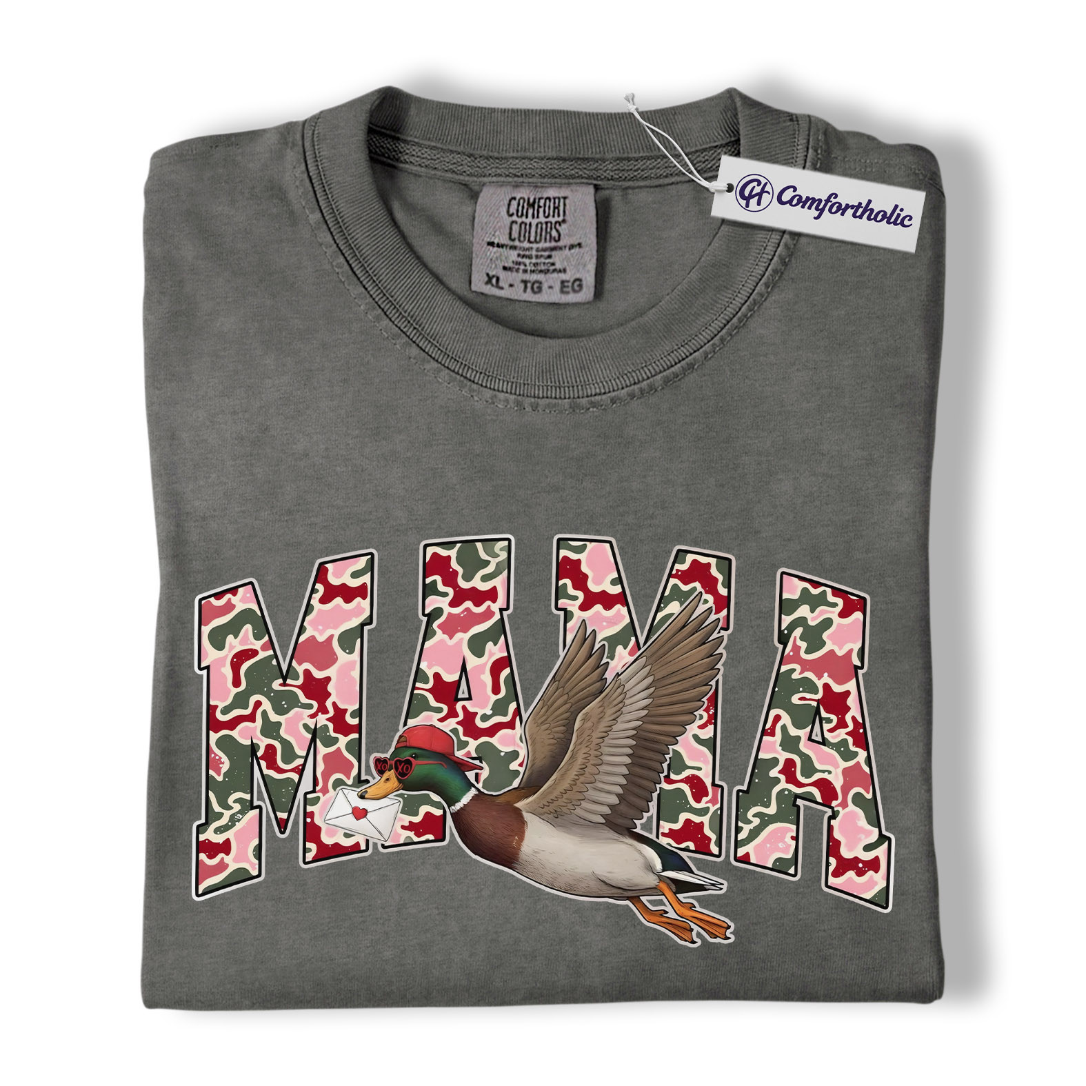 Camo Mama Duck Shirt, Funny Mallard Love Letter Graphic Tee, Mama Valentine’s Day T-Shirt, Gift for Mom Duck Lovers, Comfort Colors Shirt