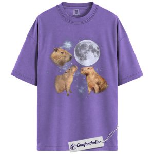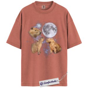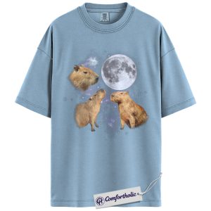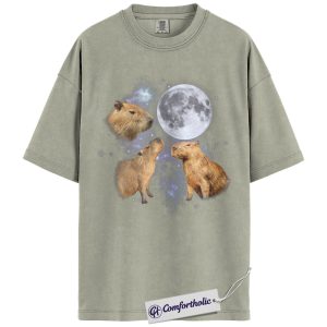 Capybara Moon Shirt, Aesthetic Animal Space Graphic Tee, Celestial Wildlife T-Shirt, Gift for Capybara Lovers, Comfort Colors Shirt