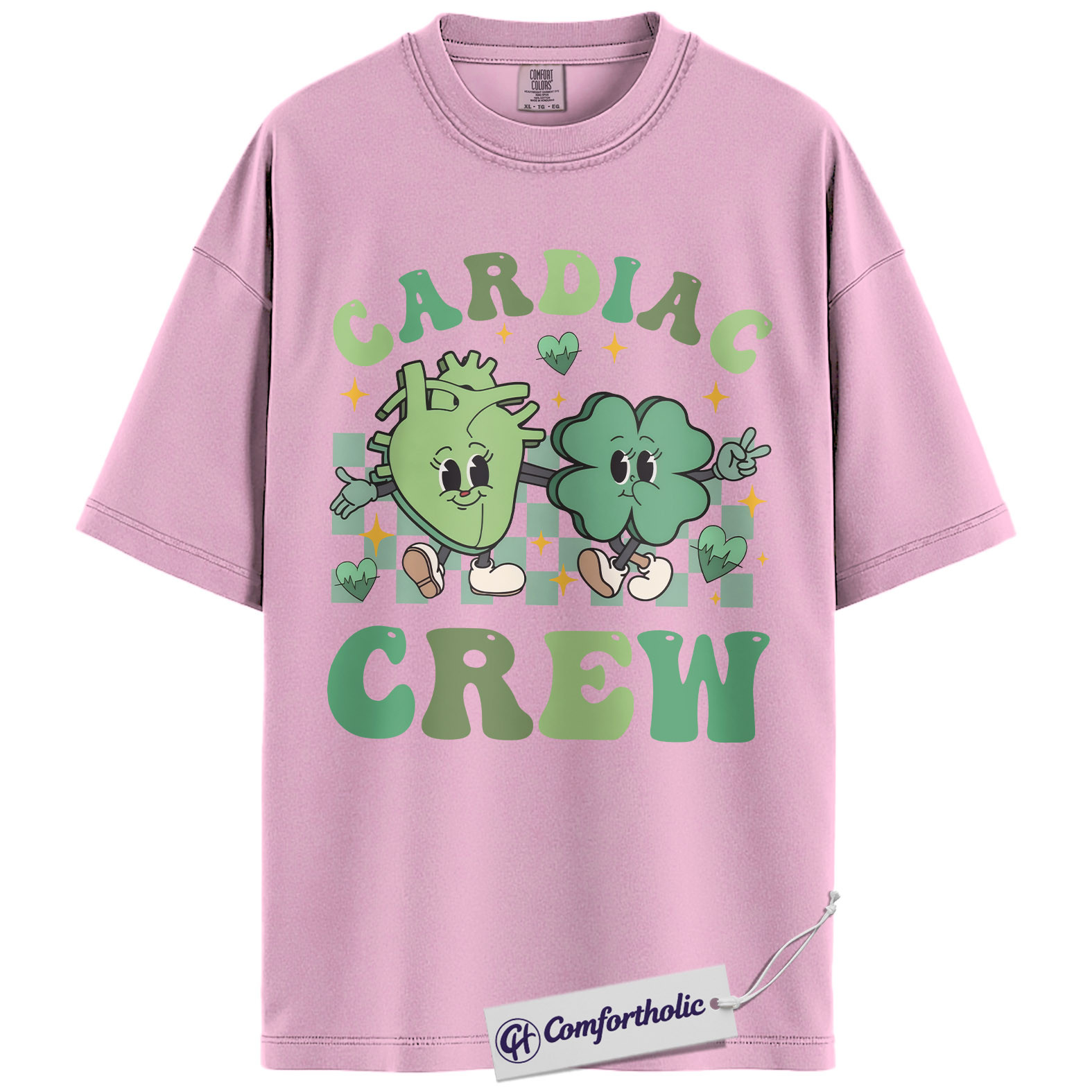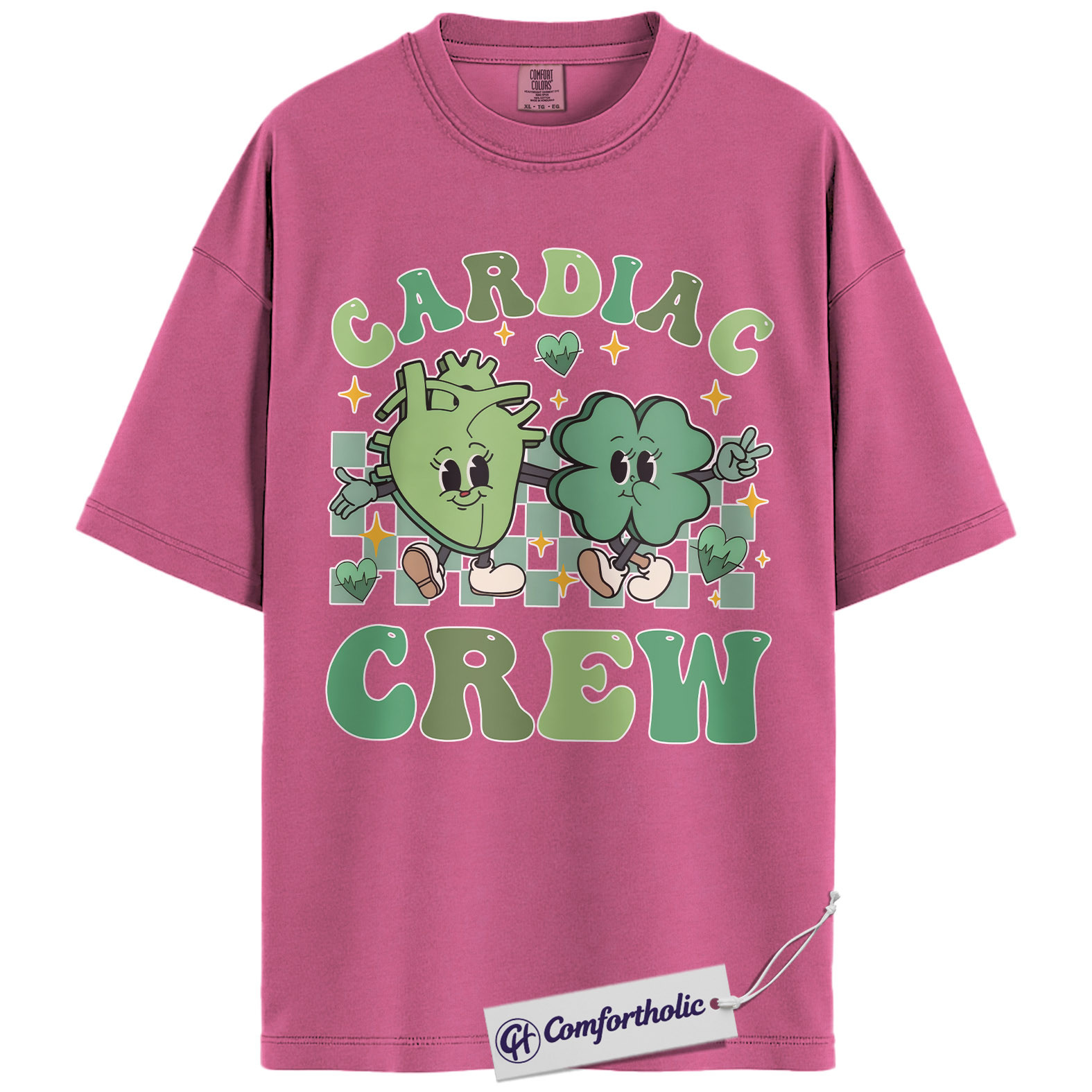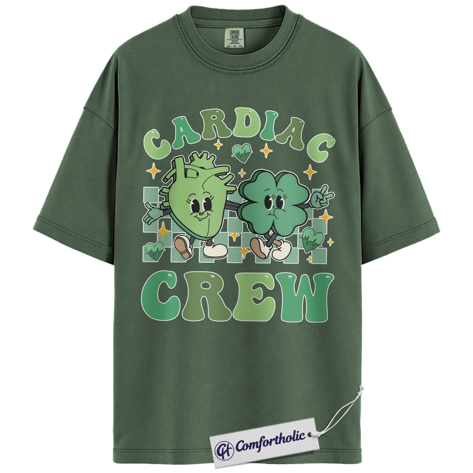 Cardiac Crew Nurse Shirt, Cute Heart & Shamrock Graphic Tee, Cardiology Nurse St Patrick’s Day T-Shirt, Gift for Nurses & Hospital Staff, Comfort Colors Shirt